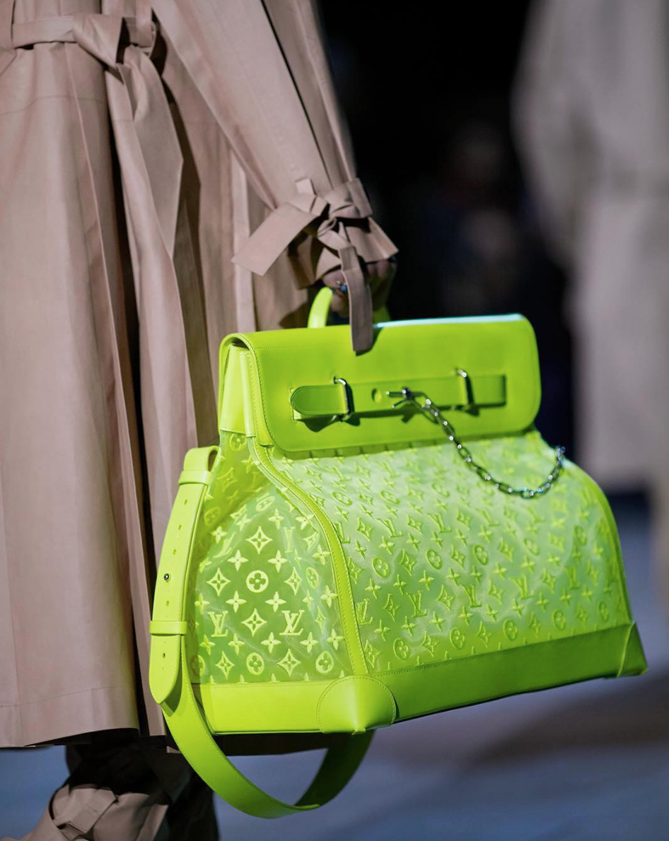 自第一季提出的创新作法 “配饰异变” 与 3% 法则也在当季被沿用,将 LV 这个富有传奇色彩的皮具奢侈品牌,以新时代语言道出价值。经典的 Monogram 包款被重新思考,加入具特色的些微细节改动,或是逐渐进化形态成为服装,成为 “可穿上身的一部分”,改变其功能使用性。同场秀上也出现一个注定成为话题讨论中心的超巨型背包,Virgil Abloh 早已深谙舆论与设计间的平衡之道。