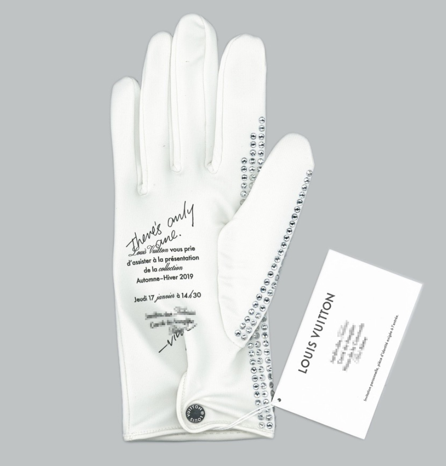 秀场上的 VIP 席融入场景中,品牌代言人吴亦凡、 Offset、Don C、Skepta、Naomi Campbell 等人皆坐在阶梯上,多数人戴着秀展的邀请函 — 一只镶满水晶的白色手套,上面印着 “There’s only one”。撷取自 Virgil Abloh 描写流行之王 Michael Jackson 的诗句,很明显的,这场秀的灵感来源,便是 Virgil Abloh 的儿时和青年偶像 Michael Jackson。