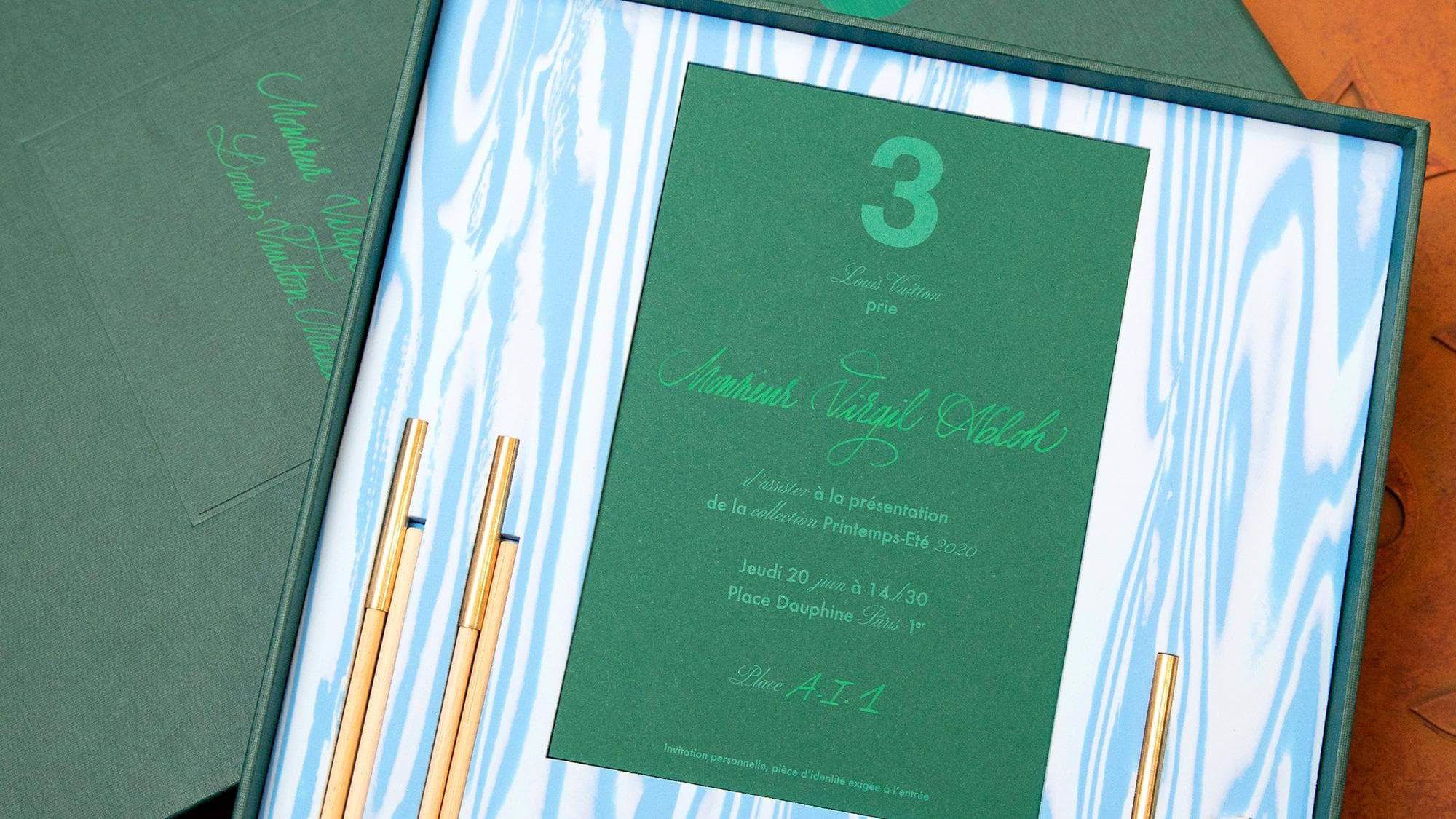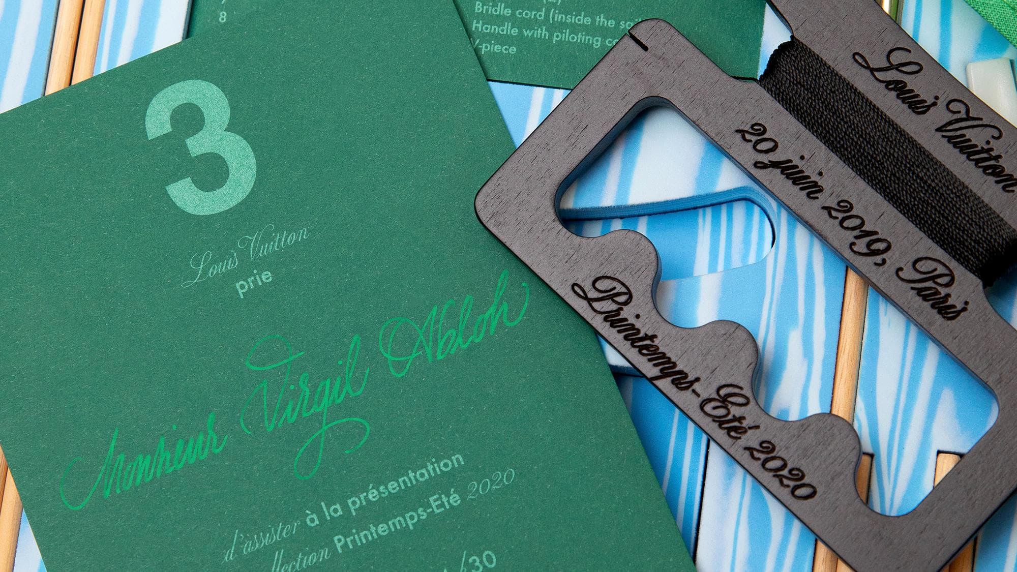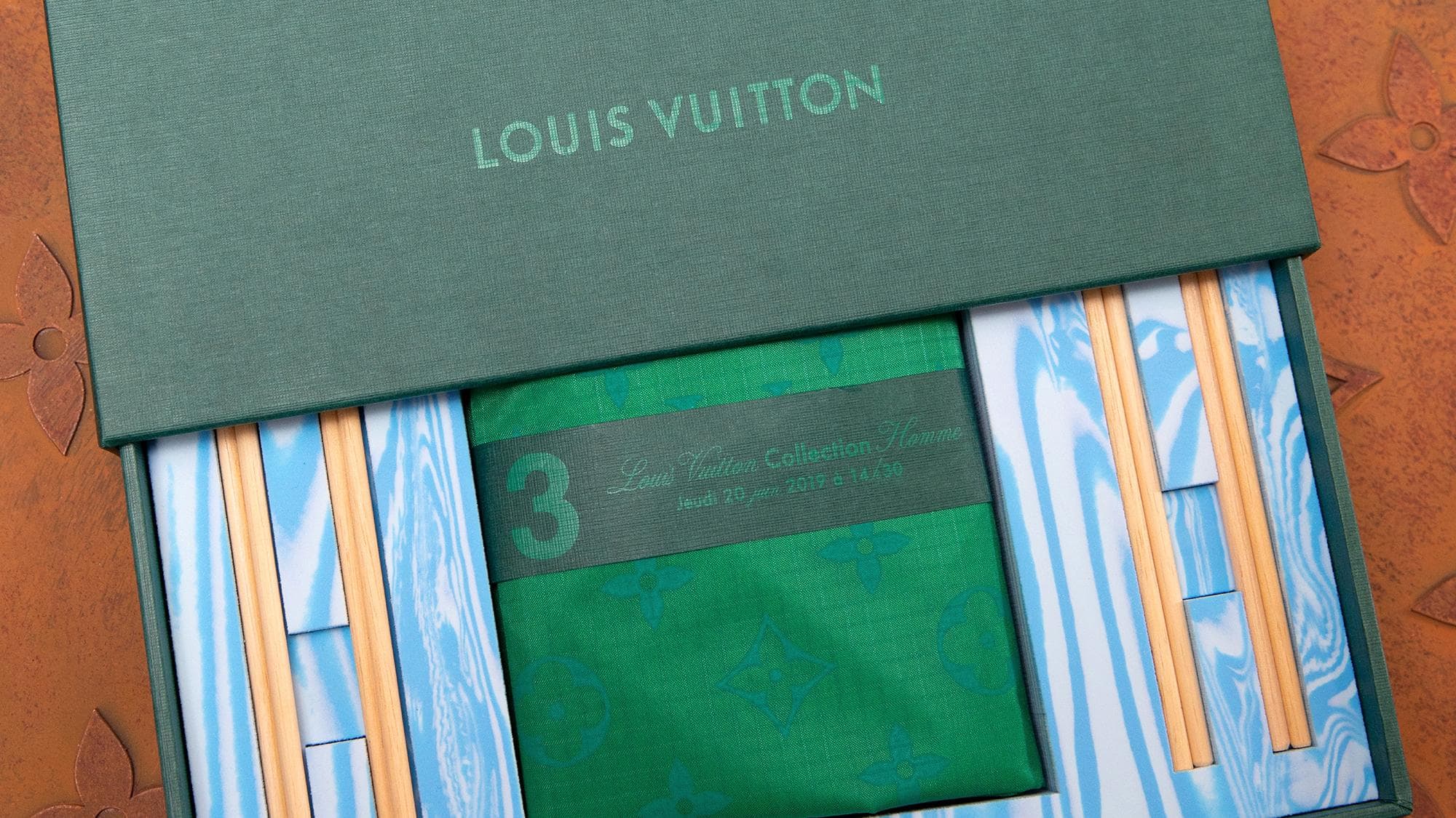 邀请方式也很特别,几天前 Louis Vuitton 就在官网上公开了这次特制的邀请函,精美的盒子里头,摆放着一个折好的绿色物品,正当所有人都在猜测到底是什么玩意儿的当下,Virgil Abloh 就已经在 Instagram 上愉快地把玩起来,原来是一张印满 LV Monogram 的风筝,这种框架结构制作而成的玩具,暗示了本季主题,以及 Louis Vuitton 品牌从旅行出发的精神象征,并希望勾勒成人们回忆起少年时代无忧无虑的自在。