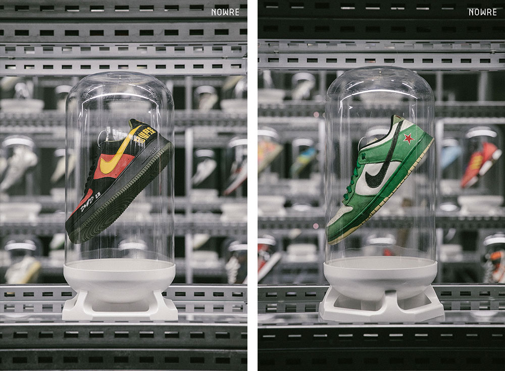 展览将主题设定在未来的 2059 年,通过一个个装置来带观众回忆本土潮流文化的一点一滴,看得也是让人颇有感触。最让人感到印象深刻的也许是第二场馆中以太空胶囊的形式将过往的经典球鞋一一呈现,这些罕见的款式都来自于 NPC 在各行各业上的好友 “援助提供”,实际上,这种关系也侧面反映着社群的集结力量…