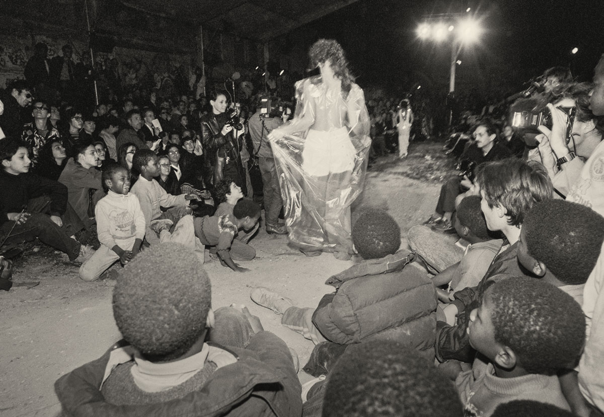 在巴黎郊外北非贫民区的一个废弃拆迁场地内,以毫不修饰的土地作为 T 台,满布涂鸦的墙壁以及破碎的瓦砾作为装饰,这里便是 Martin 展示他第一场秀的舞台,一个被描述为第三世界般的环境。
