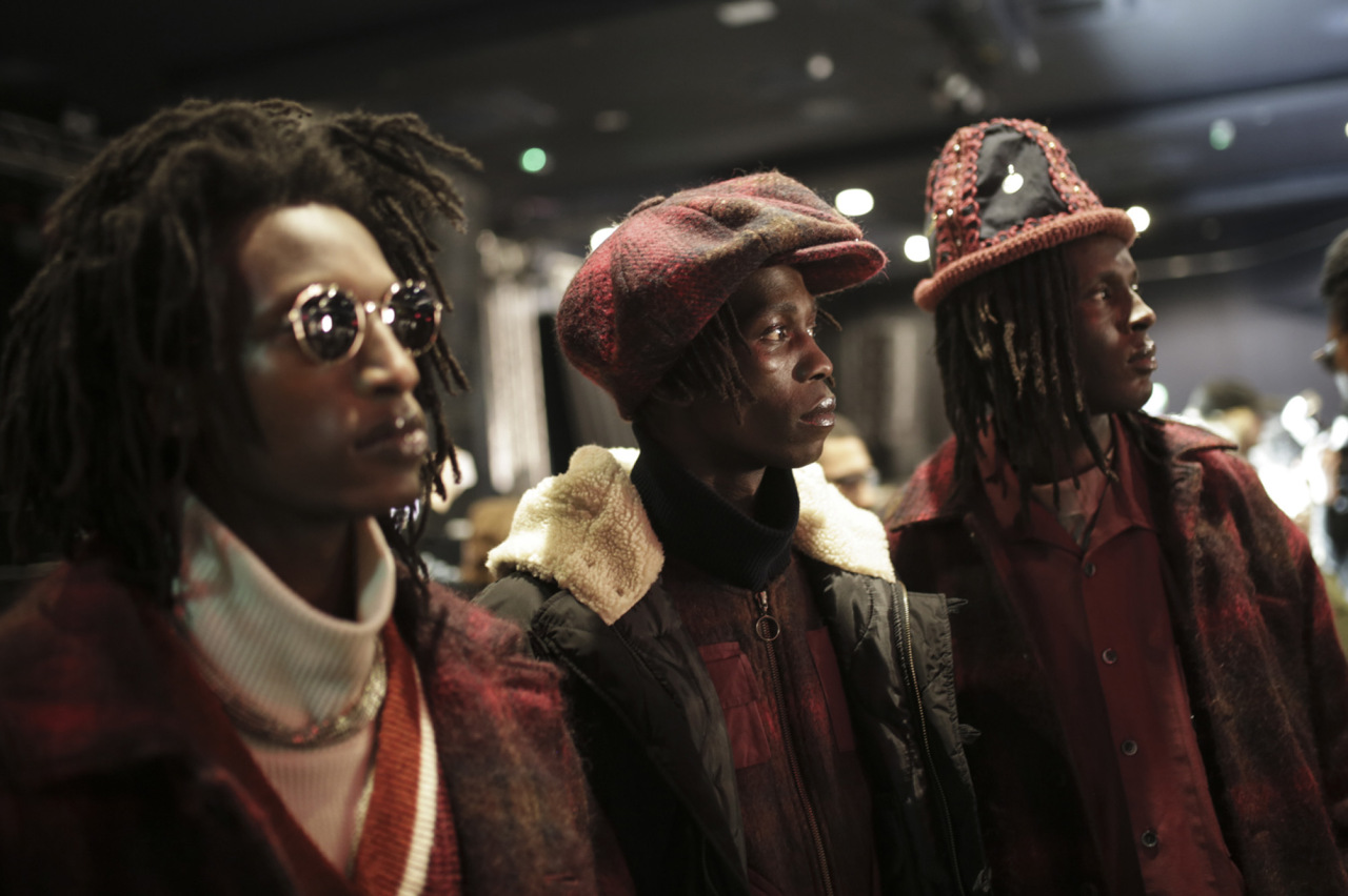 身穿马海毛格子呢大衣、翻边长裤,内搭羊毛针织衫的第一位模特登台,Nicholas Daley 的品牌基调恰如其分地尽数表达,传统手工艺显现在扎实的面料上,几乎可被感知到的岁月沉淀有着一丝厚重的年代感,而演绎它的角色却并不是大众印象的那样,留有 Dreadlocks 脏辫的黑人模特像是一位摇滚或爵士乐歌手,这一束发绺是属于牙买加地域文化中一大显性的身份认同。