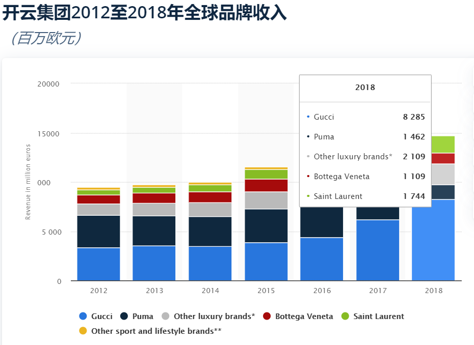 当然,这些示例仅仅是 Michele 时期 GUCCI 发力数字化领域的缩影,结合他赋予品牌的年轻化形象,铺平了 GUCCI 复兴之路的基石。2016 年 2 月 19 日,也就是 Michele 入主 GUCCI 首秀后差不多一年的时间,Kering 集团发布 2015 年财报数据,其中在第四季度 GUCCI 销售额增长 13%,为近两年以来涨幅最大的一季,而这样的涨幅于 GUCCI 而言却只是神话开启的序章。2016 全年品牌销售额增长 12.7% 达到 43.78 亿欧元,2017 年则首次进入了 50 亿欧元俱乐部,实现了连续 7 个季度领跑奢侈品行业的骄人成绩,品牌所属的 Kering 集团也一扫往日的颓势,在消费者心目中树立了全新的形象。