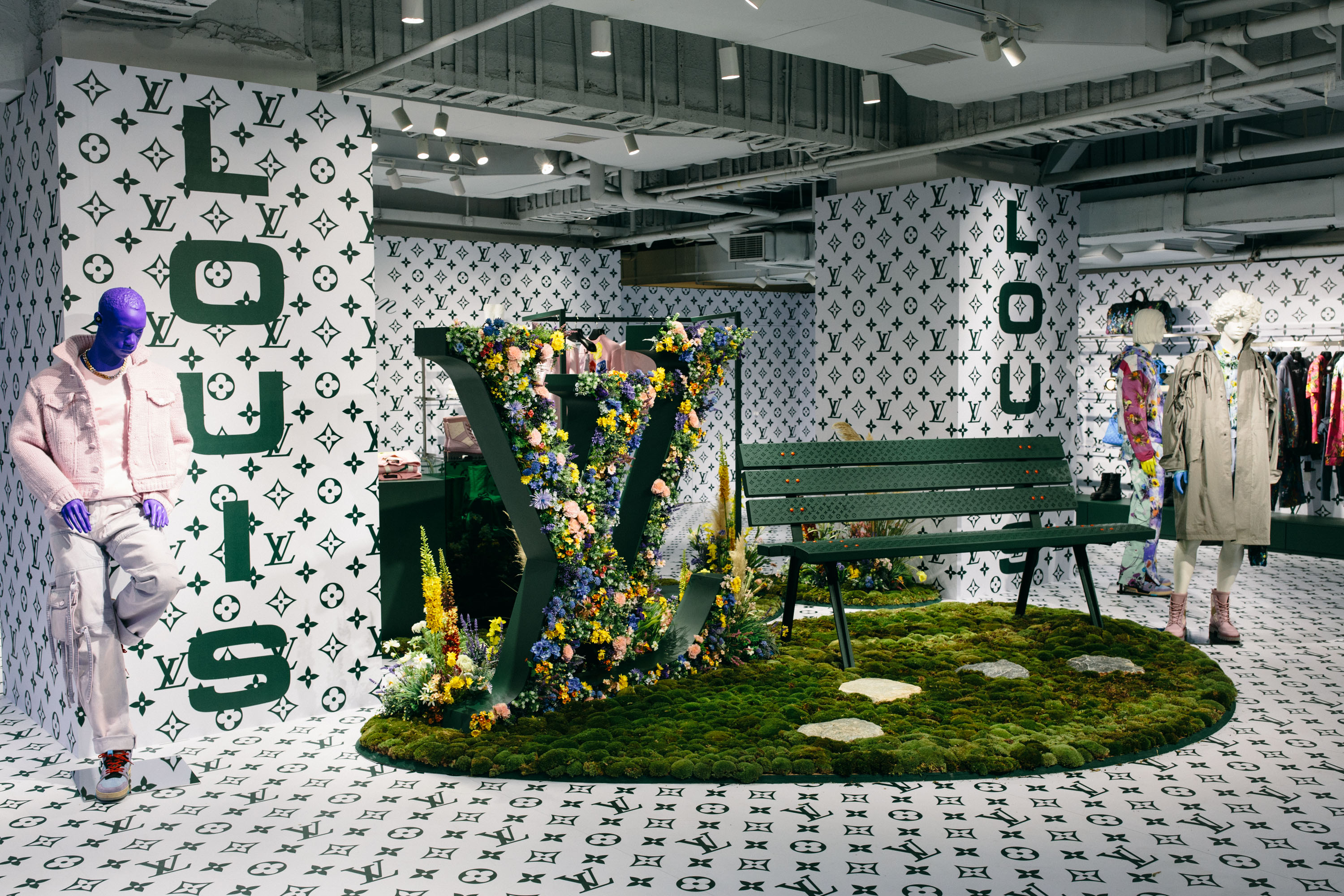 然而就在 1 月 10 日星期五,由 Virgil 一手打造的 LV 2020 春夏男士时装秀几乎以完整形态登陆上海 AUNN SPACE。在此番限时活动中,标识性的绿色 Monogram 图纹、由鲜花组成的大型 LV Logo 装置均得以呈现。