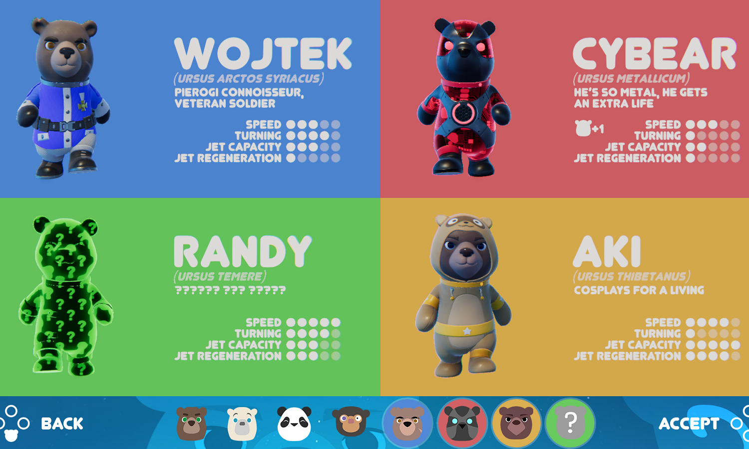简单来说,《太空熊派对》的游戏方式类似于将经典对战游戏《贪吃蛇》以全新的 3D 立体模型形式呈现。游戏设定最多可供 4 位玩家同时展开游戏,选择自己心仪的「太空熊」角色并确定盟友/对手关系后,则在同一球型星体上展开「贪吃蛇」模式的游戏对决。而每一个游戏角色则自带不同的属性加成,玩家可以根据个人偏好任意选择。