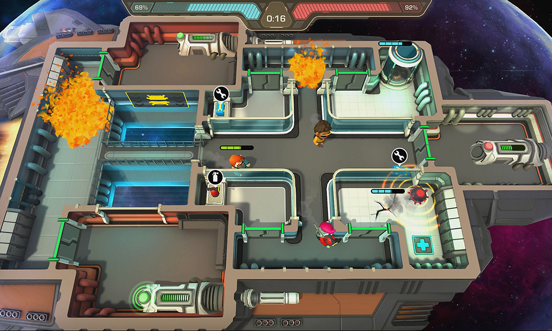在《胡闹宇航员》游戏中,你与游戏伙伴面临的挑战将不再是厨房中的「柴米油盐」,而是作为一名宇宙飞船船长或船员,通过维修系统、扑灭火灾或武装鱼雷等操作过关斩将,并有效地避免飞船遭受太阳耀斑的摧毁或来自外界的攻击。相比于《分手厨房》系列的游戏设定,《胡闹宇航员》或许并没有那么多「烟火气」,但双人或多人合作的默契在这款游戏中同样显得至关重要。