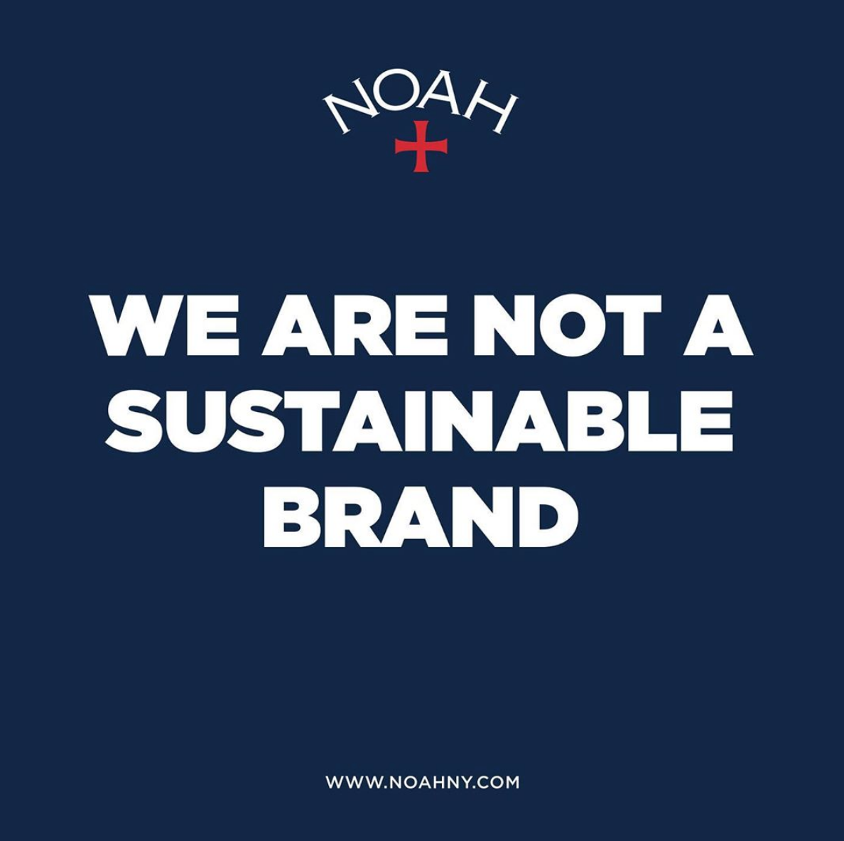 几乎在同一时期,NOAH 在 Instagram 平台贴出了一则声明:「WE ARE NOT A SUSTAINABLE BRAND」,主动撕下可持续时尚标签,引发众多关注。图片一旁 NOAH 官方给出了相应的文字解释:
