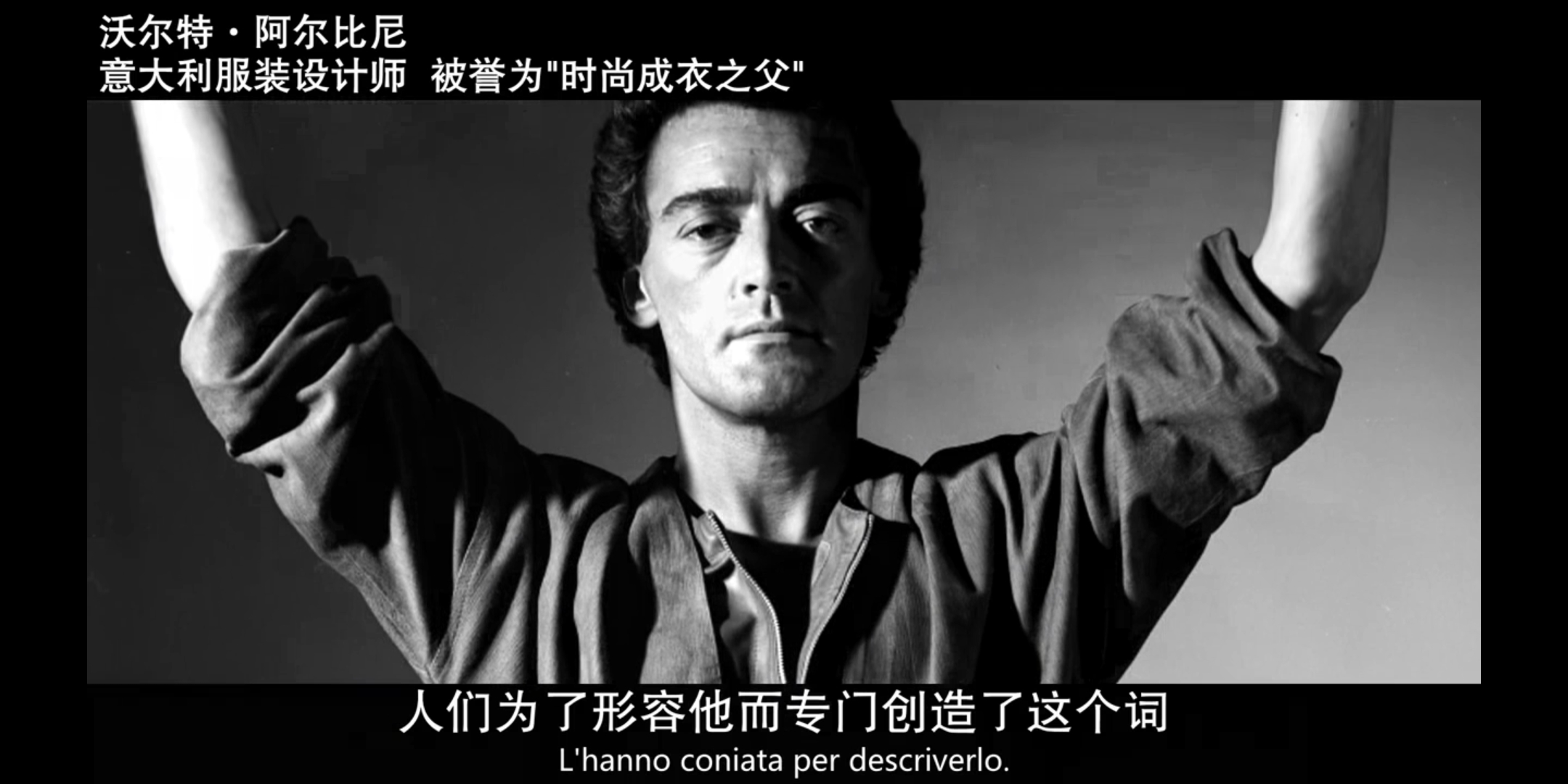 1970 年,法国时尚记者 Hélènede Turckheim 在一篇文章中提到,意大利时尚界实际上是聘用了六位巴黎设计师,其中的讽刺意味尤为明显。但同时他也提到了意大利设计师 Walter Albini 的名字,「只有他才被认为是在国际层面上被人铭记的意大利时尚」,两年后,《WWD》报道了 Walter Albini 的作品,并将他比作意大利的 Yves Saint Laurent。1972 年,Albini 在米兰城著名的绅士俱乐部 Circolo del Giardino(花园协会)展示了他为五个品牌打造,数百位模特参与走秀的时装系列,此次秀场直接影响了日后时装周从佛罗伦萨转移至米兰的选择。在剧中,Walter Albini 这位对意大利成衣设计影响颇深的设计师是第一位被着重提及的人物,导演以角色陈述的方式向这位意大利时尚的先驱者致敬。