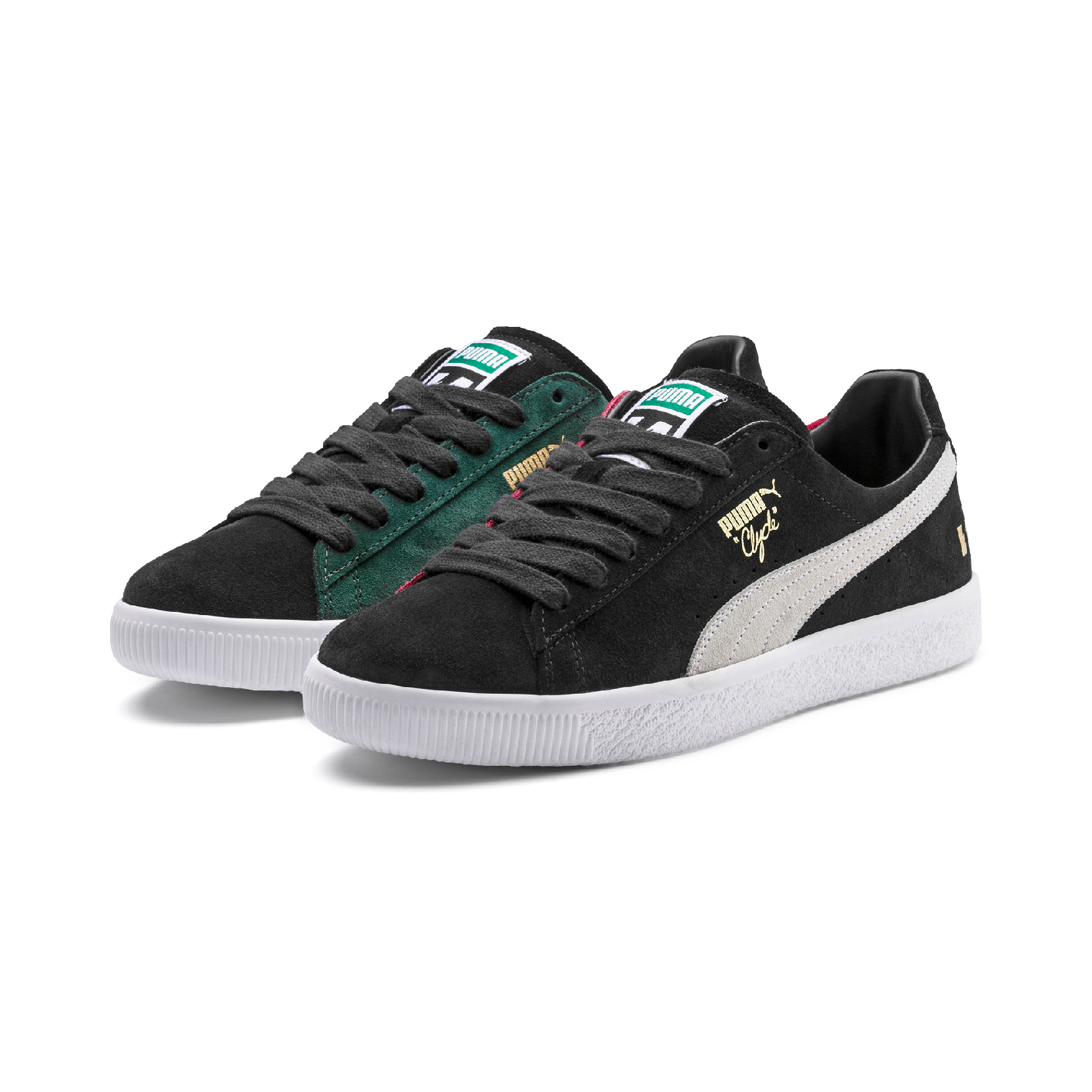 另外,作为当下「着用度」相当高的鞋款,Clyde The Hundreds 在鞋身内侧选用了抢眼色彩制成,且左右脚各不相同,外侧则以黑色为基底,搭配烫金的 The Hundreds 标识示人。
