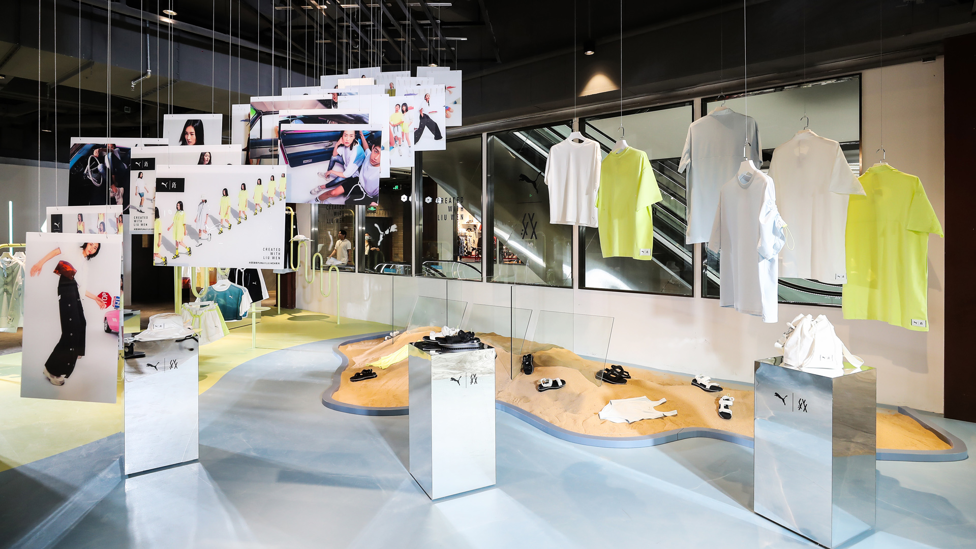 这种自由随性的概念也能体现在 PUMA x LIUWEN 昨天在 TX 淮海的活动现场,沙滩、海风,充满新意的艺术实验,都给人扑鼻而来夏天的味道。