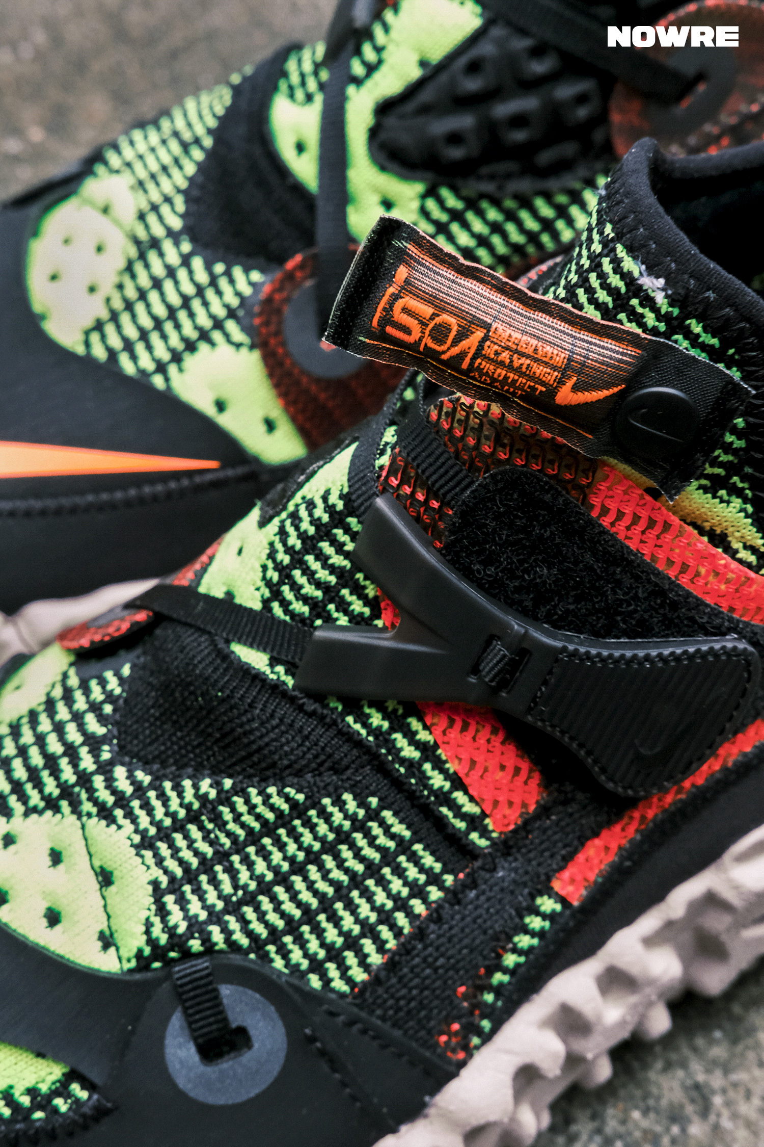 我认为主要从两个方面,第一是设计风格上,ISPA 系列的设计风格一直是非运动表现化的,它更多的与时装和功能导向为主。尤其是这一次的系列,解构,拼贴,夸张的外底和并不常规的系带系统,甚至是表面的点阵图案,在我看来这些都是强烈的技术美学表现。这应该是 Nike 在生活领域的高端鞋款上想要塑造的一个相对前瞻性的设计风格。
