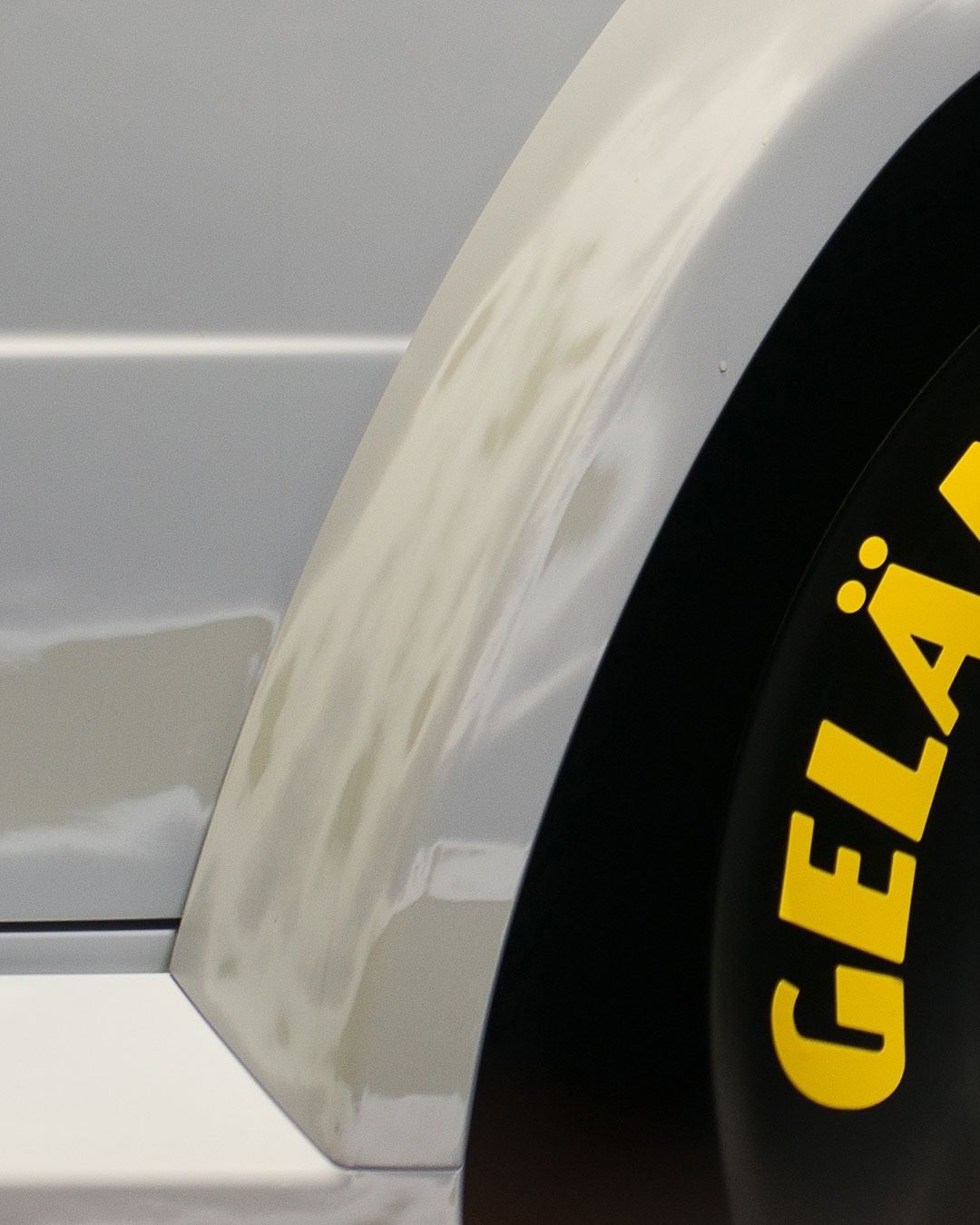 在 Mercedes-Benz 与 Virgil Abloh 的合作官宣后不久,Mercedes-Benz 设计总监 Gorden Wagener 则在个人 instagram 率先带来细节先览,除了轮胎上德文「越野车」意思的「GELÄNDEWAGEN」字样外,车身采用了灰白色为主调,内饰也保持了同样色系。