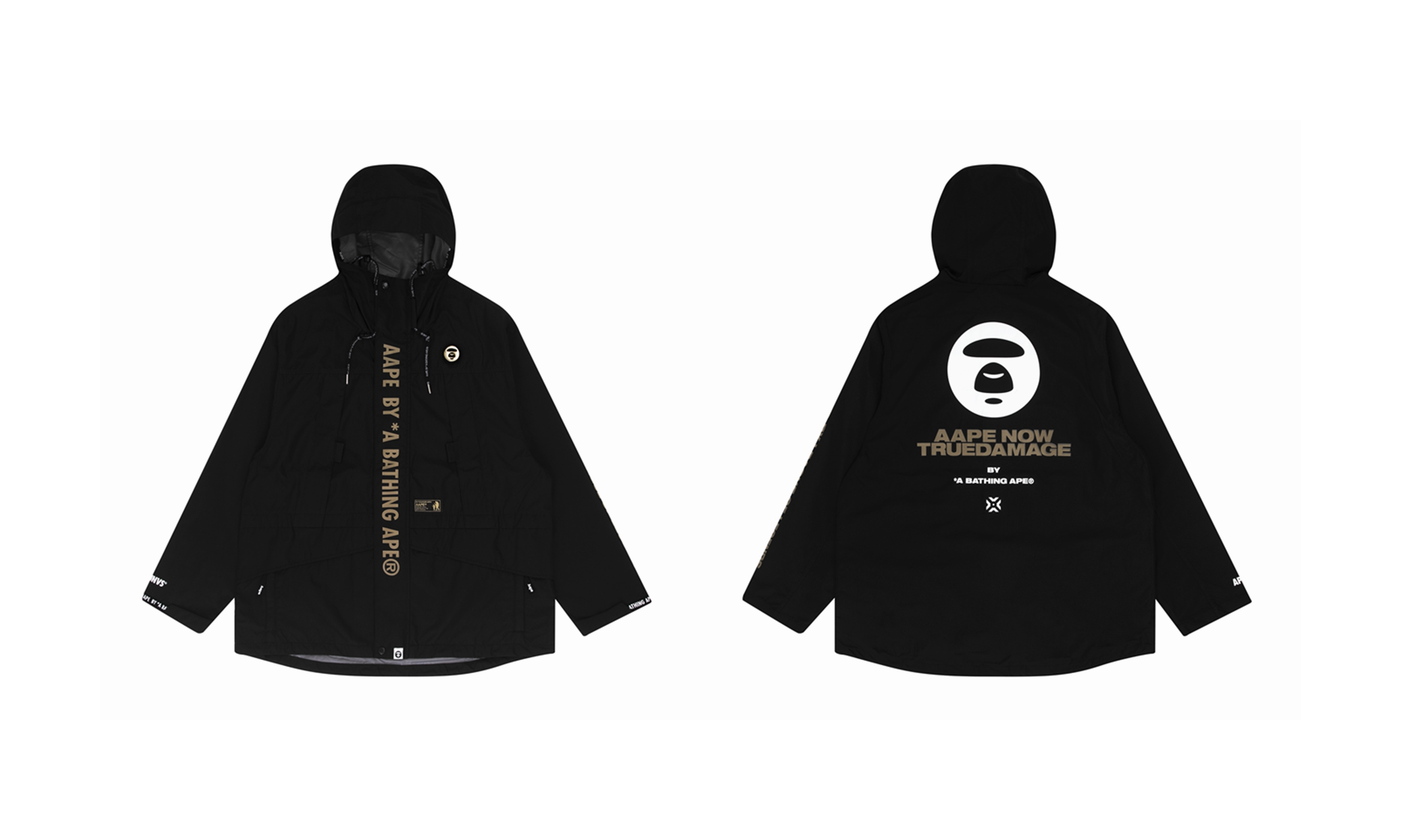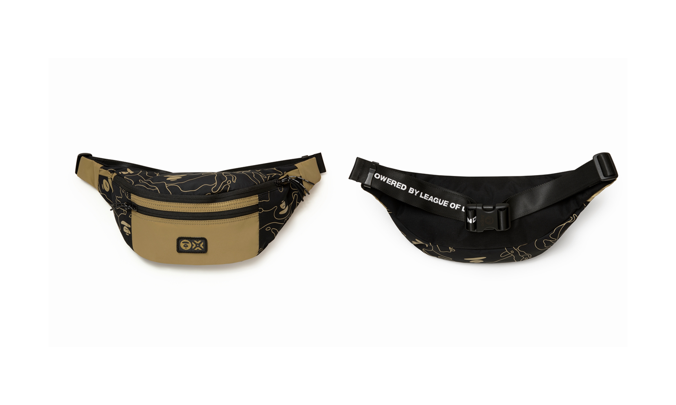 在这款亚索新皮肤亮相之余,AAPE 同样将其中的「亚索同款」装扮以实体服饰形式呈现在众人眼前。延续游戏中以黑、金双色作为主调展现的亚索形象,AAPE 带来包括服装、帽款、腰包、AAPE Dimension 运动鞋等众多合作设计。其中值得一提的是,AAPE 更以反光物料打造如冲锋衣外套、裤款与包袋等单品,进一步强化其整体设计风格中的「破界感」;此外,AAPE 也将代表「真实伤害」组合的图案与 AAPE Moon Face logo 融合作为设计主题,强化了整个系列与《英雄联盟》游戏文化密不可分的联结。