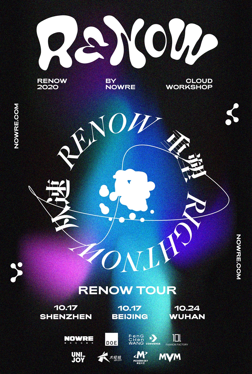 「RENOW」Workshop 全国巡回计划正在进行时,在此亦特别鸣谢深圳 DOE 、摩登天空视觉创意厂牌 MVM 与武汉 101 时尚工厂为这场「RENOW」之旅提供的鼎力支持。当「创造」正发生在你的身边,何不亲身加入其中?这一次,轮到你在「RENOW」Workshop 中「定义潮流」了。