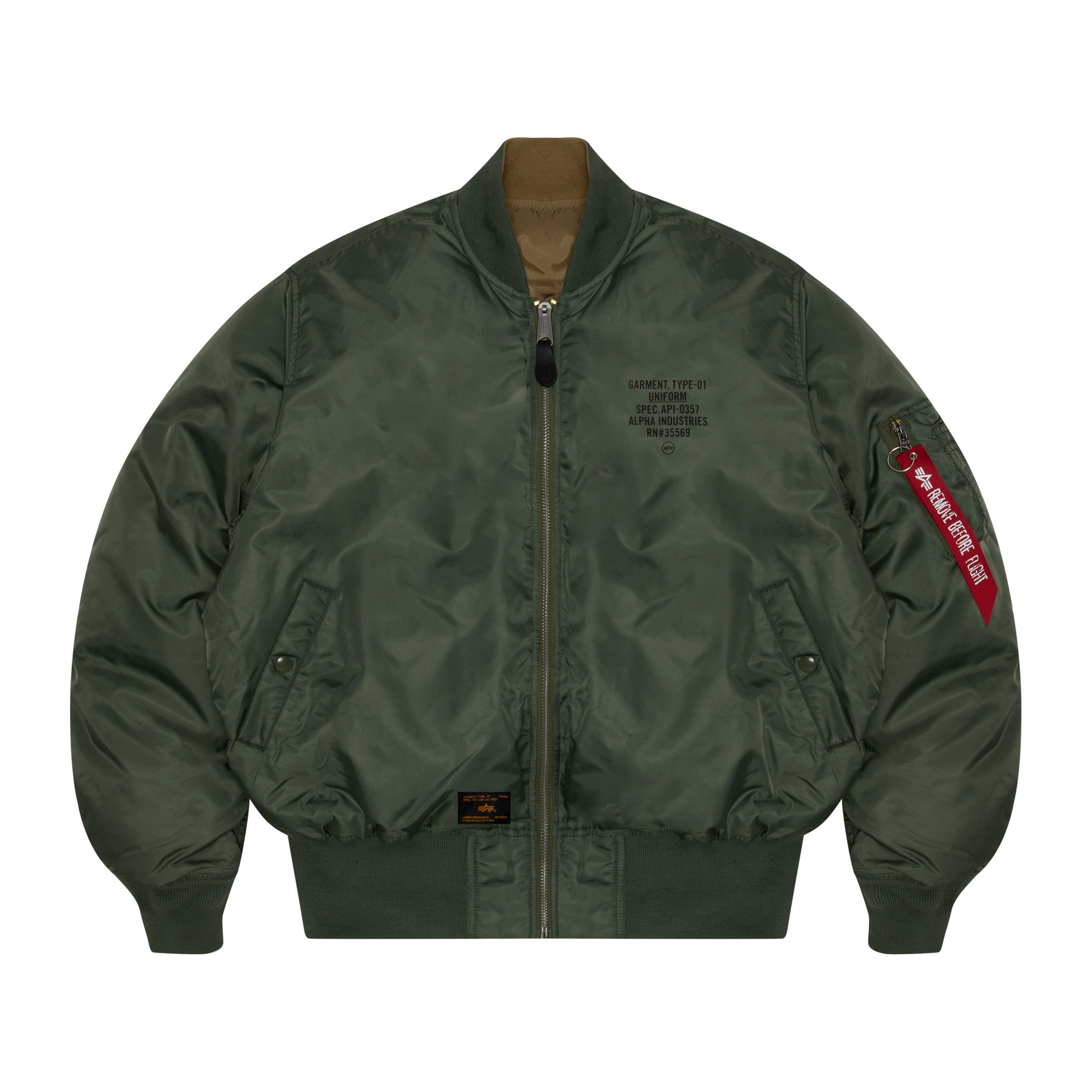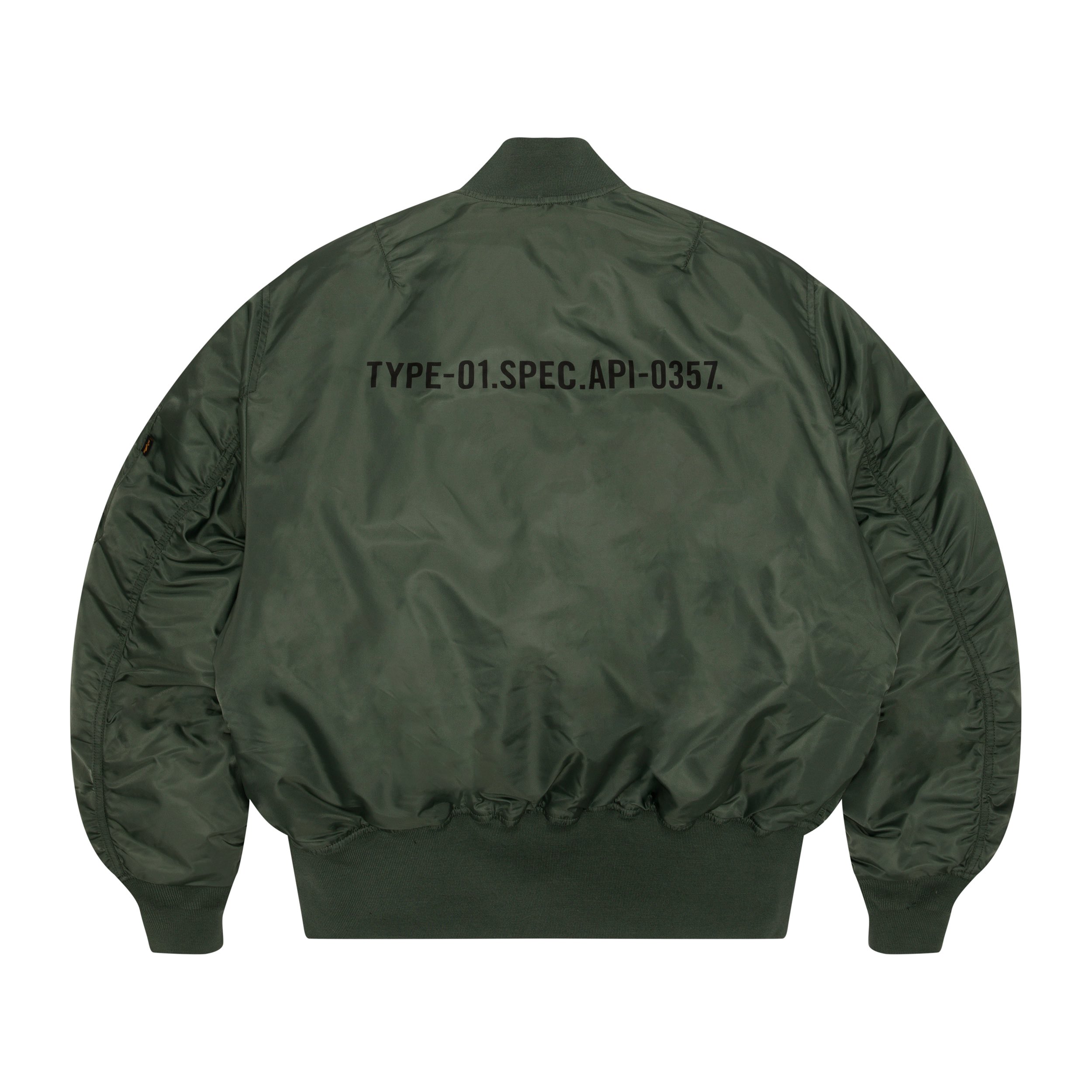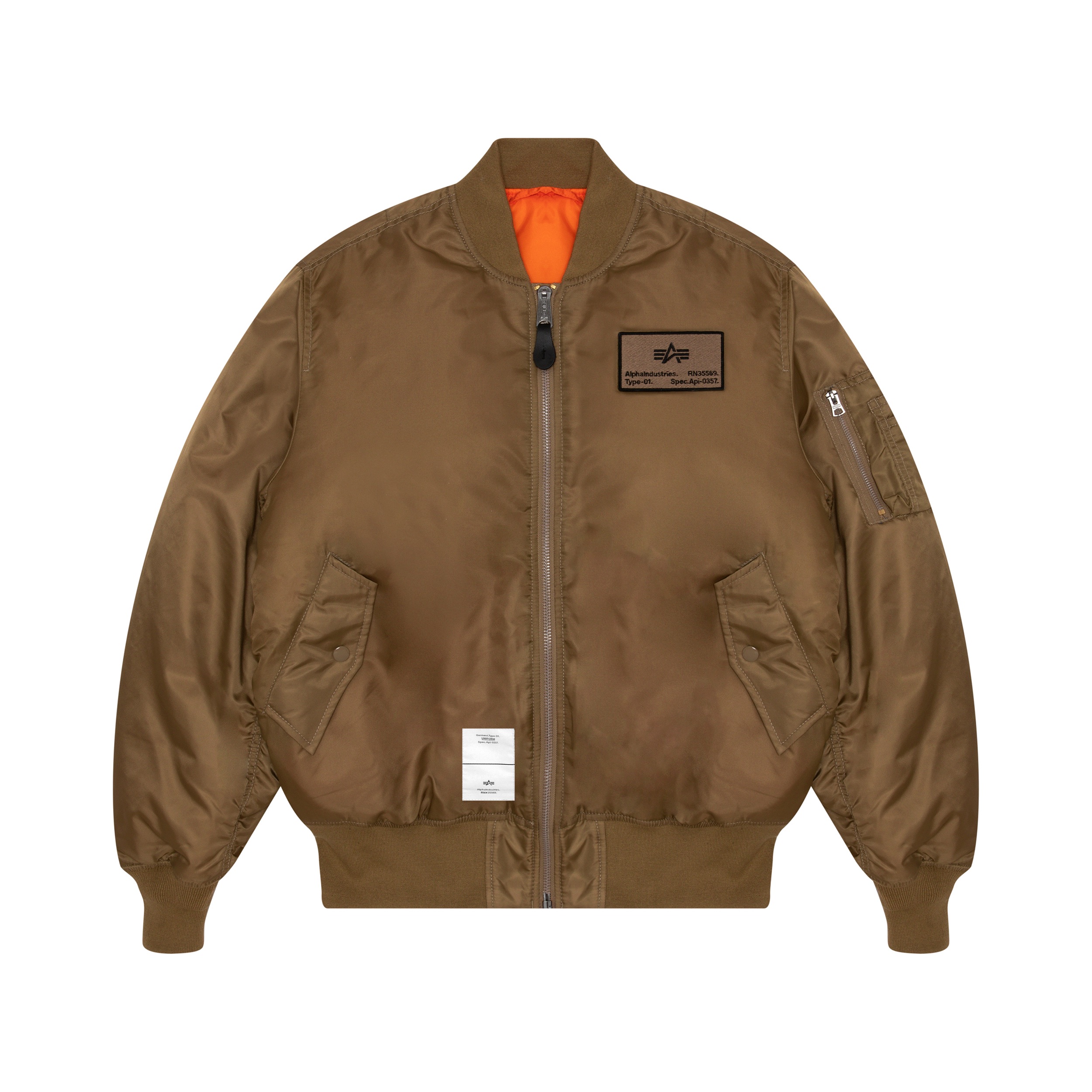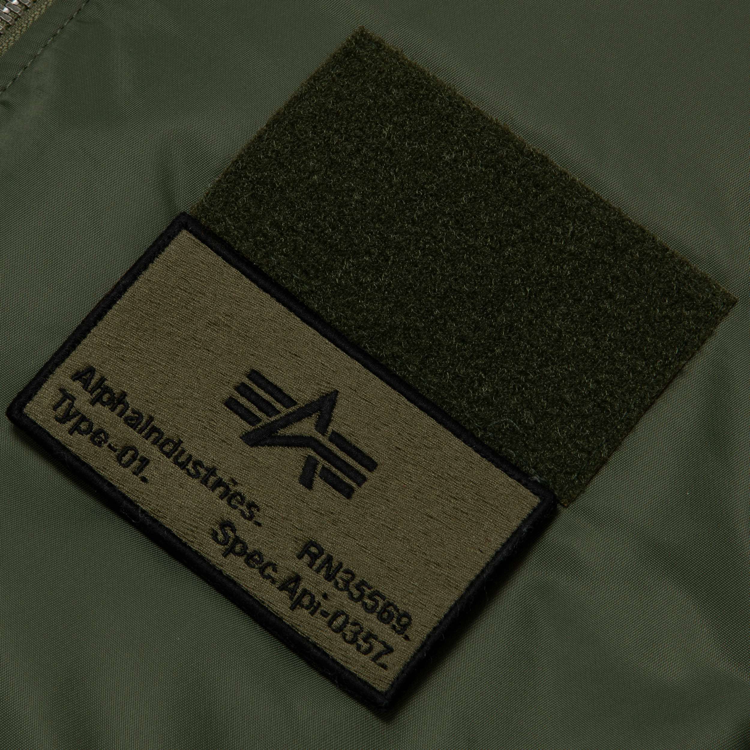 比如重塑而来的 MA-1 飞行夹克,就设有四色选择,保留了经典的夹面设计,其中 Velcro Badge 便是参考军阶而演变的 ALPHA Logo 军章,底部有着品牌 Logo 的压印效果。