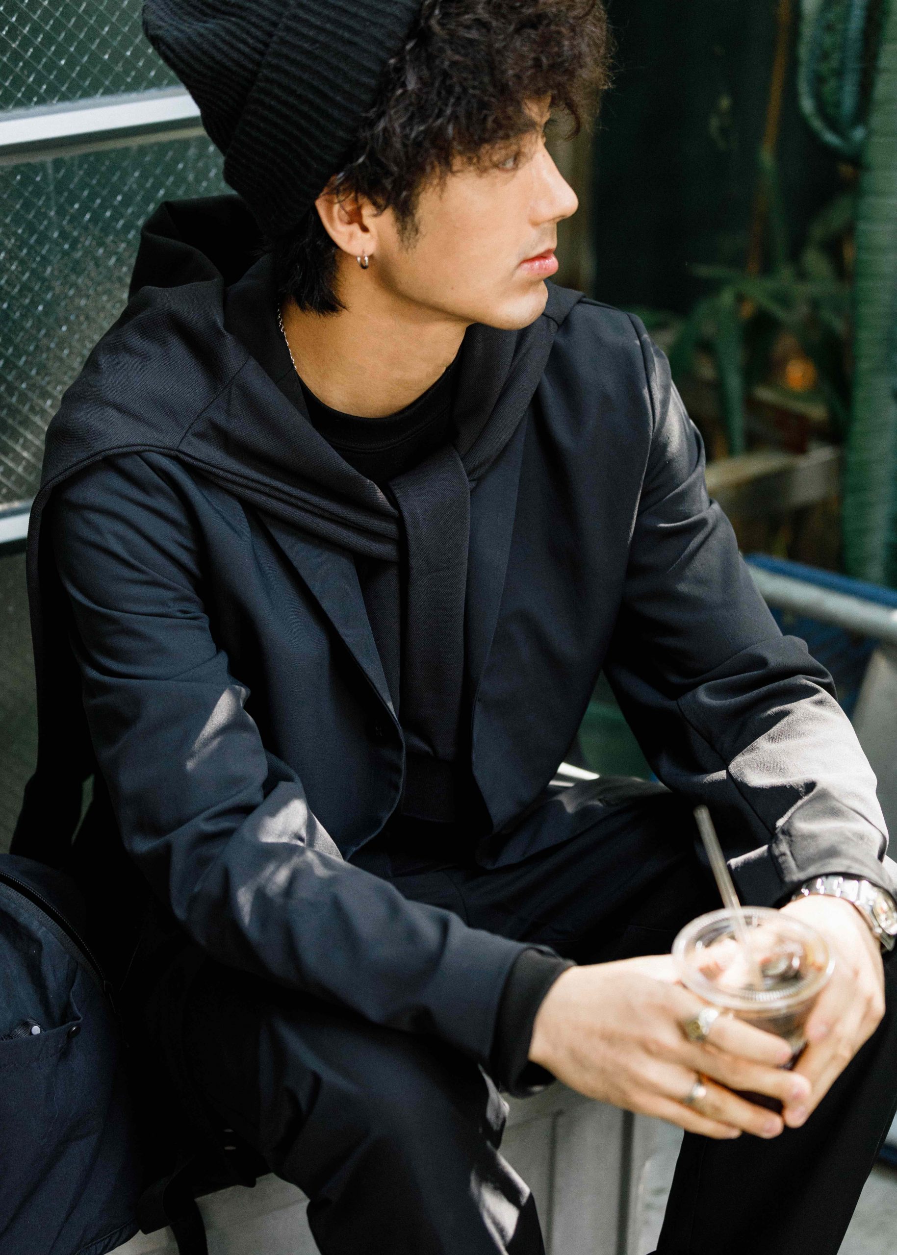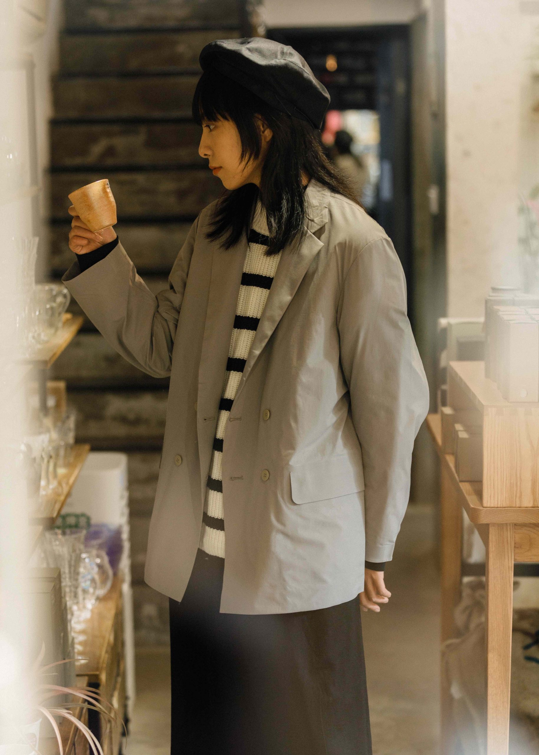 身处店中,配合 DESCENTE PAUSE 系列同色系服装的叠穿方式,除了在造型中给予穿着者更为丰富的视觉体验,也和咖啡店的现代感有着一丝契合。