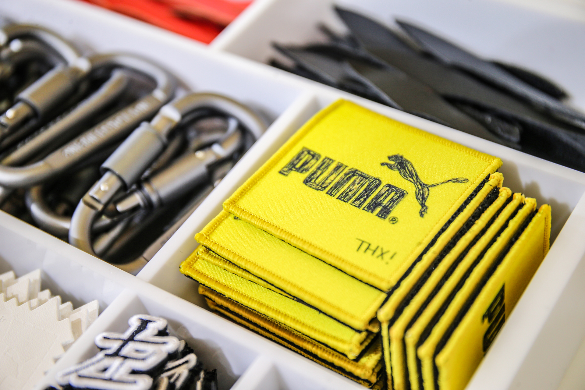 展区现场还设置了被装饰成样衣工作室的主题 DIY 互动区域,消费者可以借助PUMA 定制的样本元素配件与道具,在现场发挥想象力体验「试错」过程,定制专属潮流单品。