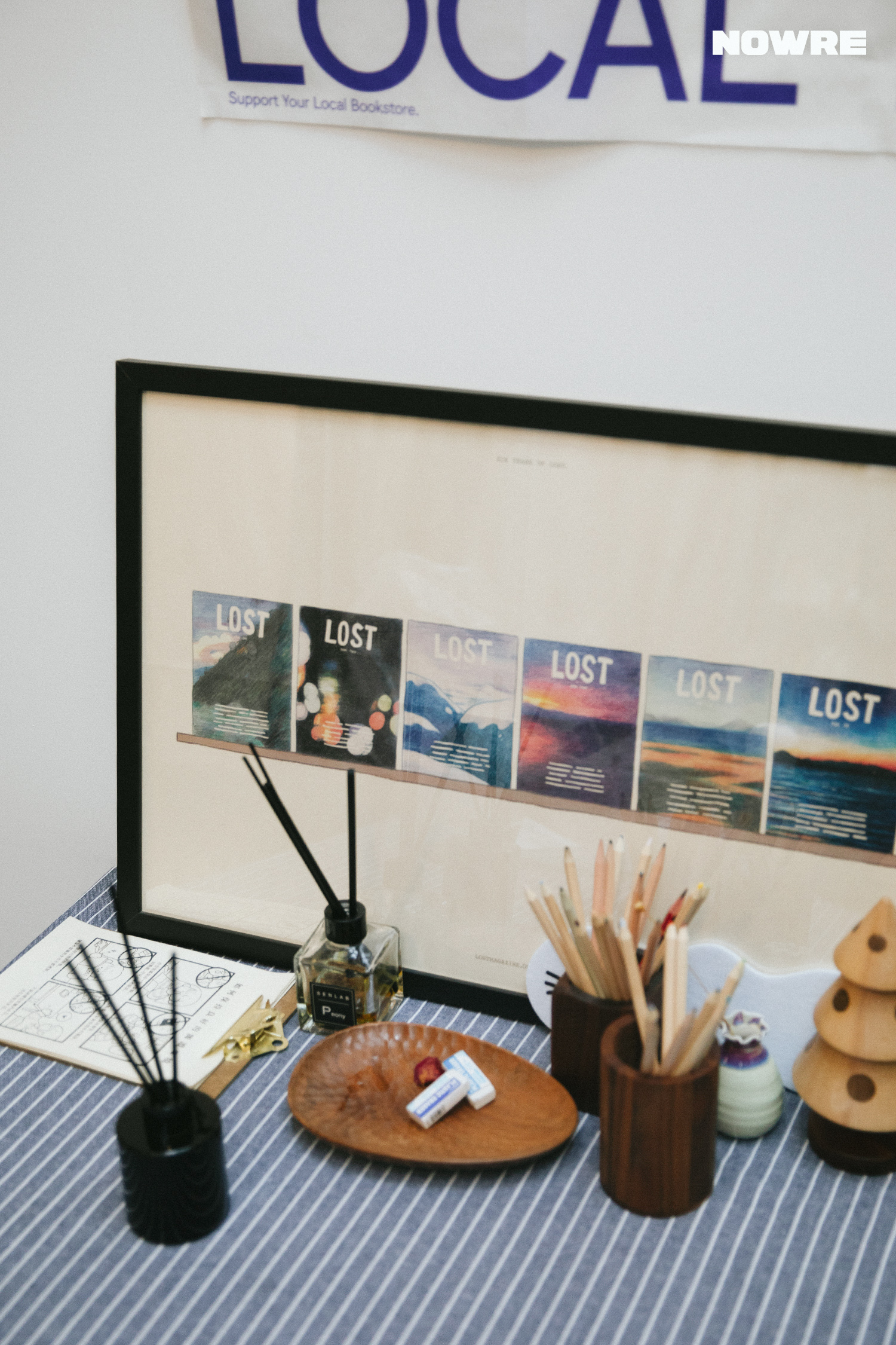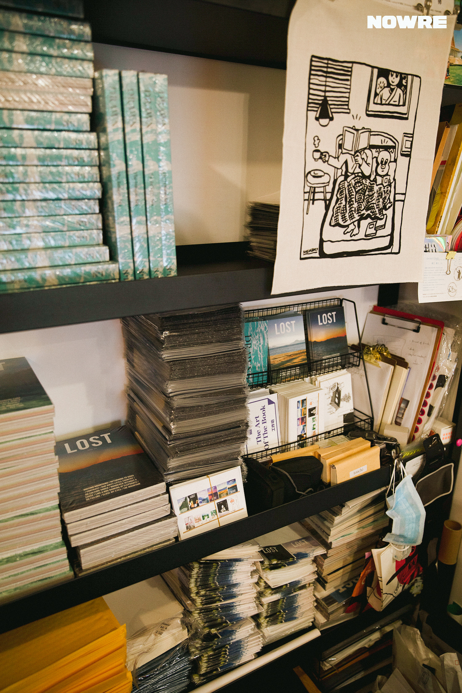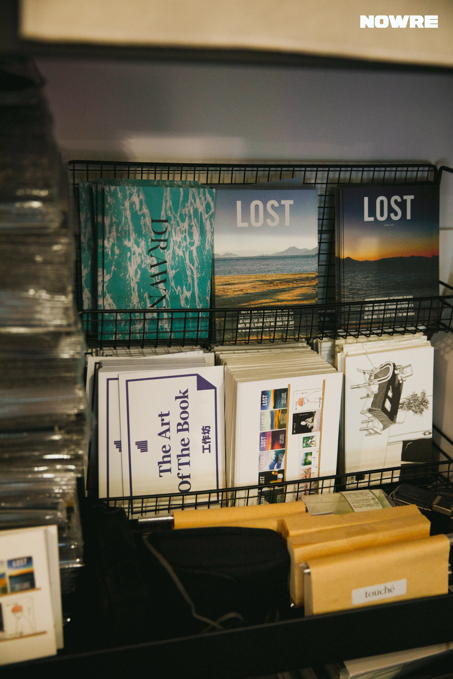 这里不仅仅是每一期《LOST》诞生的地方,也是 Nelson 的出版工作室「Volume Press」。除了《LOST》以外,各种各样的创意刊物填满了屋内的整面书架。当望向 Nelson 的工作区域时,你能看到工作桌一旁的墙上更是贴满了杂七杂八的海报、便条、明信片、灵感素材…… 这里没有开阔亮堂的办公环境,只有在简单温暖的氛围之下飘荡在小屋中的一个又一个创意灵感。