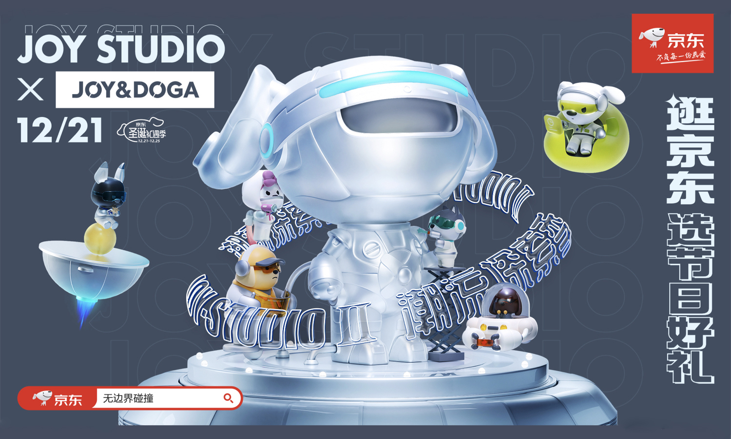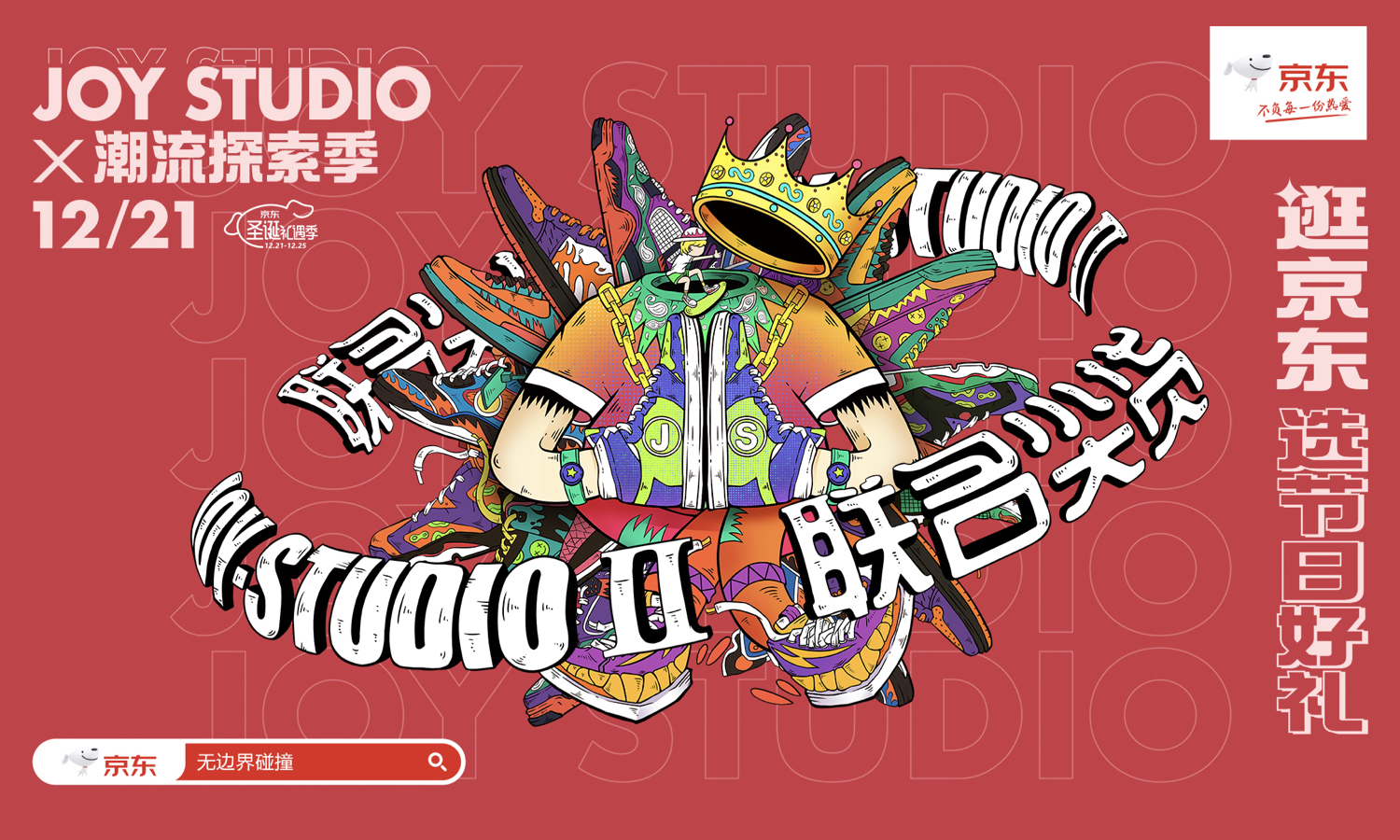 神秘感,会让拆礼物充满惊喜,而开盲盒或闷包则恰恰足够惊喜。这里不得不为各位推荐两件好物:可爱的 JOY&DOGA 探索系列新品非常值得拥有,没有什么比集齐一整套盲盒公仔更满足的事了!京东 FANBOX 和 isneaker 运动专营店推出的圣诞闷包同样也不能错过,能不能拆到权志龙 AF 1 小雏菊 2.0,就是真正检验欧气值的时刻了!