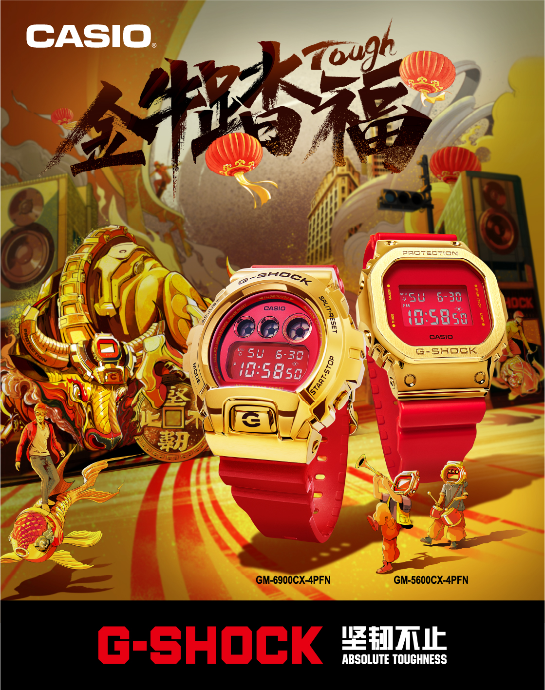 在新年来临之际,这次的腕表系列也必将成为新年造型的必选之物。新的一年,给新装备搭配一款合适的手表是最重要事情,佩戴全新 G-SHOCK 牛年限定款,金色与红色的亮眼配色选择,也无疑将会成为整体造型中的点睛之笔。无论是通勤出行,还是在年末选择一次旅行时光,这款融合传统新年和街头潮流的手表,都将陪伴你迎来一个亨通牛运的新年。