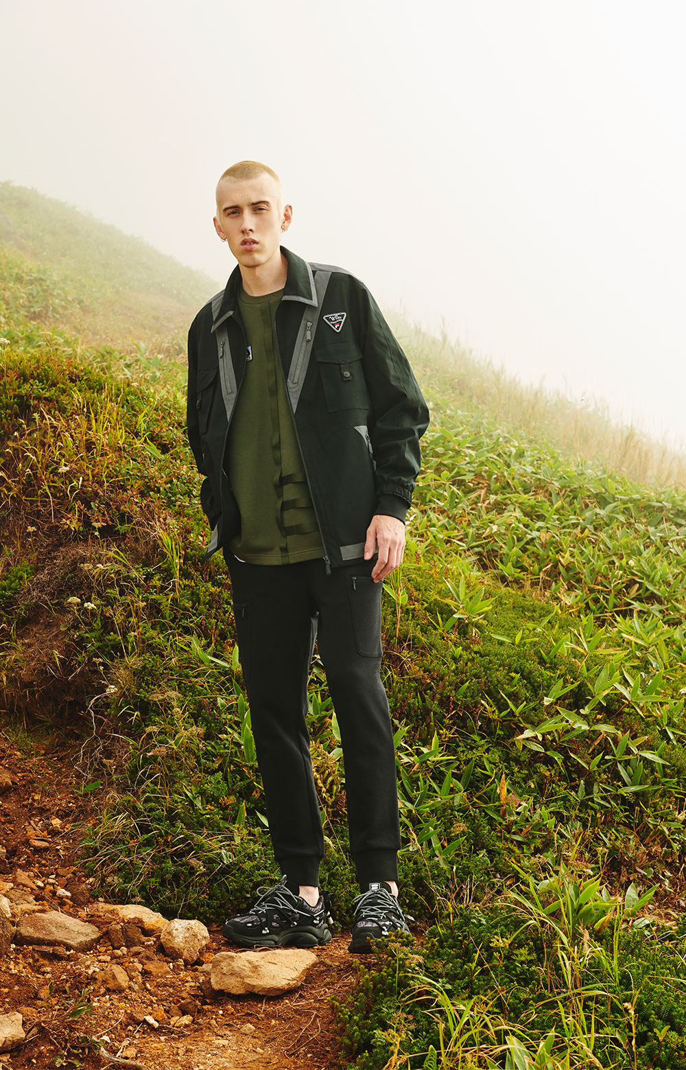 可如此具有包容度的 FILA FUSION,是如何通过合作,温和地「推翻」这些人们主观认知上的边界?答案很简单:户外精神应用于城市生活,城市观念影响户外行为。映射在服装设计上,即是将户外功能性细节与时装版式结合起来。曾经担任过渡边淳弥( COMME des GARÇONS 前版师,设计师)助手的相泽阳介,早期得渡边淳弥真传,将非常擅长的立体剪裁(相较于欧洲设计师,立体剪裁是日本设计师一大优势)运用在户外风设计上,也借由这些剪裁,将不同材质进行拼接,以营造出更多时装感。而之前提及的 Zipper Jacket 胸前的嵌条拉链,即是这种拼接设计的一部分。