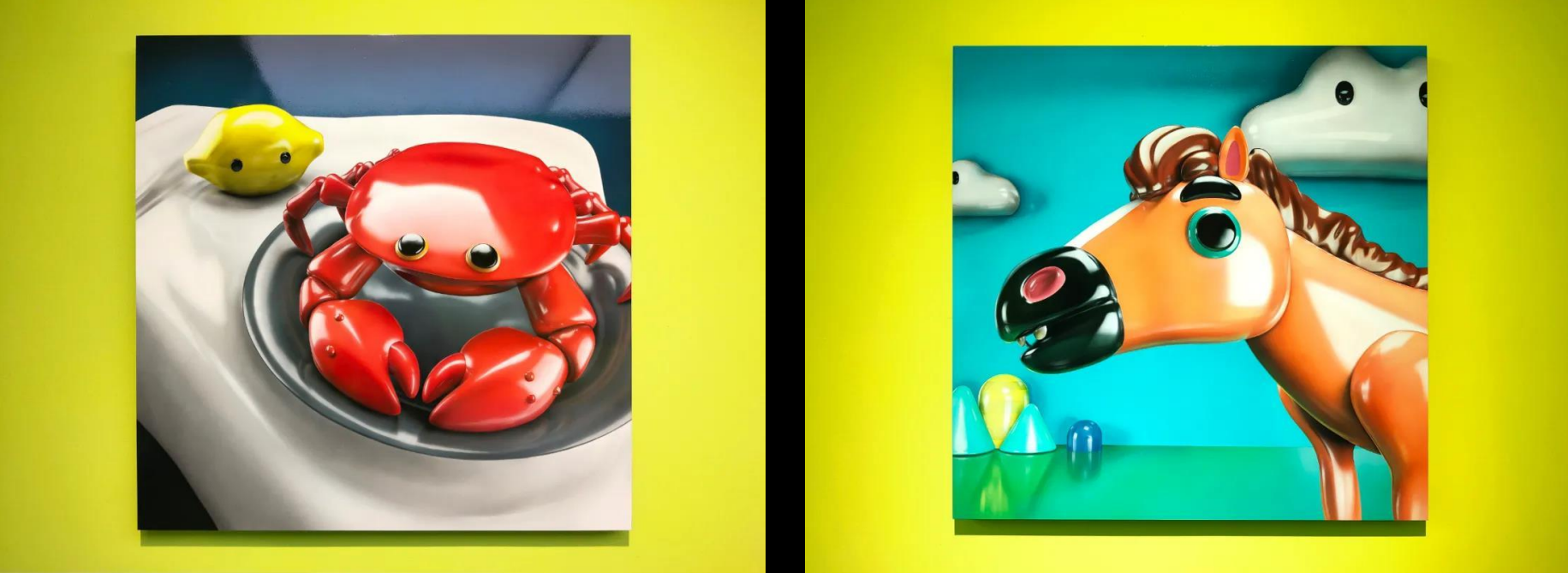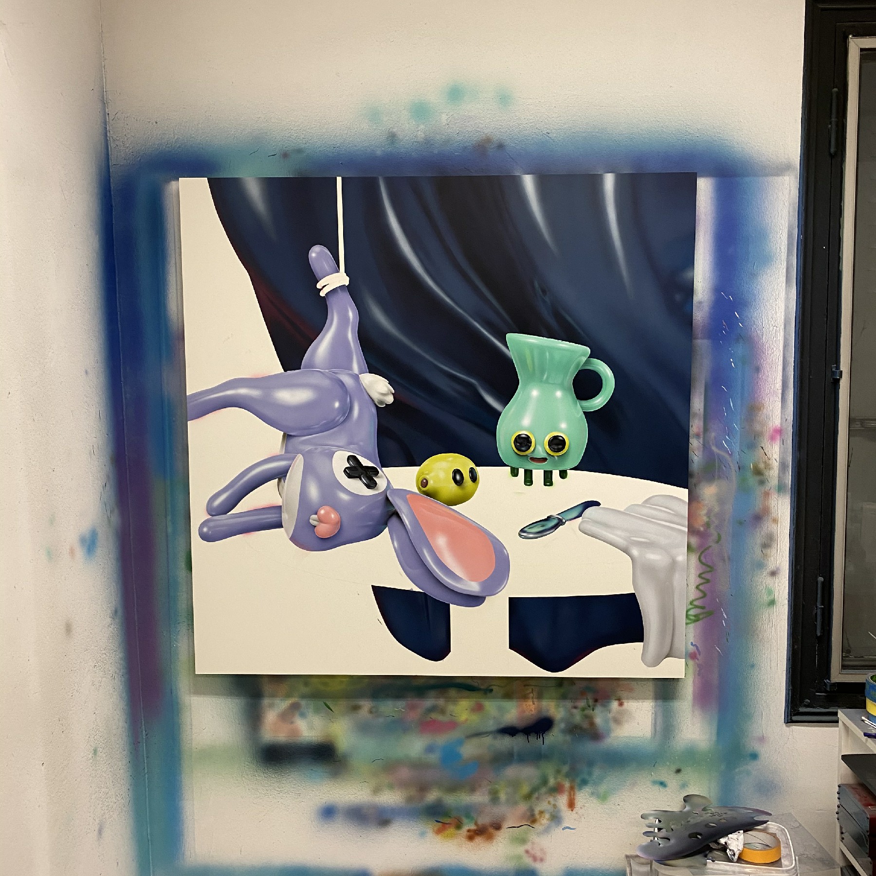 而我们今天要认识的一位法国艺术家 César Piette,似乎颇为契合以上提及的两点。基于生活的参考框架为他提供了探索绘画可能性的窗口,而当代的技术支持也为他创作方式的实验性带来了落地的可能。首次接触 César 的作品,人们或许大多会着眼于其表现出的立体感及卡通样式,仿佛这并不是一幅裱在框架内的绘画,反而更像是雕塑或装置艺术的呈现。被诸多媒体称之为超写实主义的手法,对于 César Piette 的风格来说,未免描述得太过笼统。进入他的艺术世界,我们能够捕捉到的,除了浅层表象的童趣与戏谑外,继而也感受到了 César Piette 对绘画可能性的延展思考。