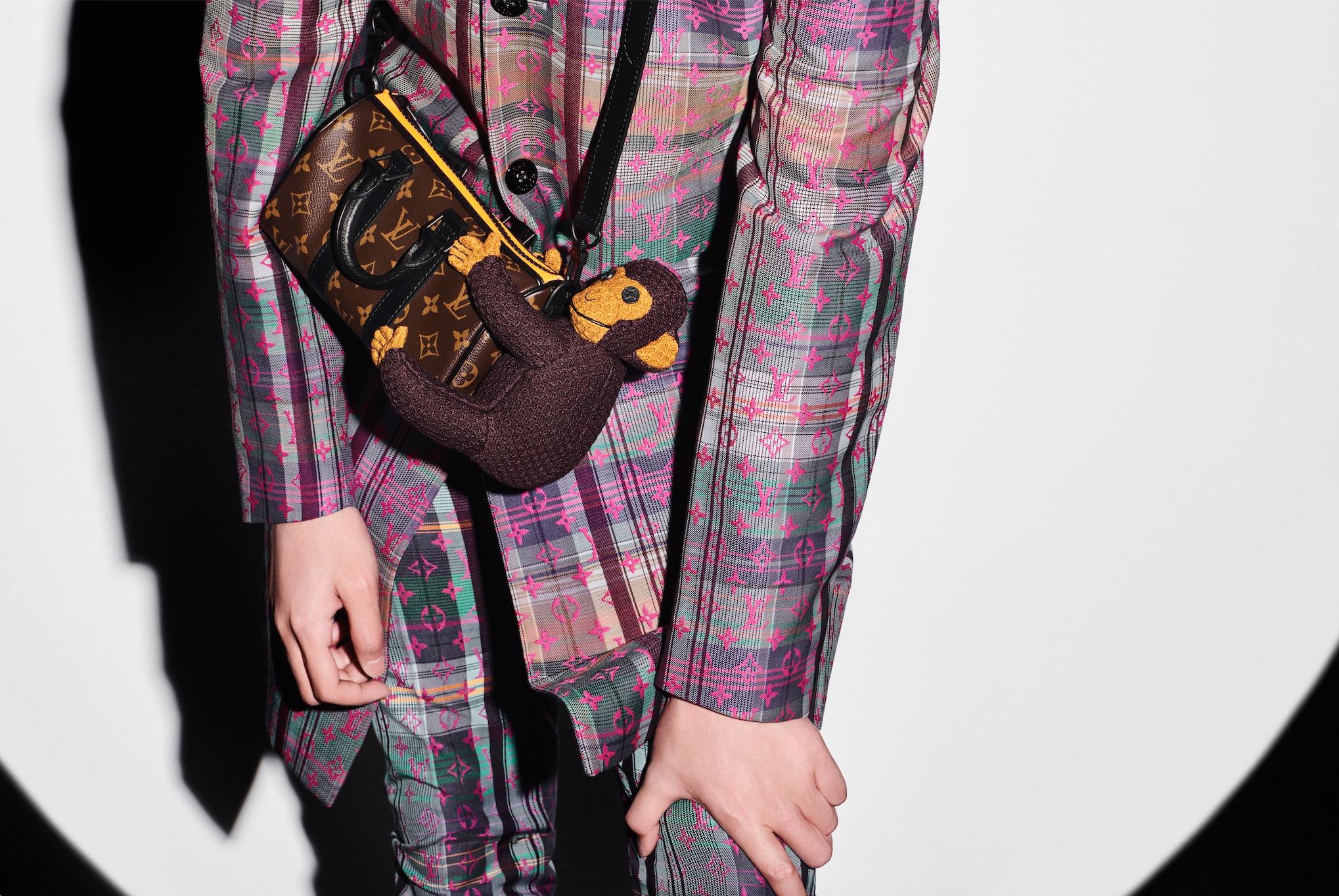 保留设计轮廓等比缩小后,Virgil Abloh 还将 2021 春夏充满卡通感的动物玩偶呈现在 Keepall 的细节处,针织小猴子环抱 Keepall 迷你旅行包,可爱童趣,而随着尺寸的改变,无论是着用性还是视觉效果有了更多的可能。