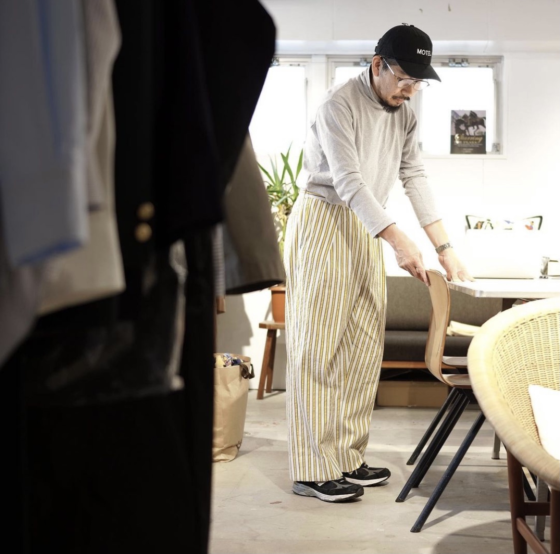 后来才知道这是一个专门做裤子的类似工作室式的品牌,并且还经常在东京本地有炒卖价,售卖对象可以说是小众中的小众,偏向于绅士男装和老龄 OG 街头男装群体中间那层。他们的特别之处在于面料和设计都和其他家不同,几乎全都是自己开发的版式以及订织的材料,比如超级粗坑条的灯芯绒,还有一些你只能在服装历史书中见到的裤型。而我,作为一个号称自己是男装玩到头的「装 b 犯」,最受不了这样的设定,只好每年乖乖交钱购买。