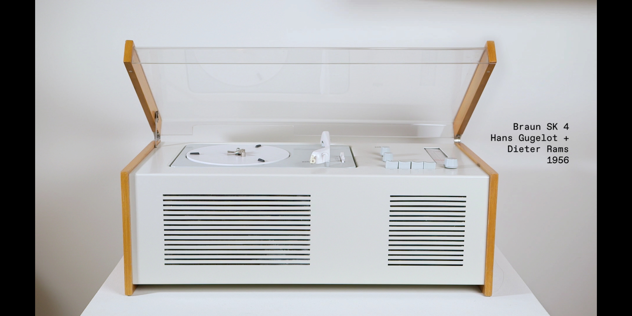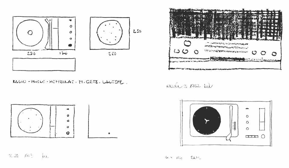 二十四年后,1979 年,Rams 在一封写给 Erwin Braun(Braun 第二代掌门人之一)的公开信中,记述了自己早年在公司的经历。以建筑师身份加入的他,起初主要负责展览布景与办公空间的设计,而在此过程中,年轻的 Rams 对产品渐渐萌生了浓厚的兴趣。1956 年,他与 Ulm Institute of Design(乌尔姆设计学院)的导师 Hans Gugelot 和他的团队,以及 Braun 的同事们一道参与了 SK4 Radios 收音机和 Record Player 电唱机的开发。这是 Rams 真正意义上全程参与的首个产品设计项目。