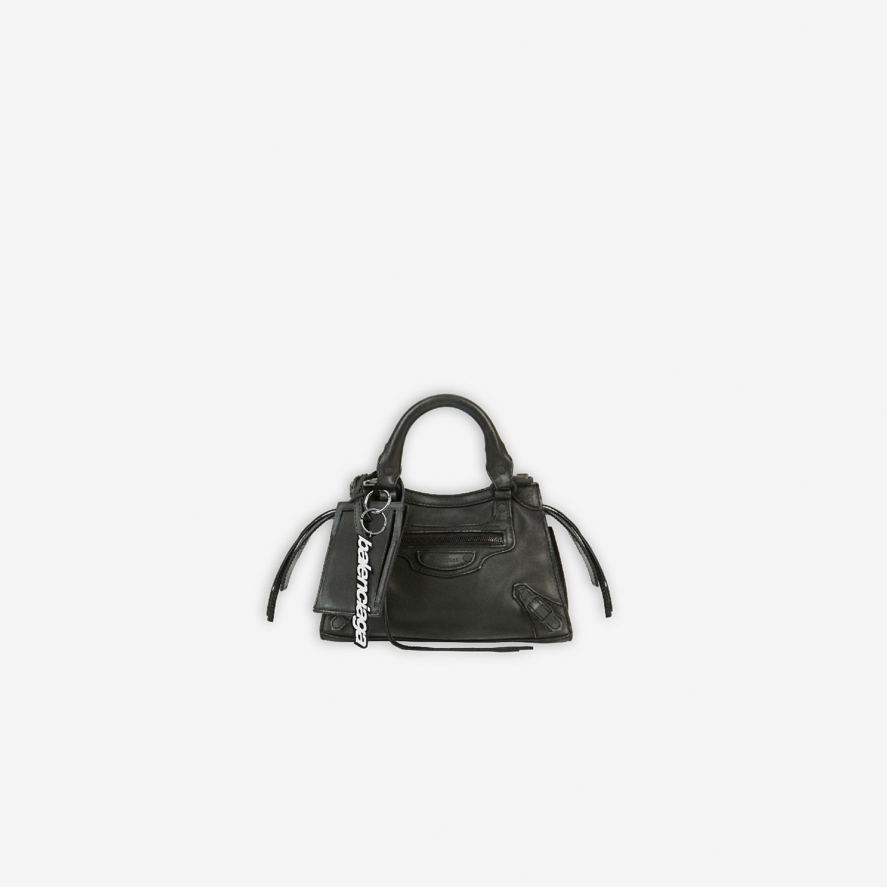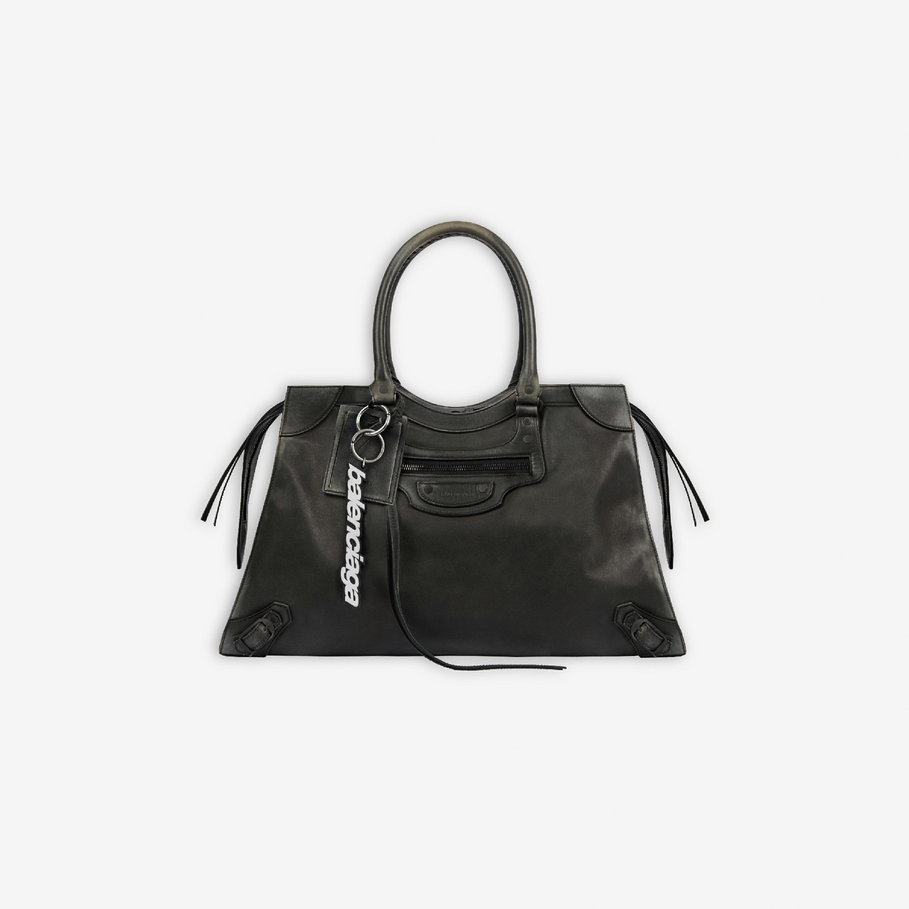 系列中亮相的 Neo Classic Used 包袋则为 Neo Classic 系列的延续,作为 BALENCIAGA 经典的包袋设计之一,Neo Classic 最初由 Nicholas Ghesquiere 于千禧年初打造。2020 秋冬季秀场,为庆祝这一包袋问世 20 周年,Demna 将其重新带回,更新后的轮廓为一个更有结构性的手提包,拉链开合,配以 BALENCIAGA 标志性的 moto 铆钉和编织手柄细节。在当季秀场的展示中,Demna 推出了多个尺寸版本的 Neo Classic 包袋,而在此次的「夜光精灵」系列,Neo Classic Used 同样提供了三个尺寸选择。