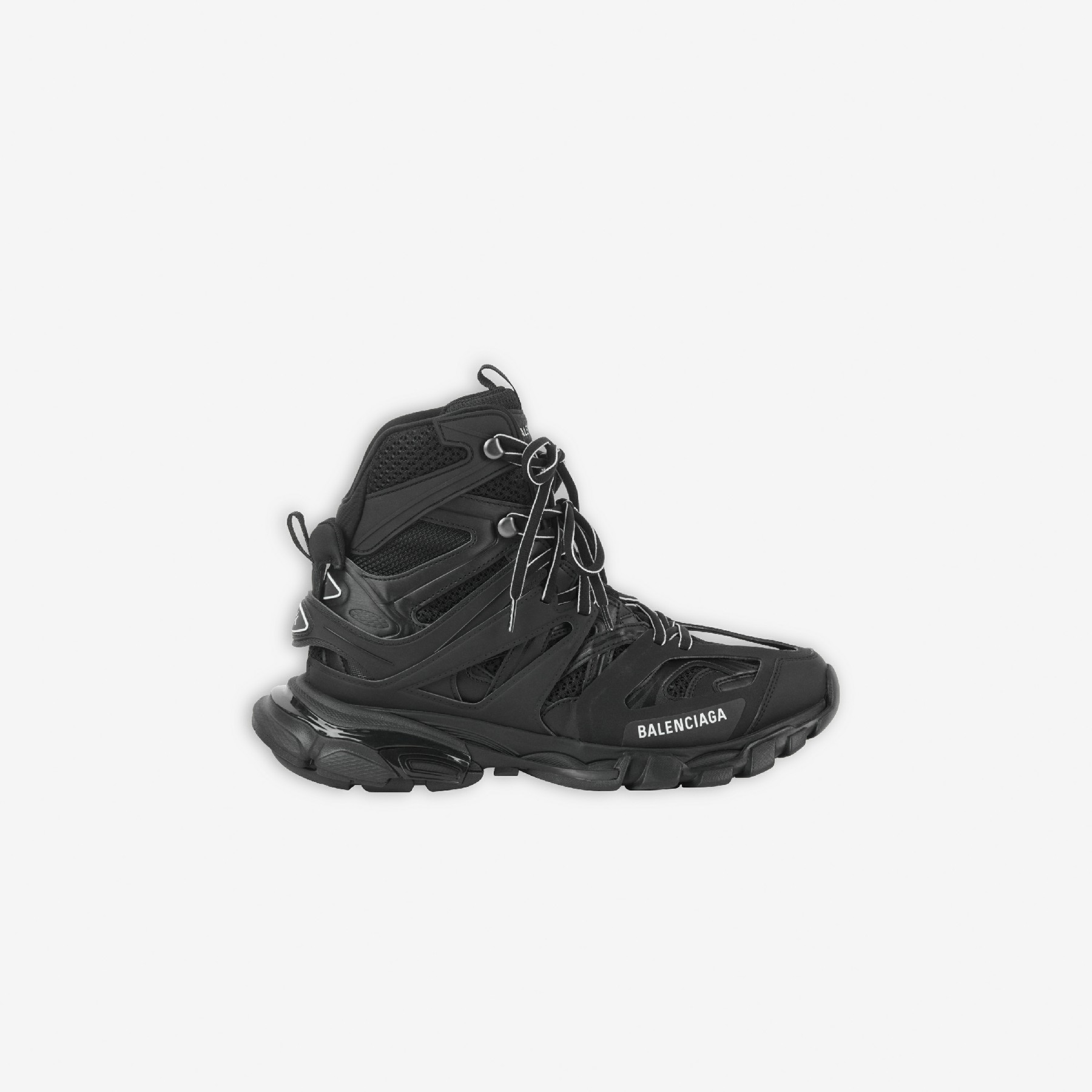 Demna 掌旗之下的 BALENCIAGA 时代,球鞋品类是其占据消费市场重要话语权的存在,而在「夜光精灵」系列中,2018 秋冬秀场首度登台的 Track 系列运动鞋成为鞋履主角,涵盖有系带露跟的 Track 穆勒运动鞋,以及被称为 Track Hike,采用氯丁橡胶制成、加入高帮设计与功能性材料的登山靴。