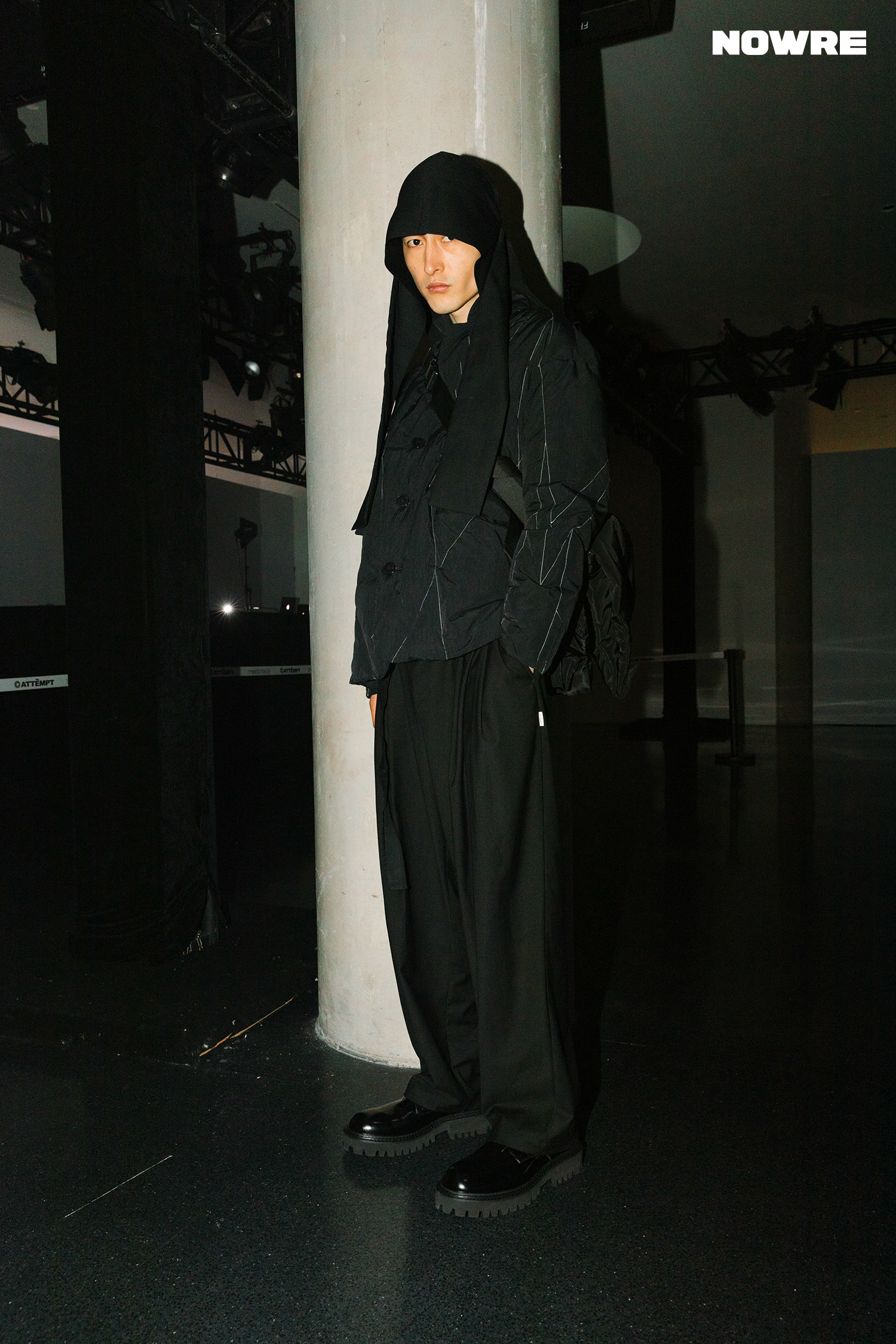 在设计方面,ATTEMPT 2021 秋冬系列确实塑造出了有着独立鲜明性格面貌的群体形象,这亦融入着 ATTEMPT 对「体制化」的理解,不难看出这个系列中,大量的制服体系语言与「点线面」的元素相互对立统一,在强调对称的同时,亦可以让观者在其中找到一些「破坏感」。另一方面,我们仍可以看到不少非常「ATTEMPT」的单品,它们延续着这个品牌惯用的设计手法,如解构、褶皱等元素。此外值得注意的是,本季设计将排列组合的原理运用在了面料材质上,最终借此演绎出了一些强烈的空间感,体现着个体与群体之间相互依存与制约的关系。如梁栋所说:「将平衡做好,实穿、不啰嗦是我希望 ATTEMPT 每个产品能具备的特点」。