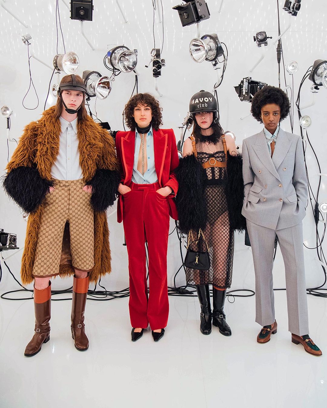 Michele 在 GUCCI 官方 Instagram 账号分享了系列的灵感笔记,他提到了德国思想家 Benjamin 的话术:为了规划未来,我们需要改变过去,随着过去的展开,追溯可能潜藏着未来图景的生命本源。这句论述几乎对应着 Michele 个人的时装创作哲学,在过往的 GUCCI 系列中,他接连不断的穿越到往昔的年代,并将属于过去的产物加以点缀、重塑,与当下呼应,用他自己的话说,这是抚摸过去的根茎。在今时与往日的并排相交下,经过混合、过渡、断裂、串联,追求一种不合乎常规的诗学。Michele 将 GUCCI 形容为一个黑客实验室,在这里,任意的元素与产物皆能够连接、相融;在这里,Michele 兑现着自我的情感,GUCCI 百年历史的美学遗产,只有通过不断进化的能力,方才得以更新为永恒的存在。
