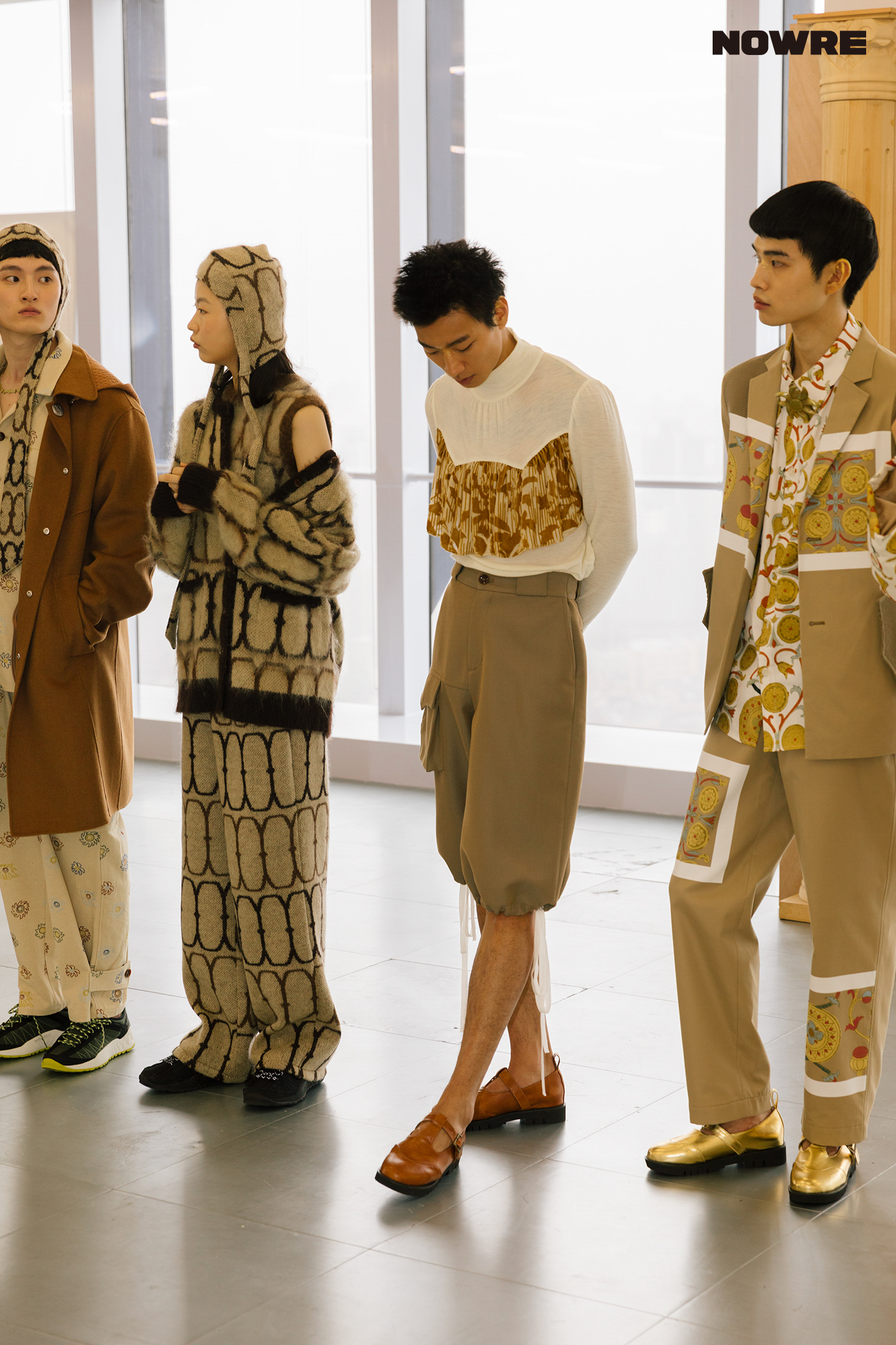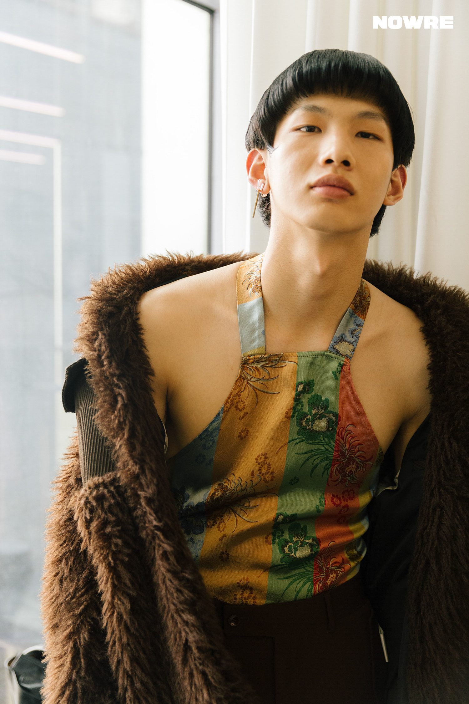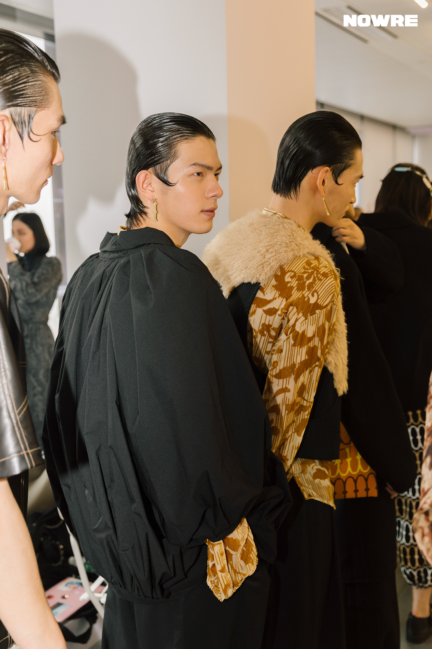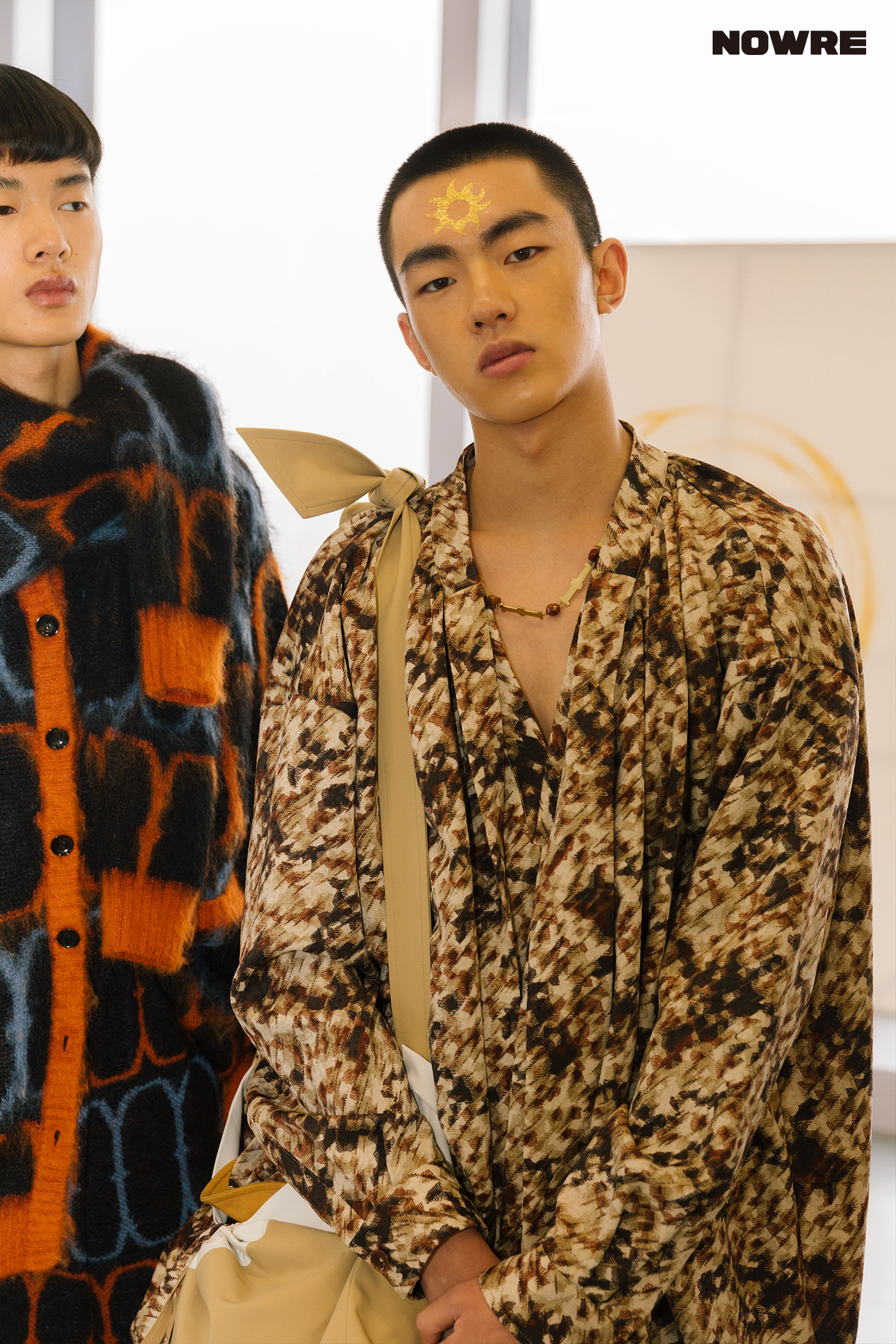 在这场时装秀结束后,设计师 Dayun Tang 终于有了一丝休憩机会,我们也在后台与他一起坐了下来,与他聊了聊关于服饰系列的点滴细节。