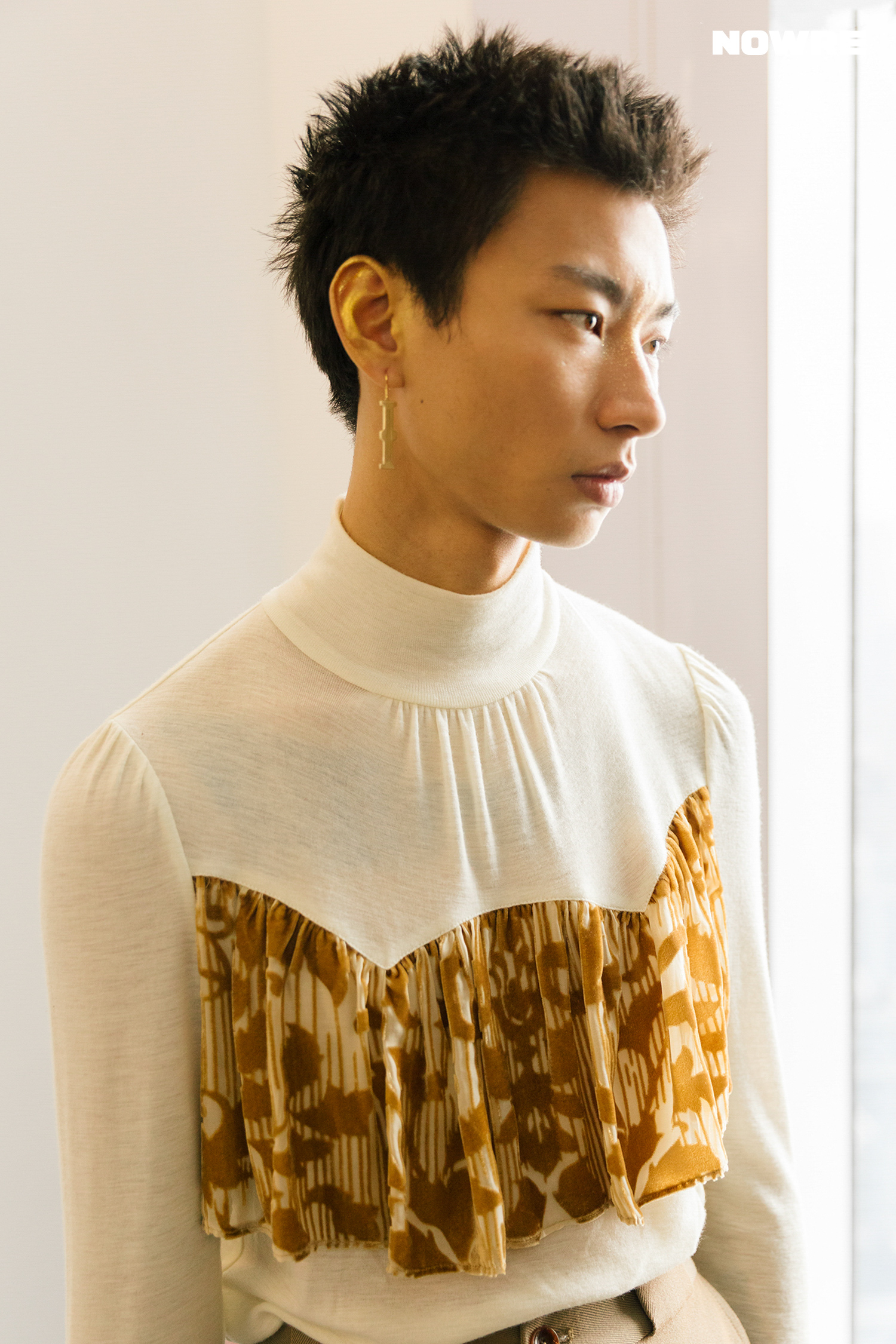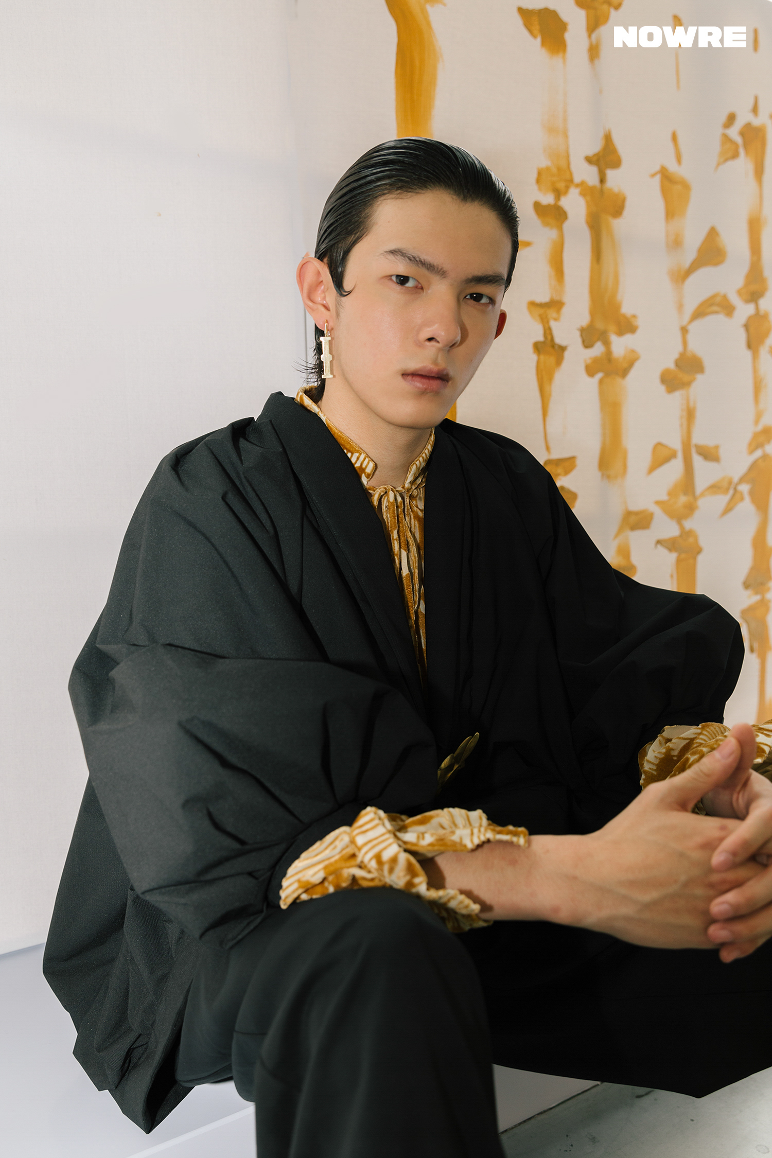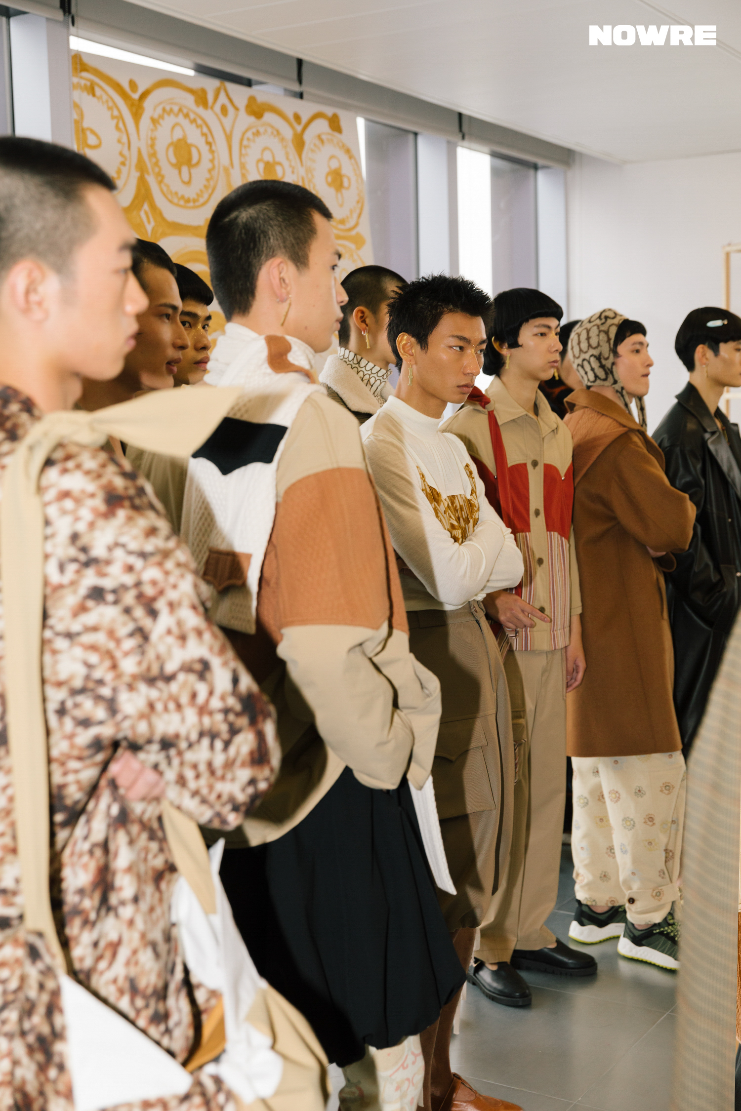 在这场时装秀结束后,设计师 Dayun Tang 终于有了一丝休憩机会,我们也在后台与他一起坐了下来,与他聊了聊关于服饰系列的点滴细节。