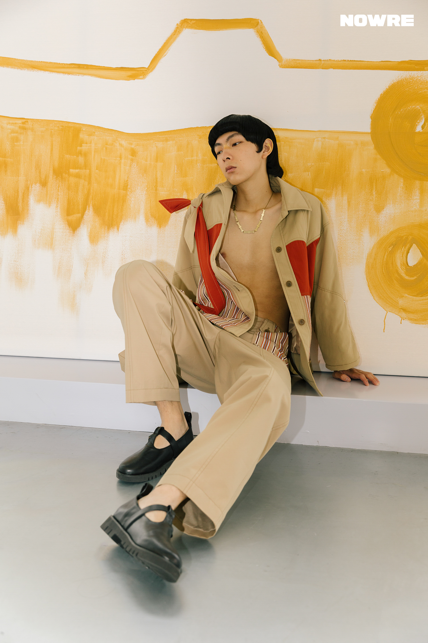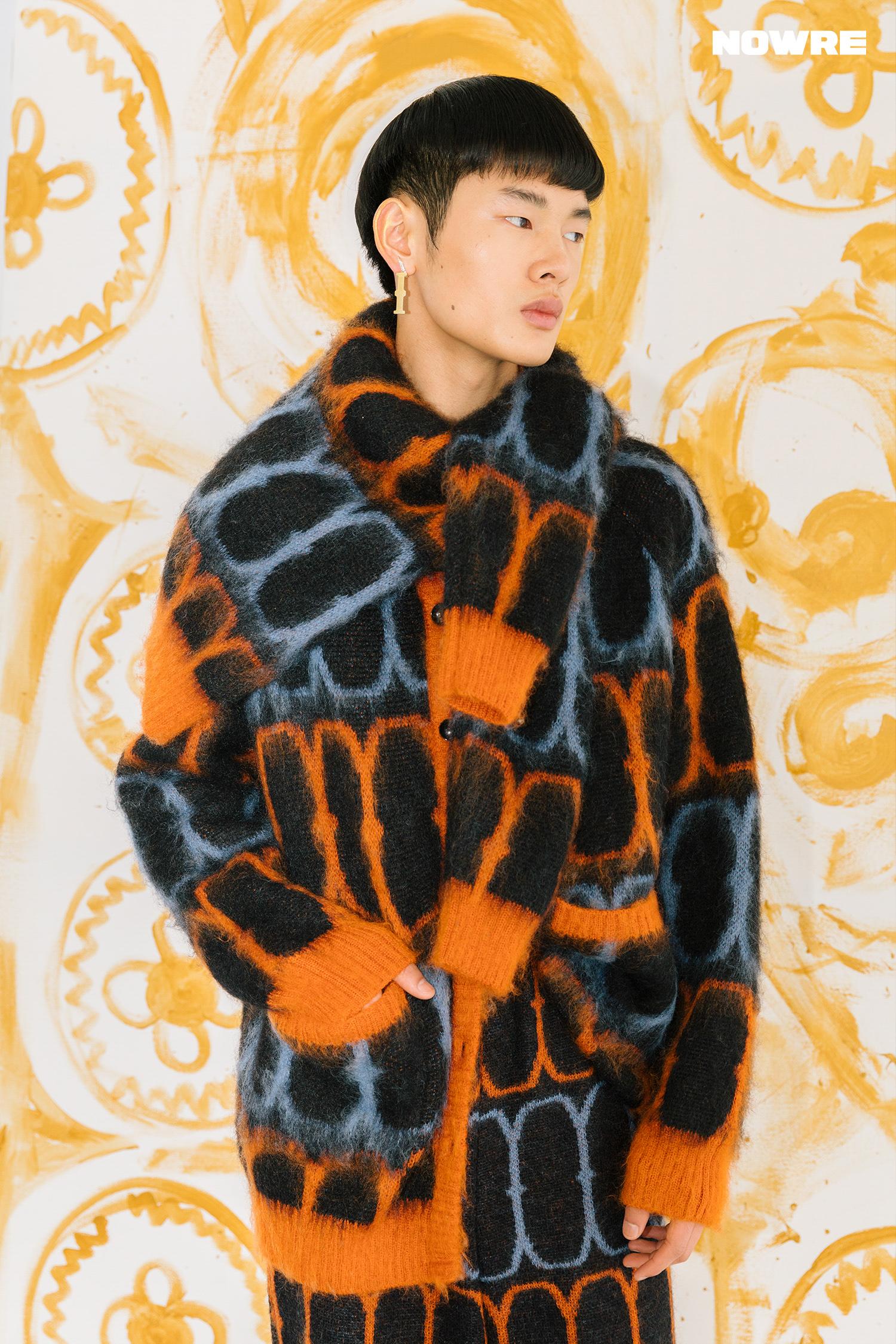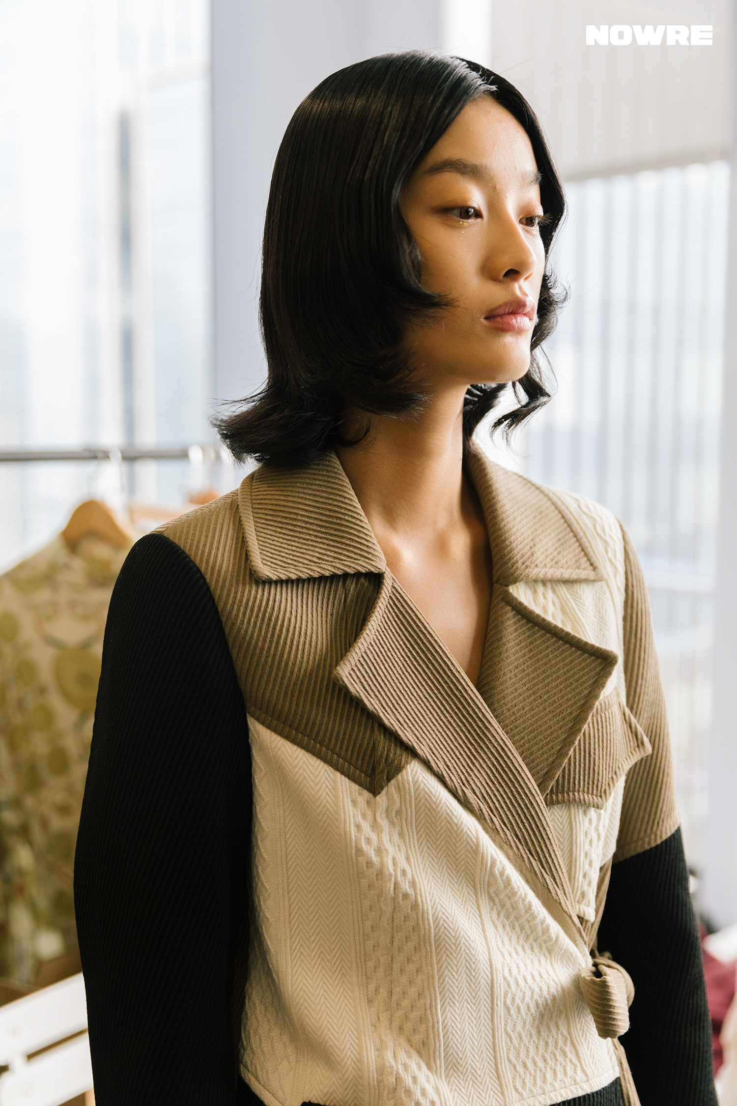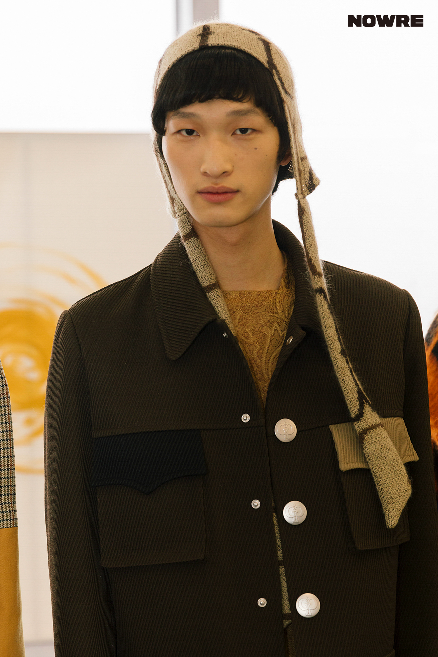 在这场时装秀结束后,设计师 Dayun Tang 终于有了一丝休憩机会,我们也在后台与他一起坐了下来,与他聊了聊关于服饰系列的点滴细节。