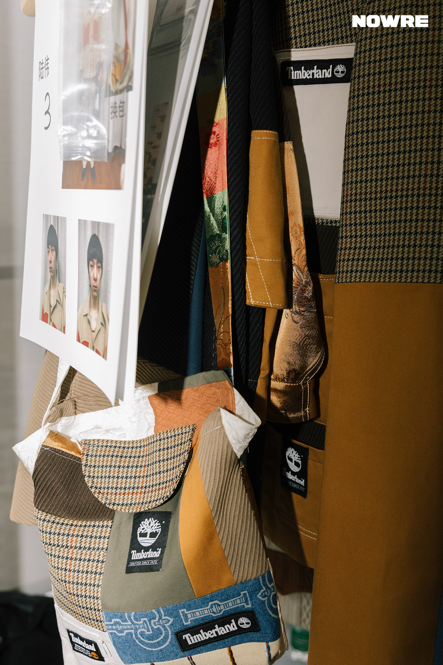 本季秀场上出现了一套与 Timberland 合作的 Look,看起来好像是使用废弃布料拼接的?