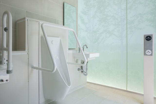 透明的玻璃外墙能够令前来使用公共厕所的行人对内部的整洁程度一目了然,而当人们进入厕所并上锁后,与门锁直接相连的科技程式则会将透明玻璃变为不透明的,为使用者提供一个私密的空间。