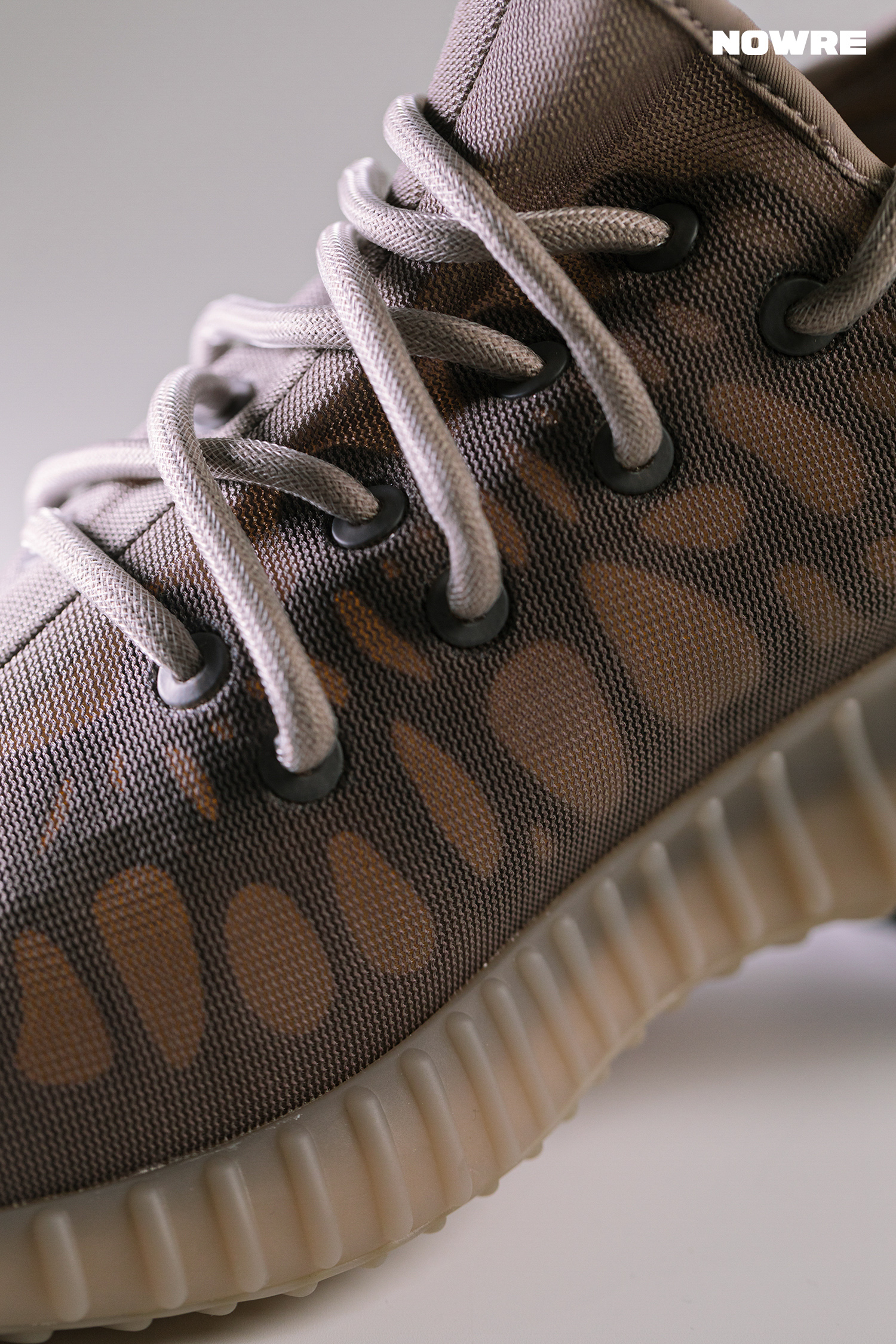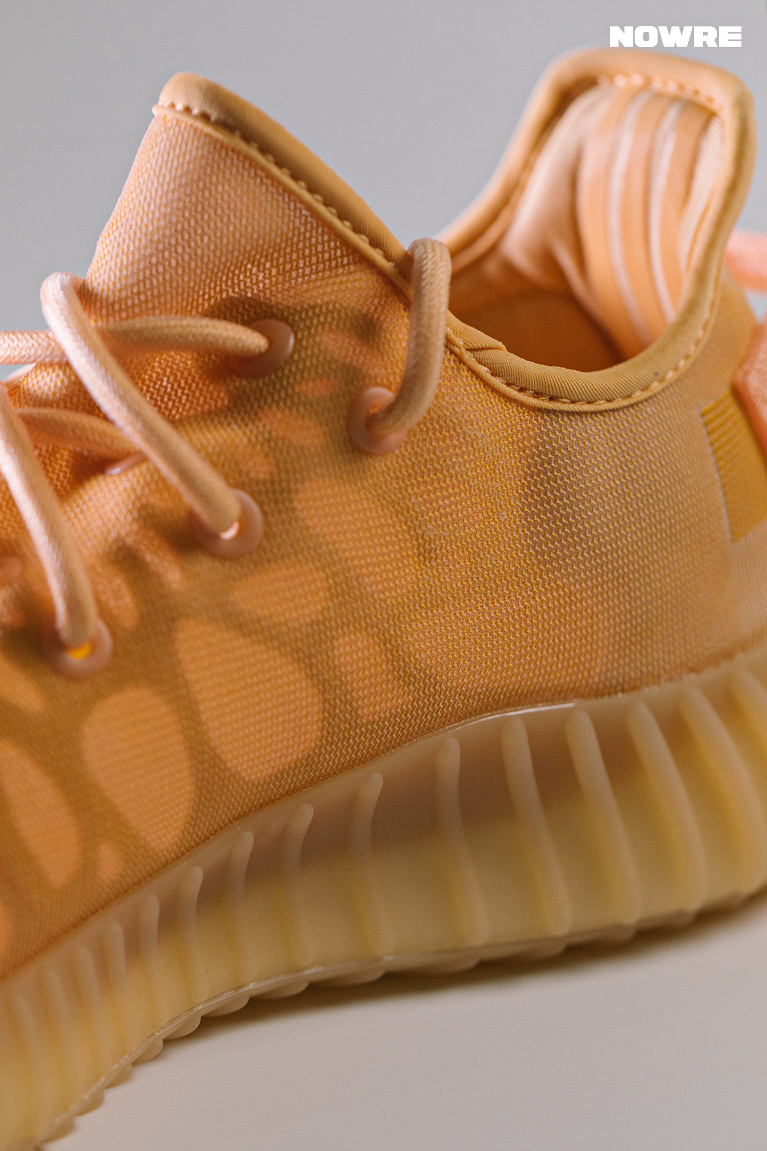 实际上一眼就能看出它们与之前的 350 V2 配色有什么不同之处,区别于标志性的 Primeknit 针织材质,此次采用了单丝网面打造,让整体显得更加简洁,减弱了原本不同织物形成的错杂感。除此之外,在炎热夏天,这种面料也能够提供轻盈和良好的透气性。