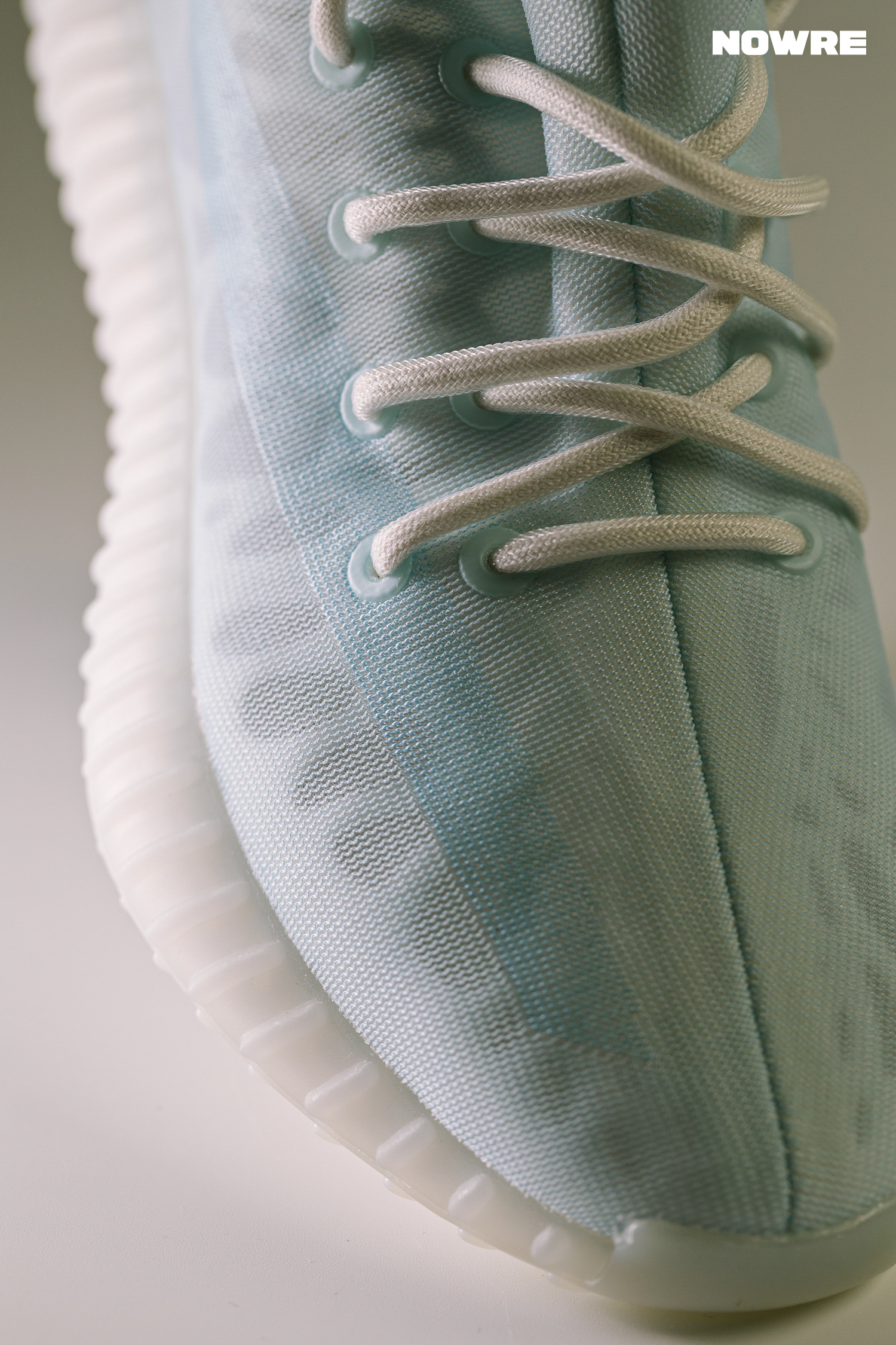 而透过鞋面能窥探到的鞋身内部结构,也是与前作不同的细节之一。类似于网状的分布难免会让人联想到人体的皮肤状结构,这在很多针对鞋类有机化,生物科技化的概念设计中常常出现。除此之外,如果去观察一些 YEEZY 系列在今年曝光的新鞋款,也能从中发现一些相关的联系,或许是一种新审美体系下的体现。