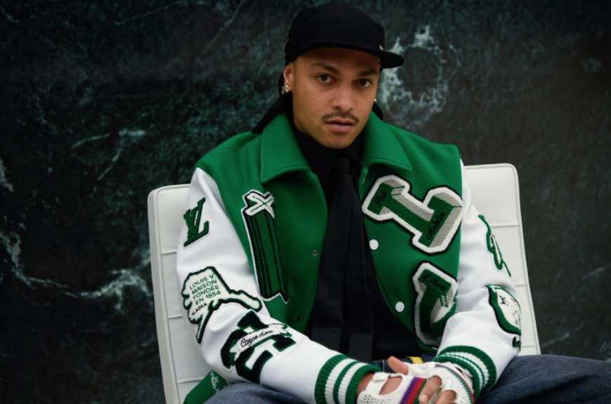 而王鹤棣最期待的白绿配色棒球夹克则是 21 秋冬最为重磅的单品,与 LV 男装世界其他服装相比,这件夹克的版型和印花更为街头,棒球夹克糅合羊毛和粒面牛皮,搭配罗纹袖口及腰部设计和按扣前襟,精致却不失街头感。