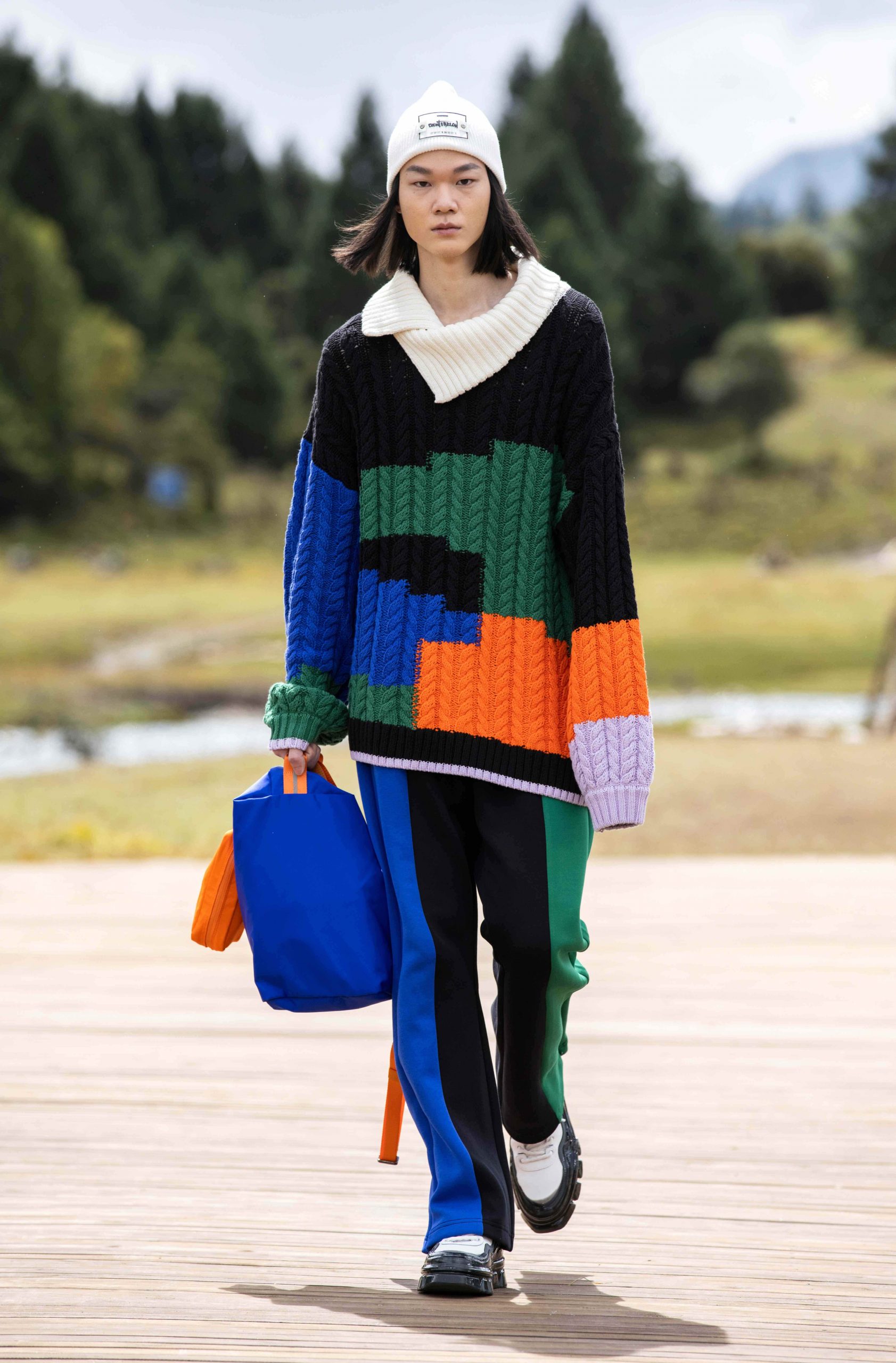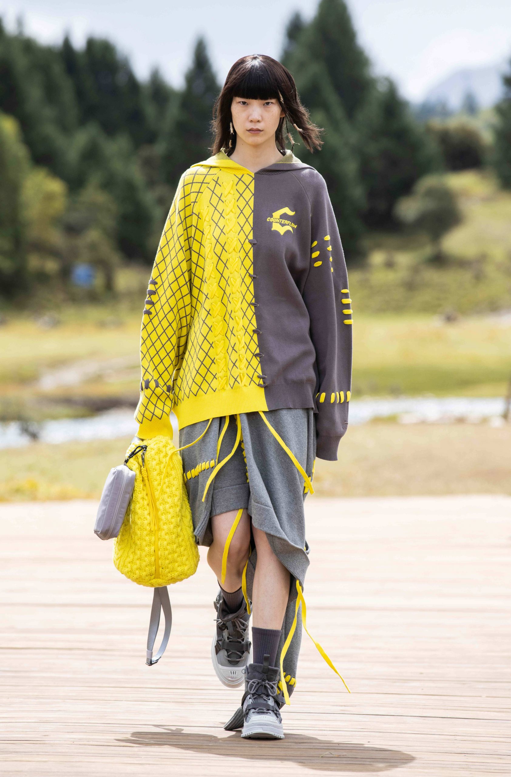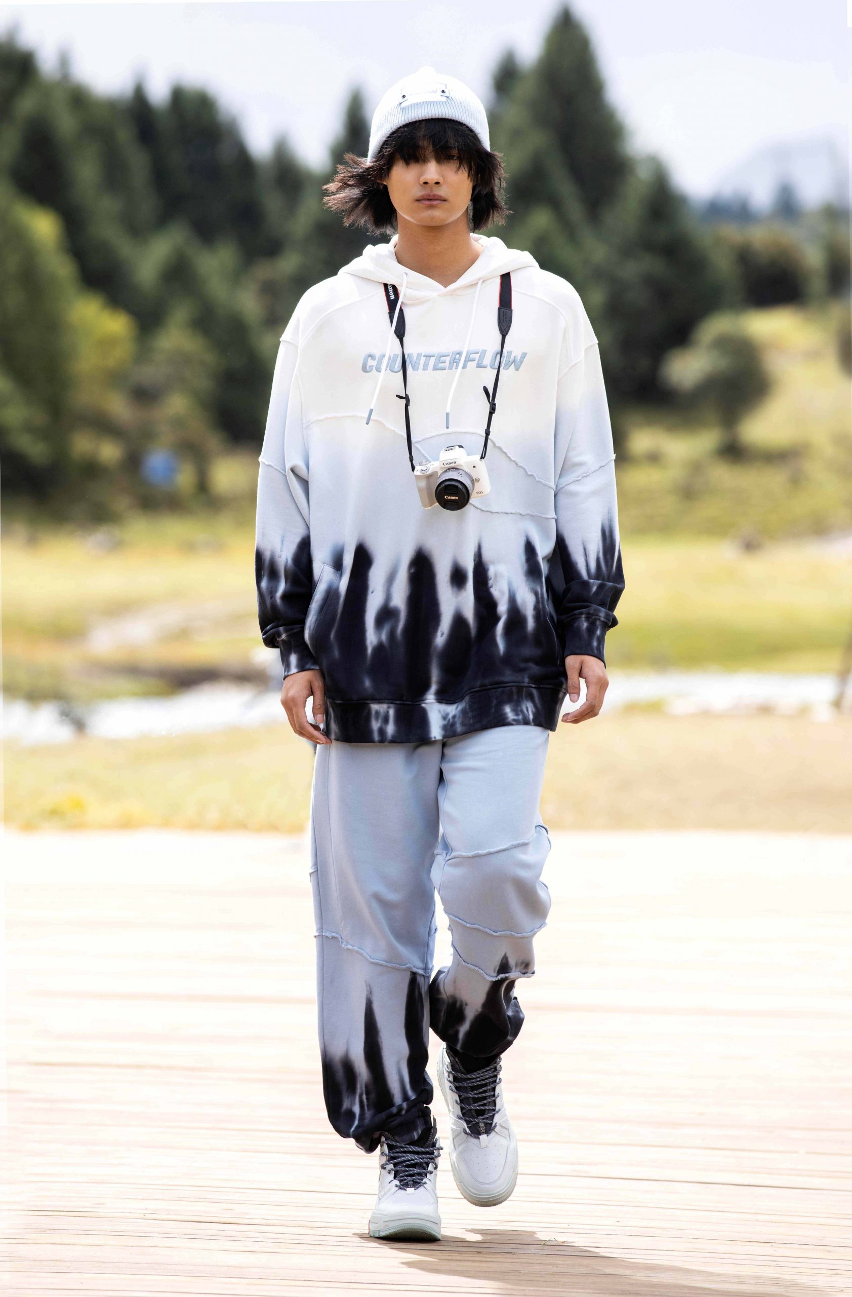 地之溯源,则是在大地中摄取灵感,将每一段行路印刻在服装上,也刻在了每一位行者的灵魂深处。通过细节肌理展示,高原的质朴在简约干净的鞋履产品上一览无遗,整体呈现出如山峦连绵起伏的层次感和立体感。