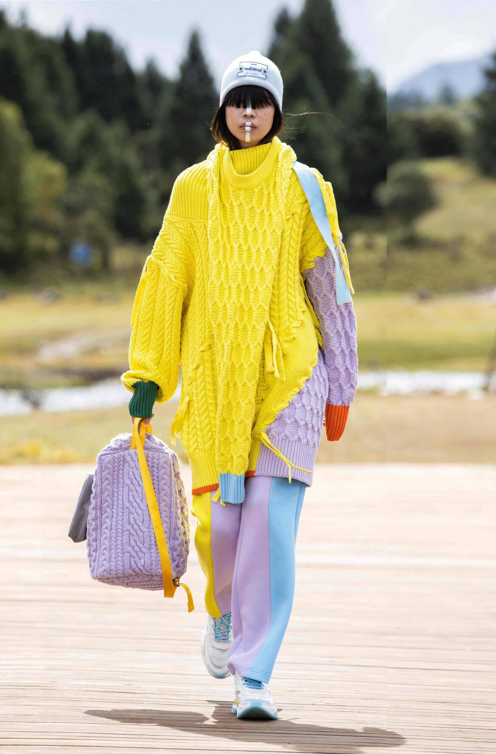 作品被纽约现代艺术博物馆收藏的独立设计师支晨。则是以五色经幡为灵感,展开对文明的探索,其对于针织技术的热爱与不断探索,与李宁悟·行所倡导的攀行精神不谋而合,一切的精进都在于人们对于精益求精的践行。