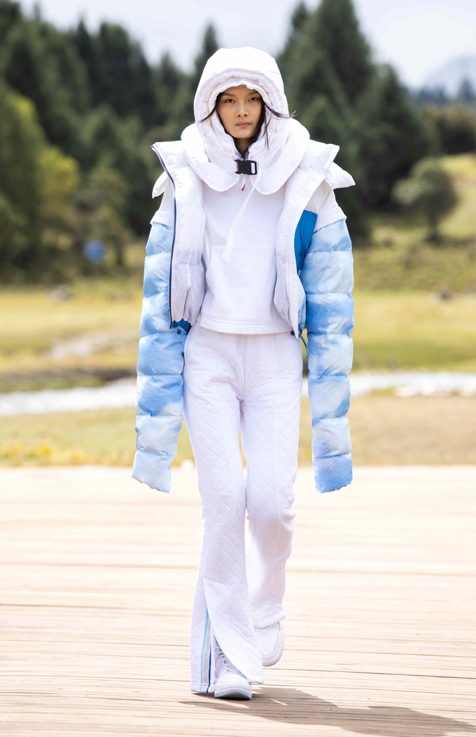陈鹏,以延绵的雪山与浩瀚的天际作为灵感,将自然间的美感设计上身,同时这也是他在设计领域道路不断攀行中的感悟,「天之愿景」向着更高的山峰。