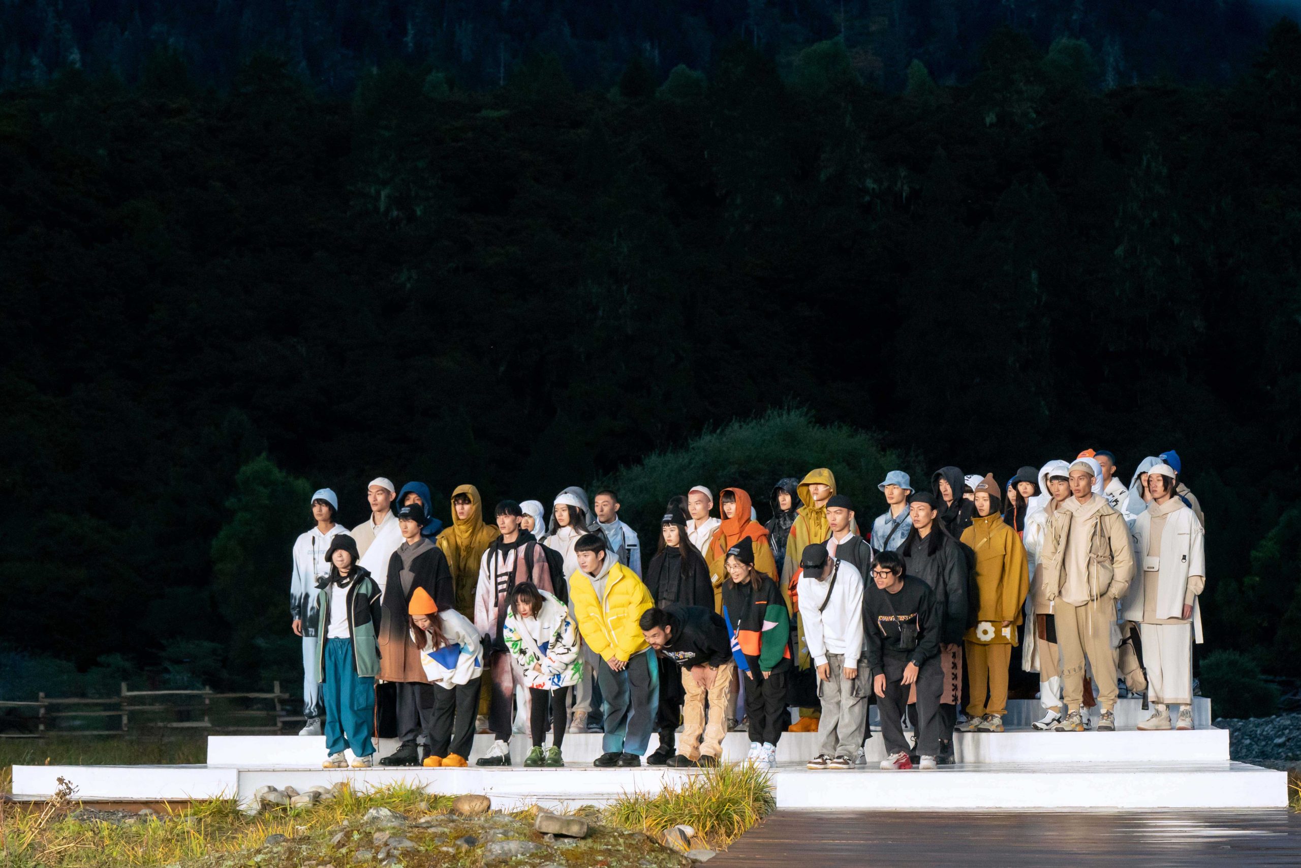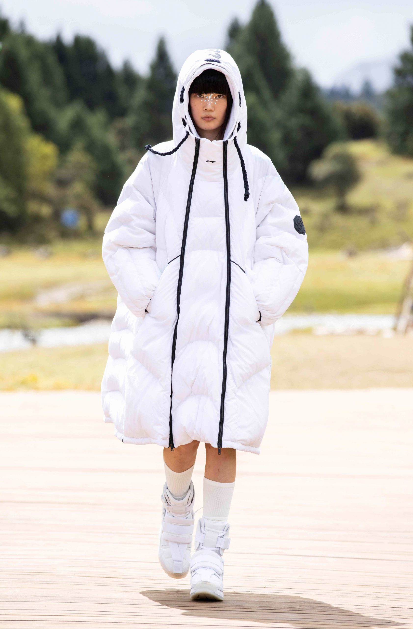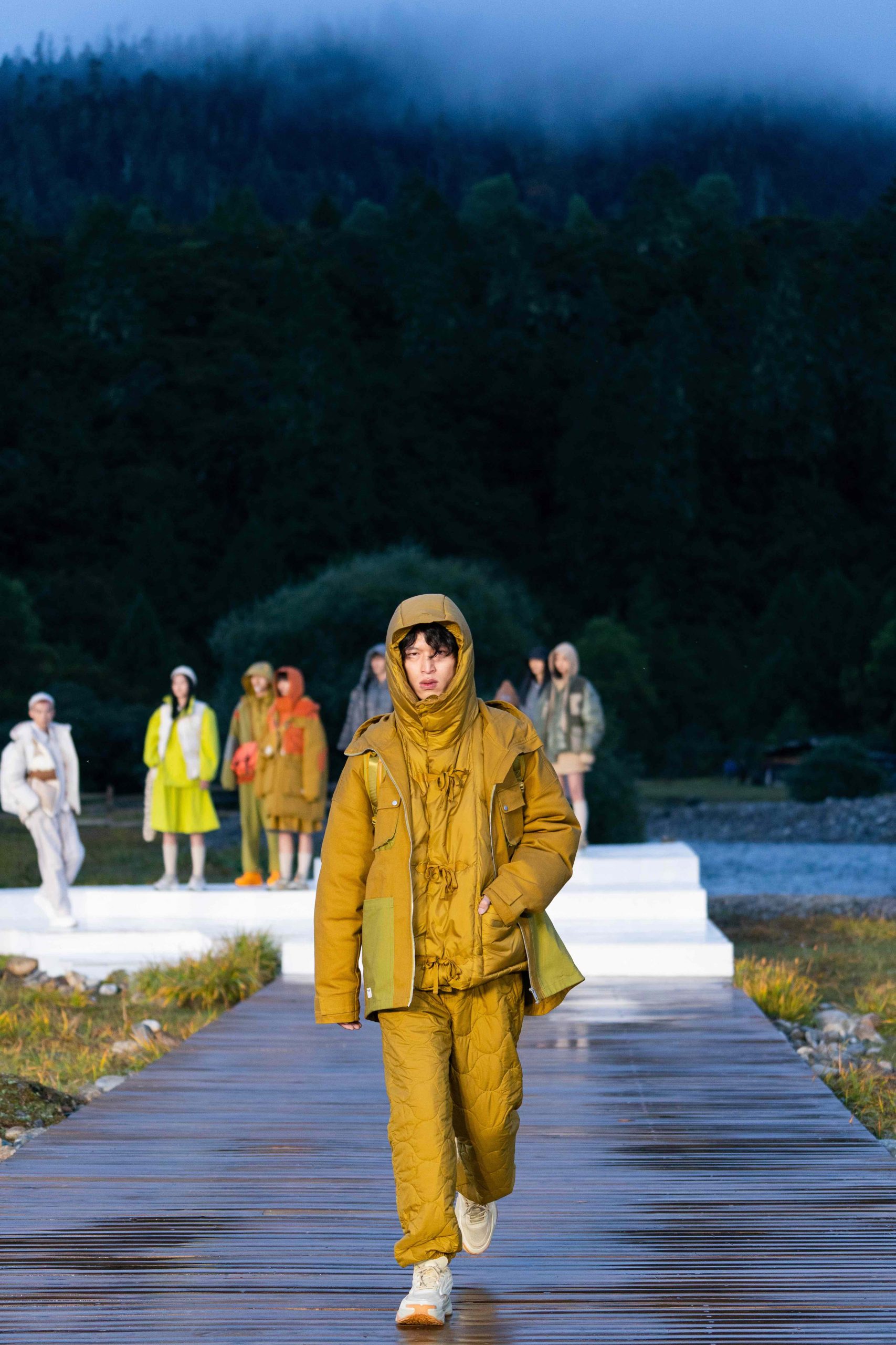 作为一场沉浸式的看秀体验,除了精彩绝伦的走秀,当天李宁还邀请了岛屿心情、JACKY DANNY 与 MANDARIN 三只乐队在现场激情演奏,身处李宁打造的自然空间中,在场的嘉宾也不免对天地、对大自然有了几分敬畏之情。