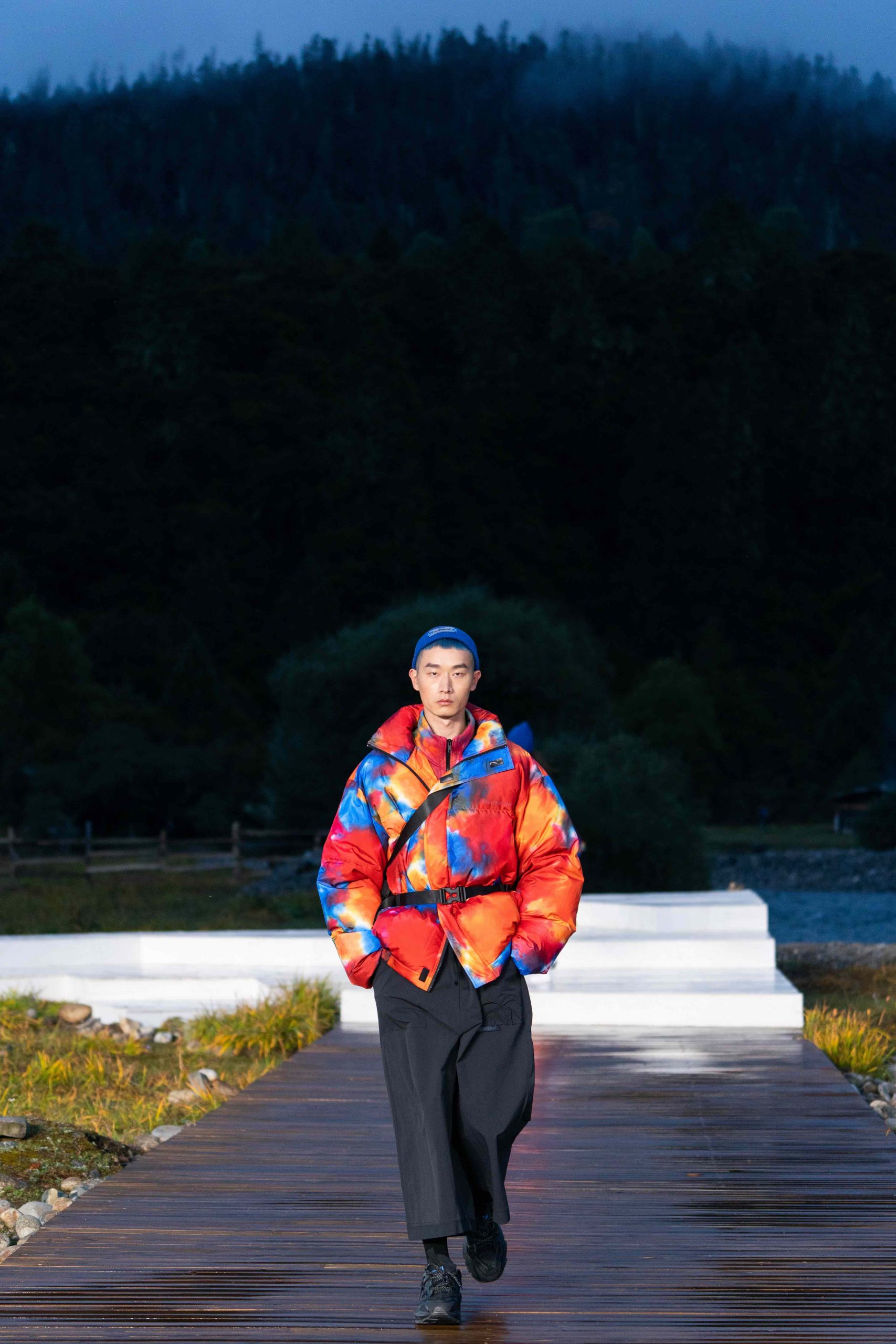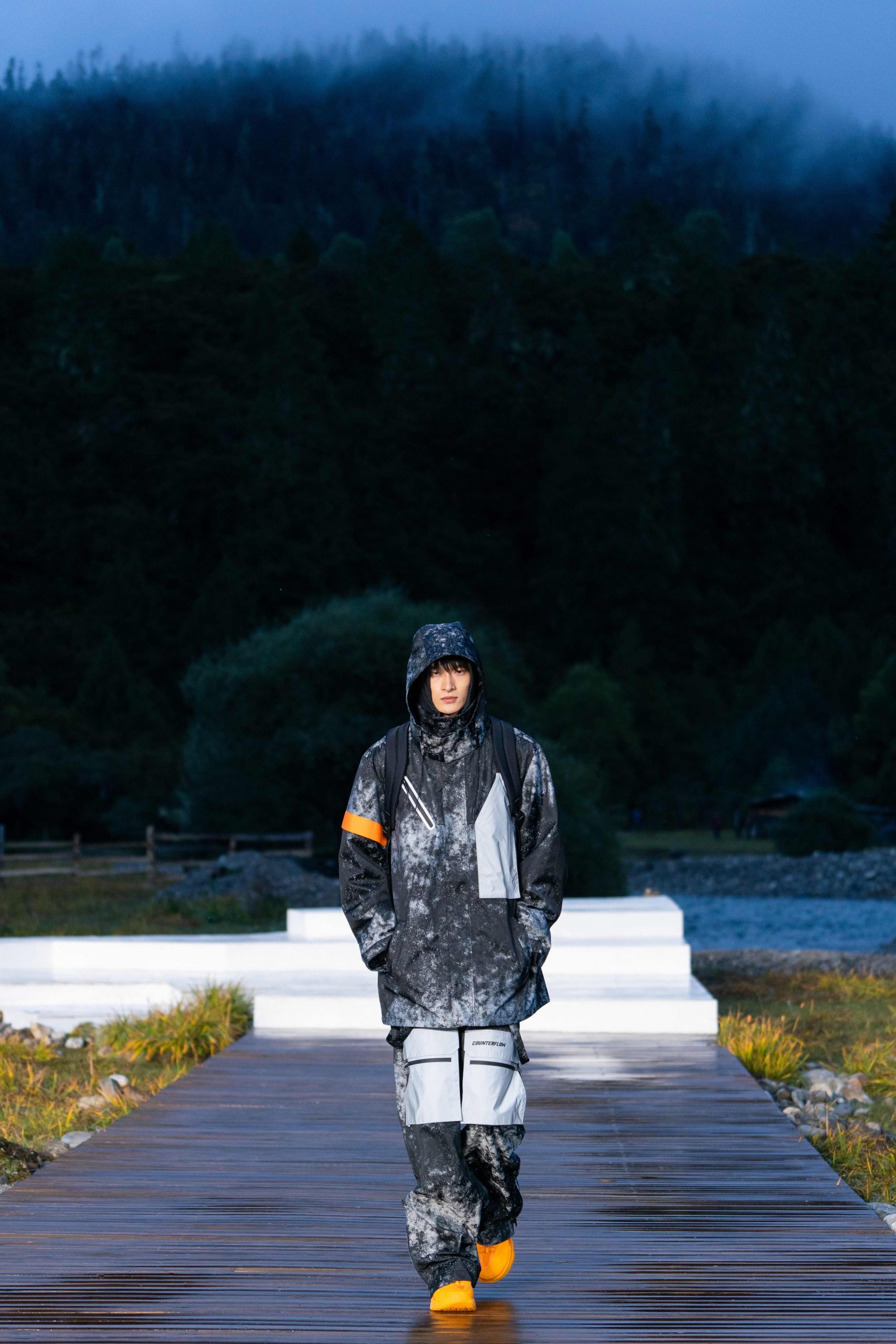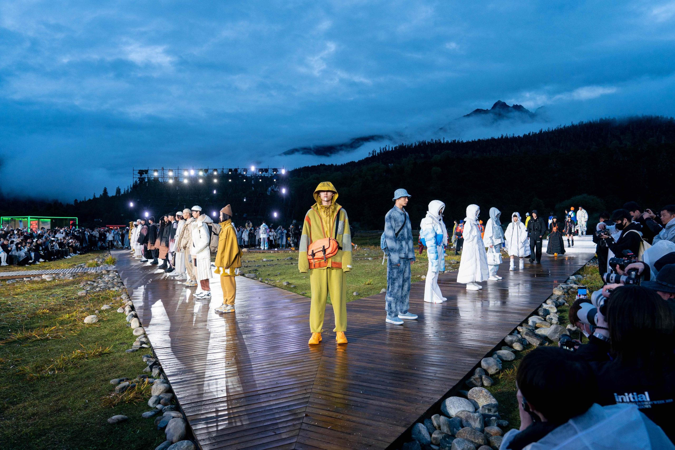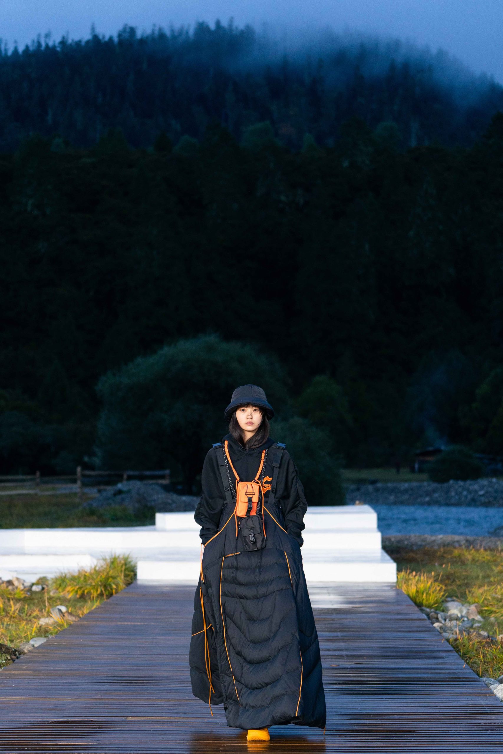 开放式的活动现场,无论是视觉效果还是隐含的精神传递 – 李宁都做到了淋漓尽致。随着开场舞蹈结束,音乐响起,模特也如从天边而来徐徐踏上大自然秀场,在广袤天地间让攀行者精神尽情绽放。