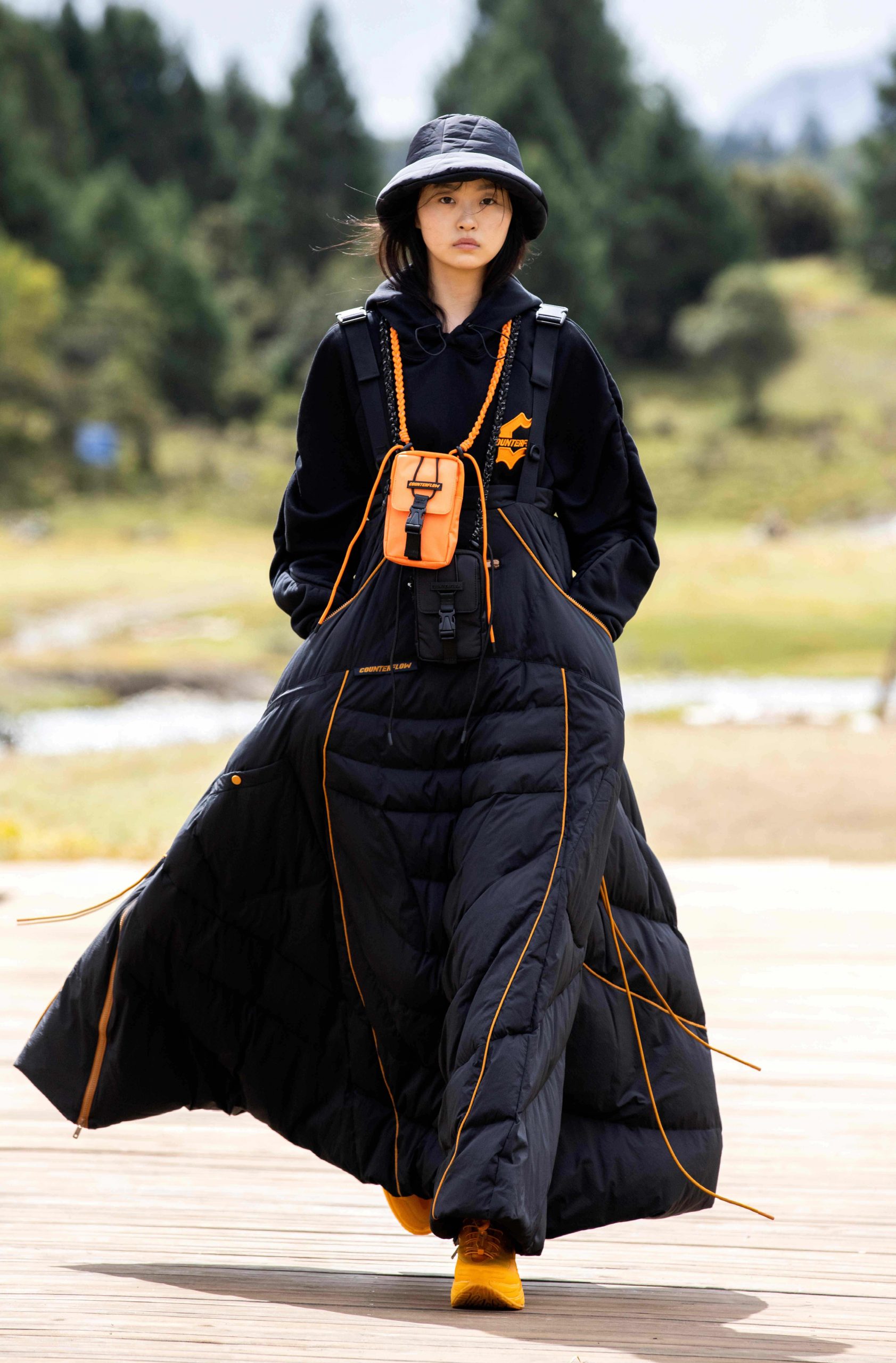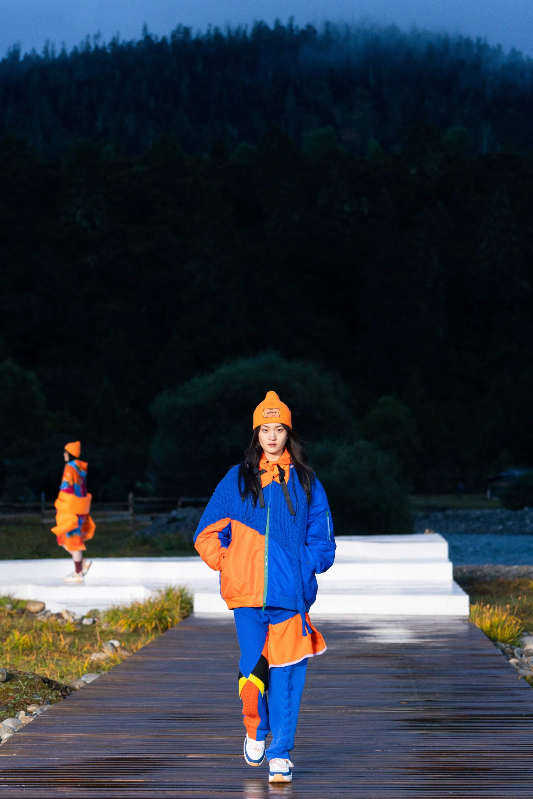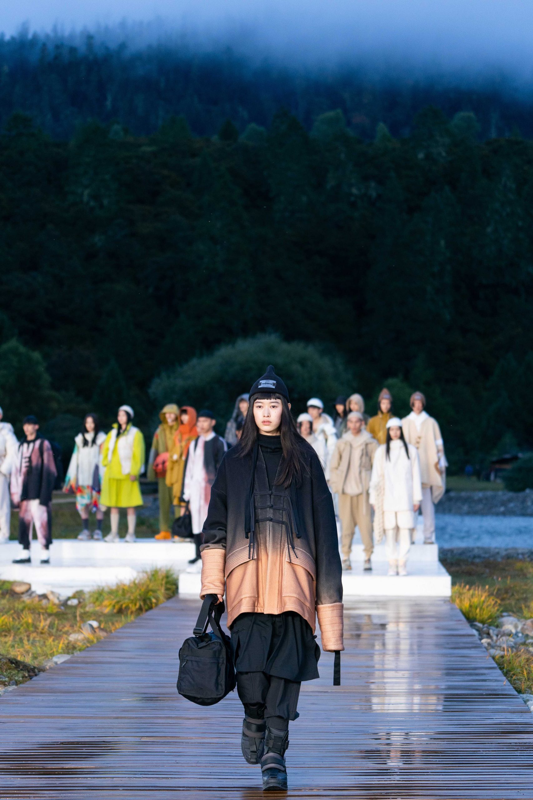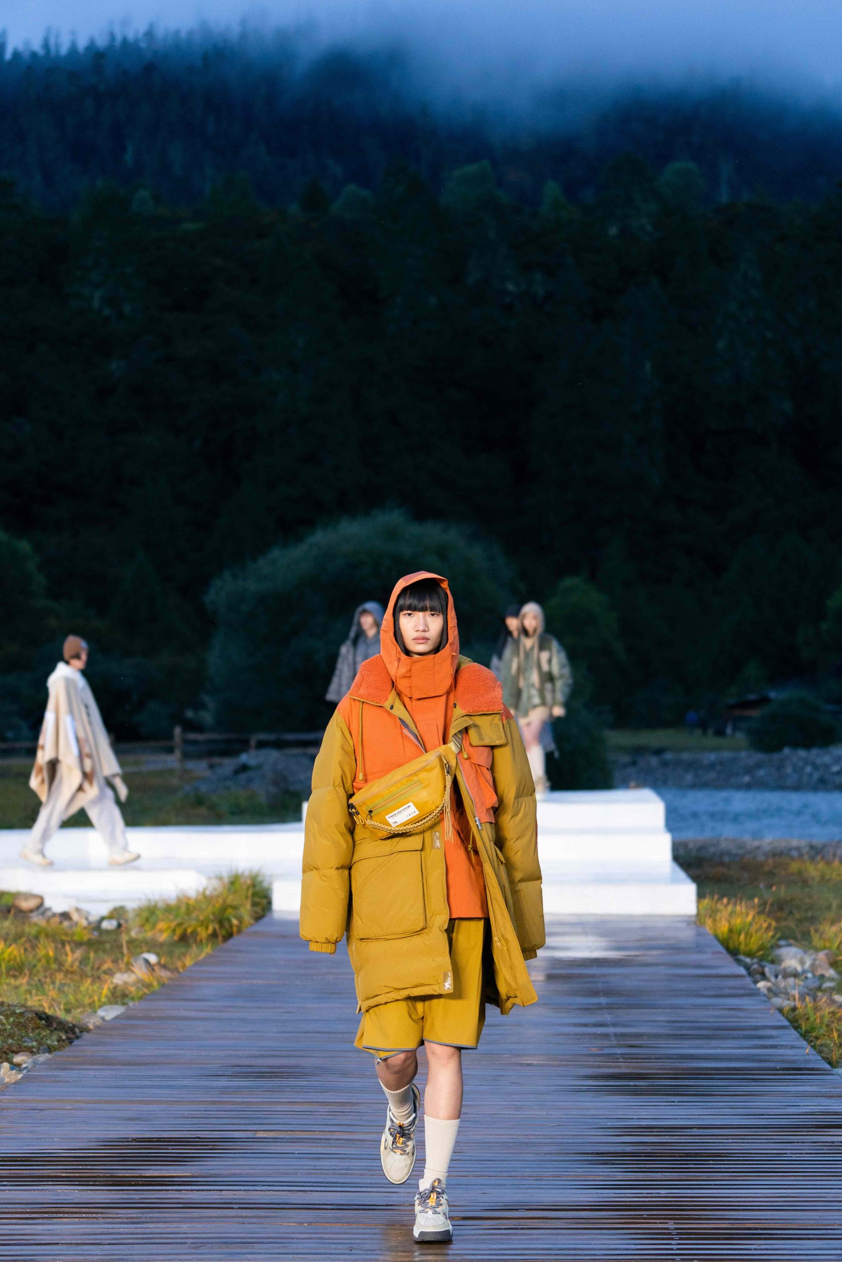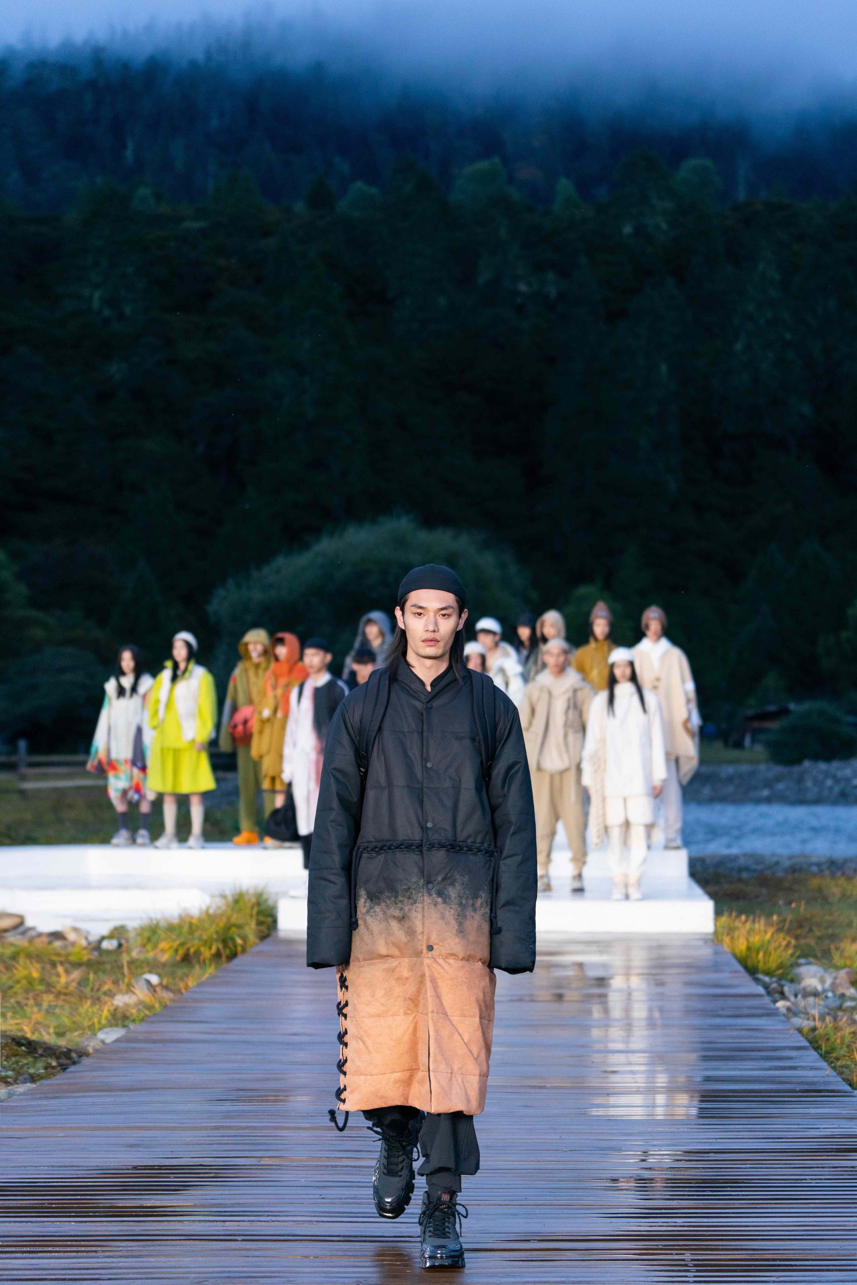 开放式的活动现场,无论是视觉效果还是隐含的精神传递 – 李宁都做到了淋漓尽致。随着开场舞蹈结束,音乐响起,模特也如从天边而来徐徐踏上大自然秀场,在广袤天地间让攀行者精神尽情绽放。