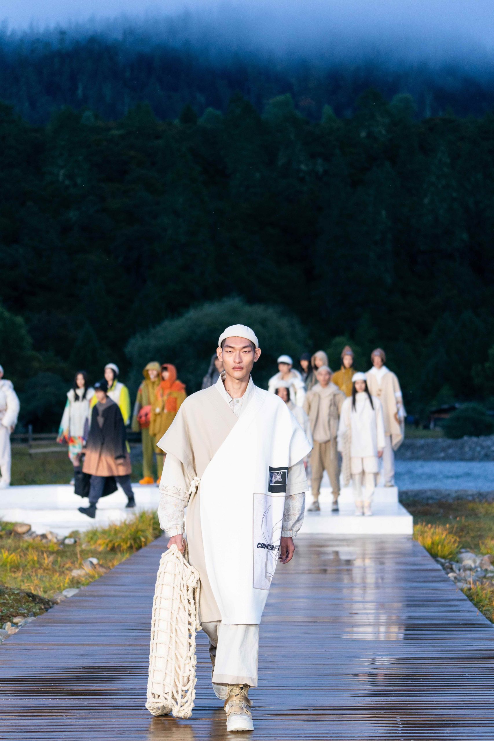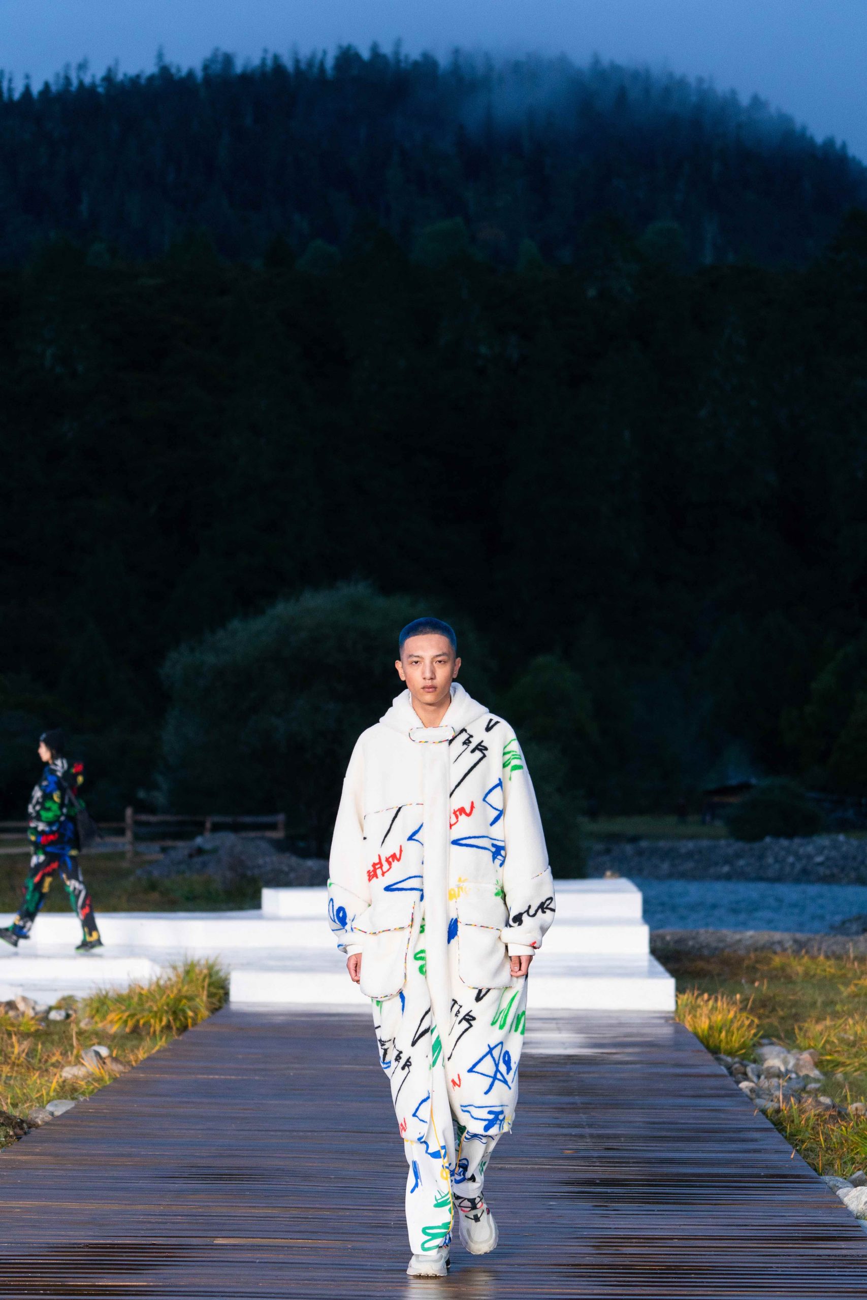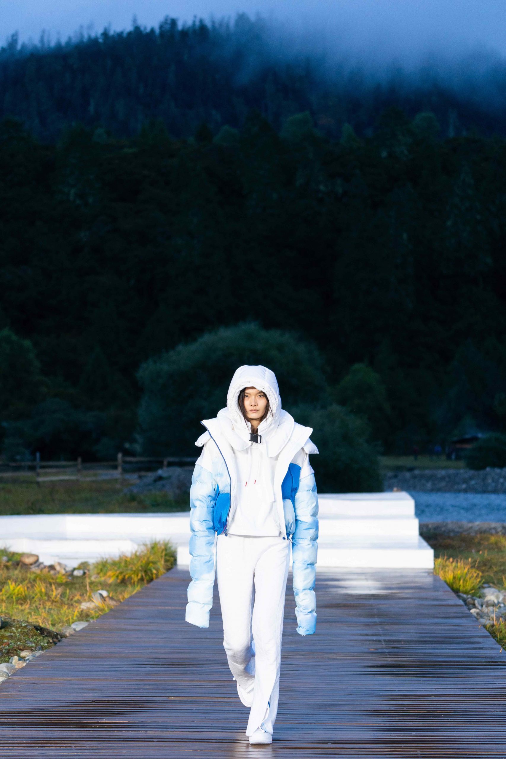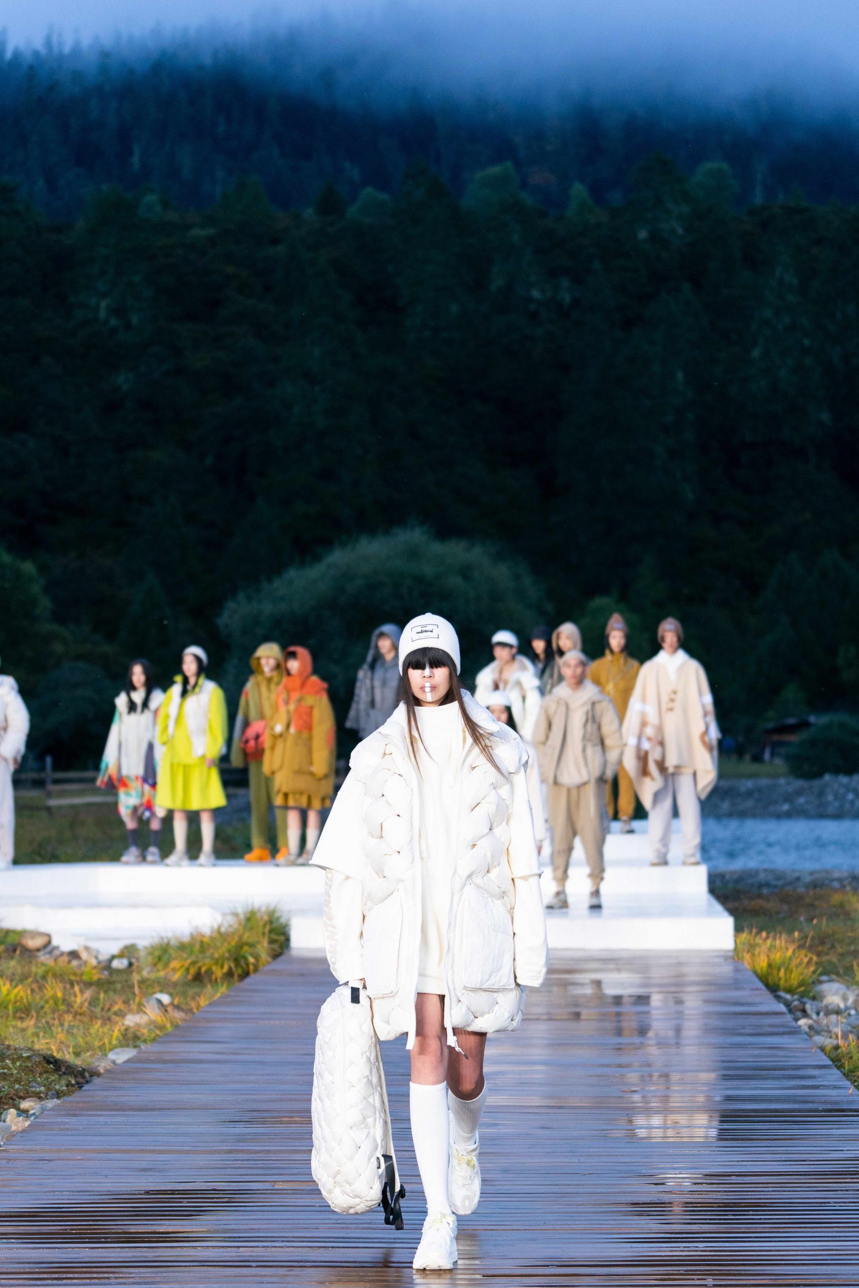 拨开云雾,最终来到李宁 2021 悟·行主题大秀的林芝鲁朗贡措景区,一片高原山地草甸上,周边雪山林立,牦牛在溪水中戏水过河。今次,是李宁对「悟」的进一步探索,从整个主题再到最终服装的呈现,李宁也再次表达出何为「一切皆有可能」,以及年轻人不断向上攀行的热情与向往。