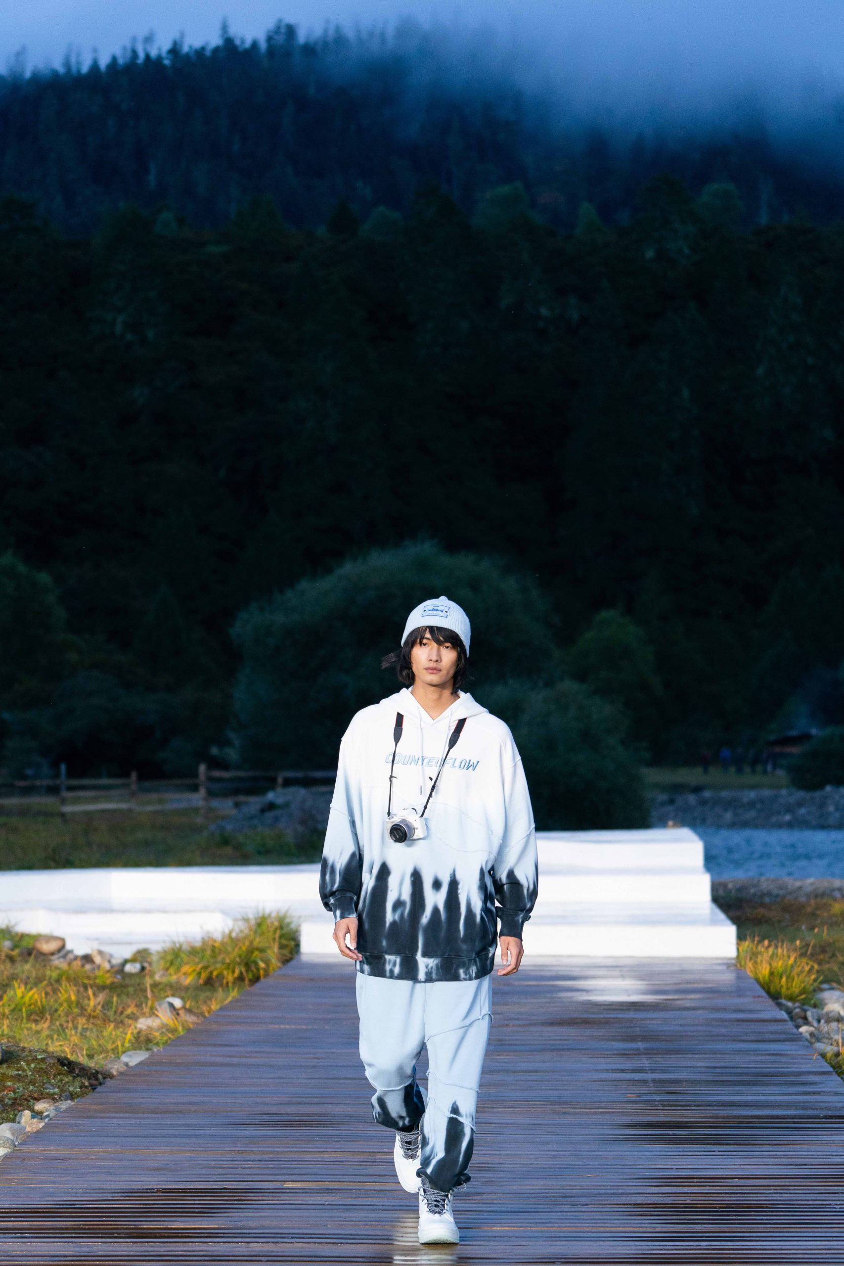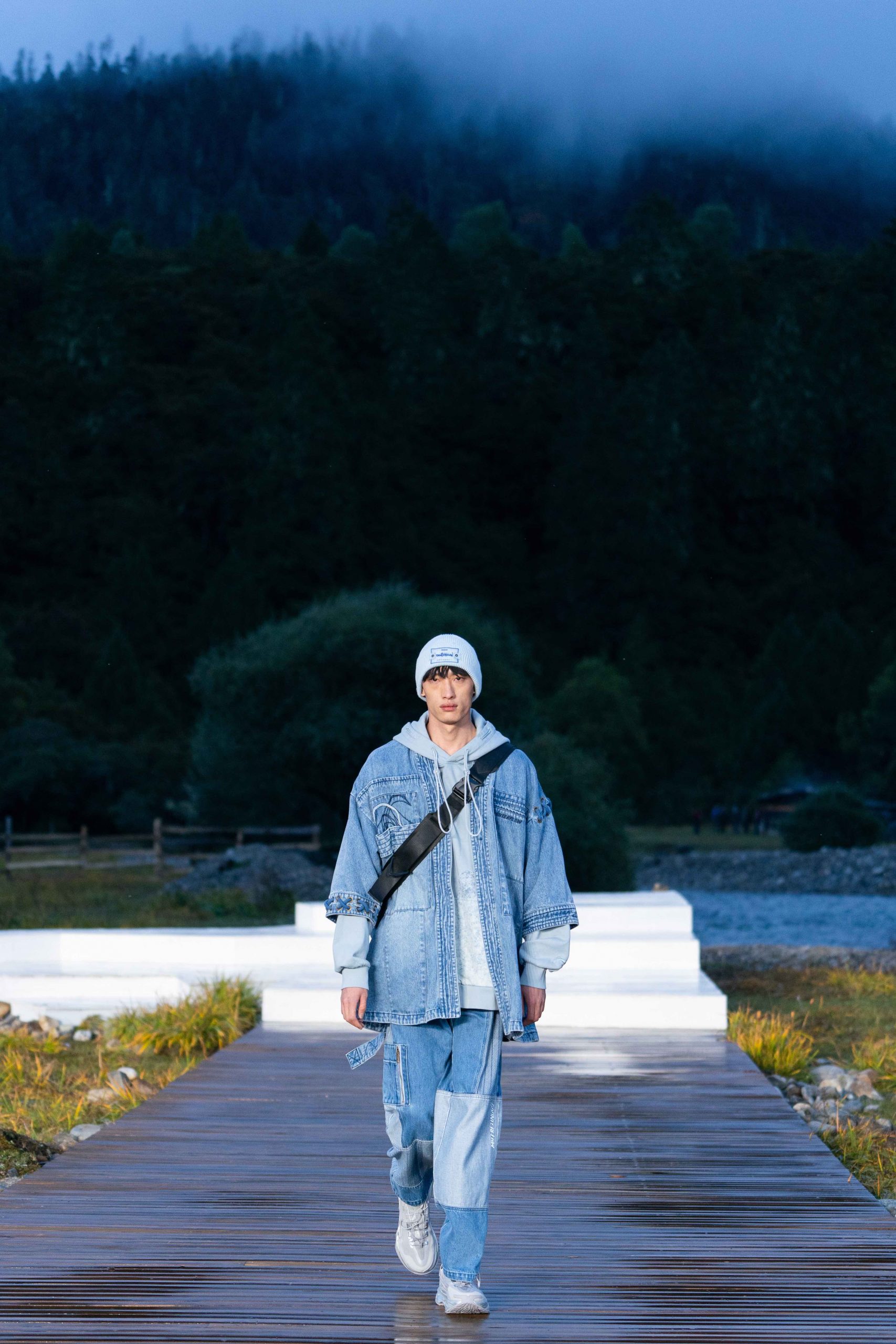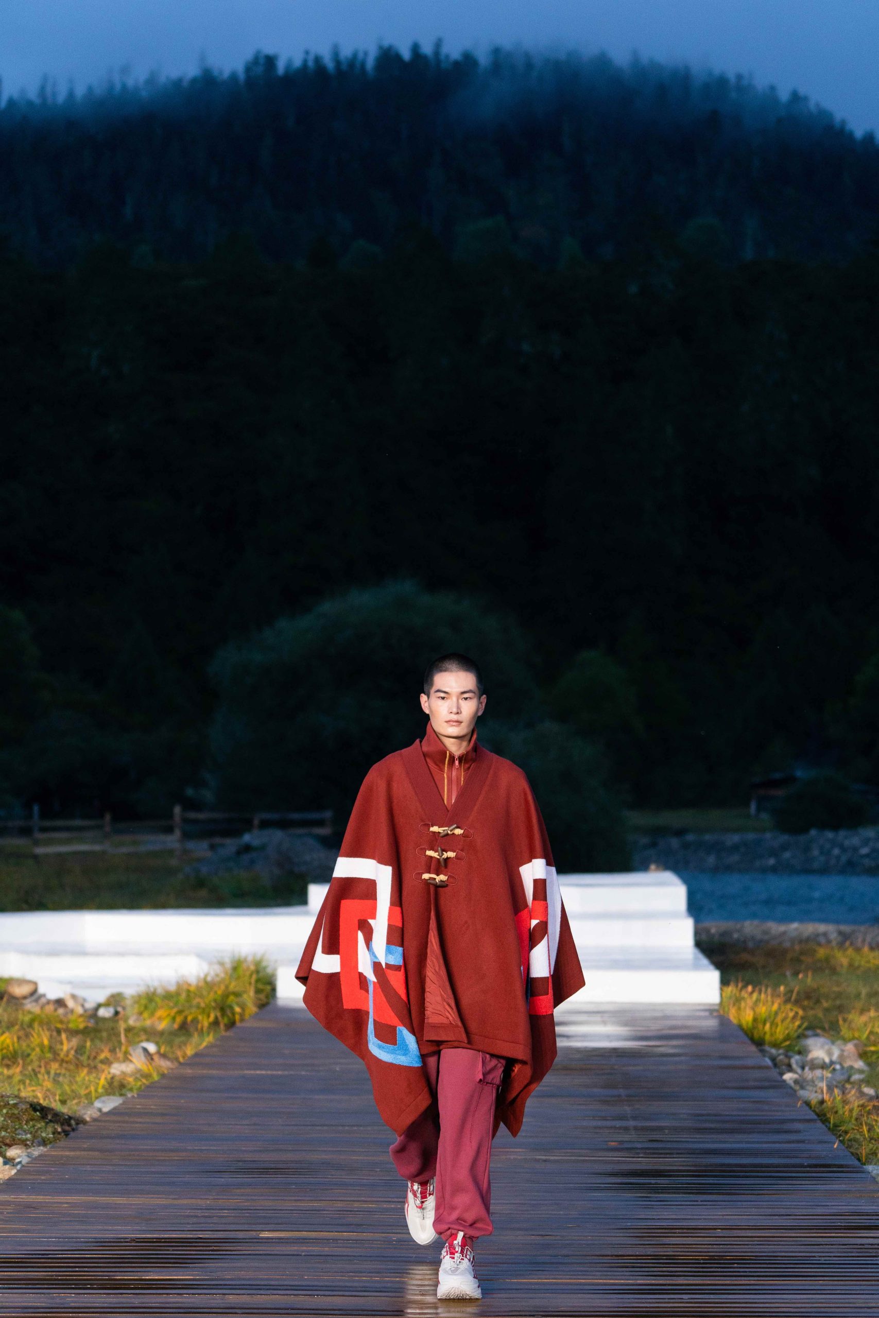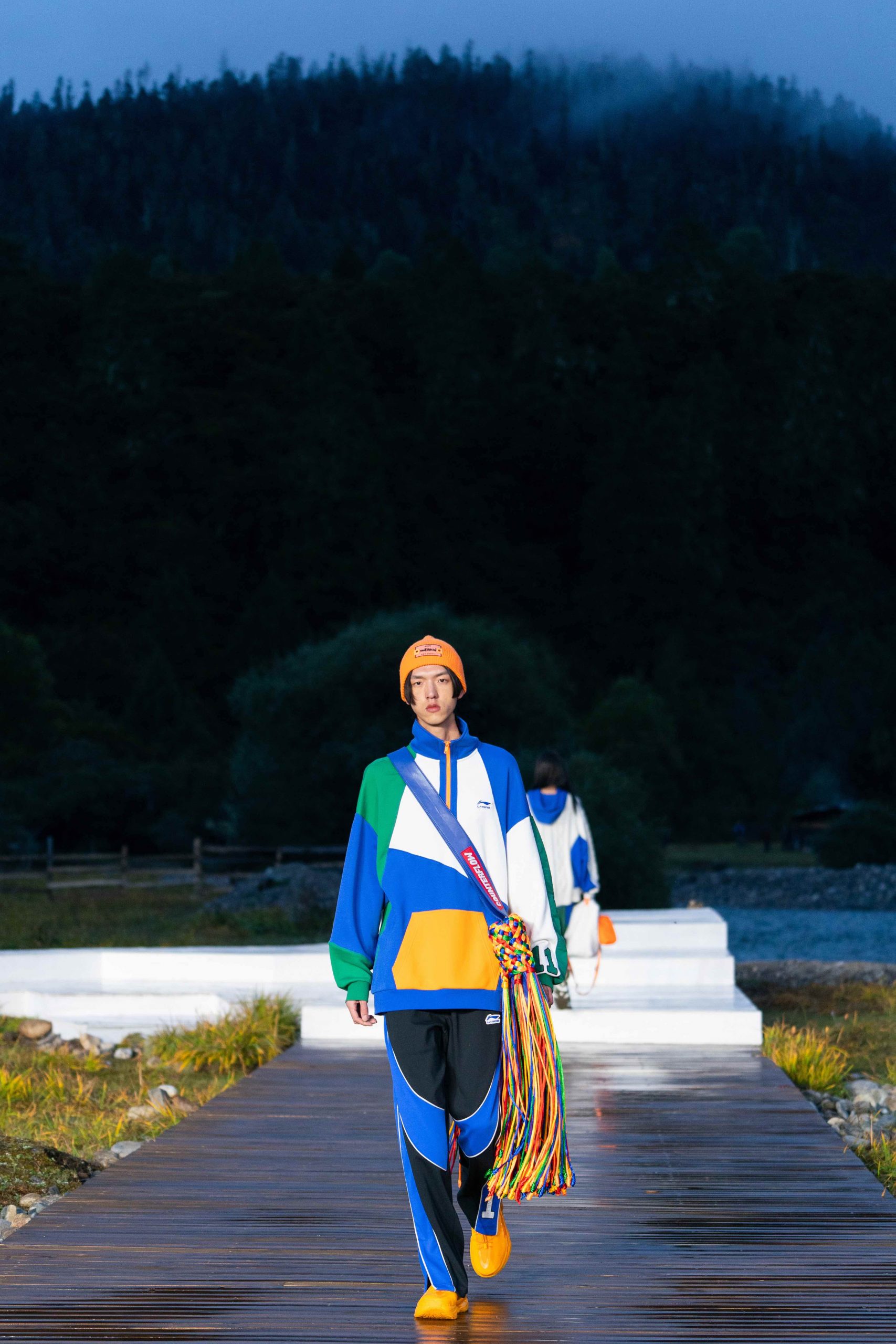 拨开云雾,最终来到李宁 2021 悟·行主题大秀的林芝鲁朗贡措景区,一片高原山地草甸上,周边雪山林立,牦牛在溪水中戏水过河。今次,是李宁对「悟」的进一步探索,从整个主题再到最终服装的呈现,李宁也再次表达出何为「一切皆有可能」,以及年轻人不断向上攀行的热情与向往。