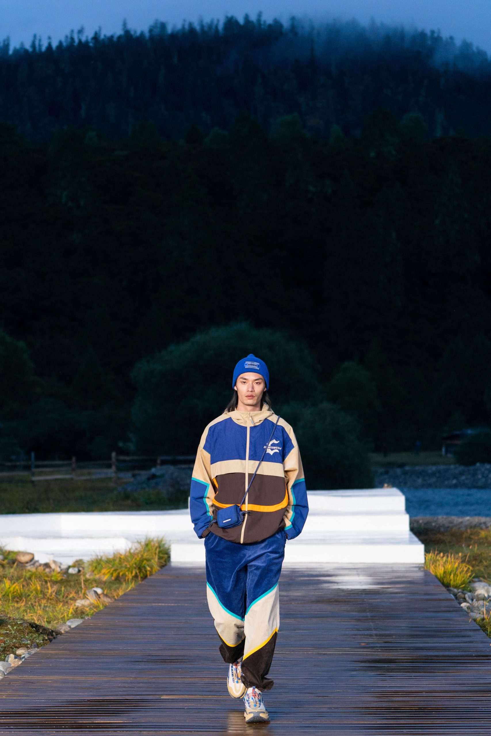 天之愿景、地之溯源和人之远方,是本次大秀的三个主题板块。这三个板块,是李宁将攀行途中的地貌风光及人文瑰宝作为灵感来源,通过对话天地、自省内心,李宁将「悟」的真谛通过服饰的艺术设计进行极致表达,通过全新产品与大自然的合二为一,为观众讲述了一个行路感悟的系列故事。